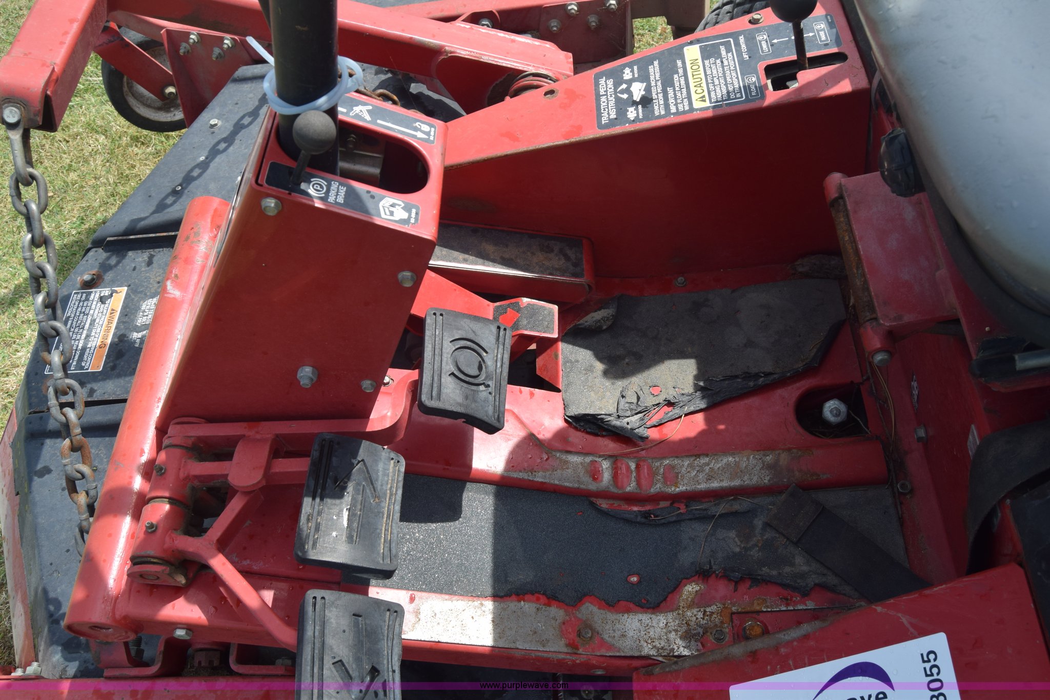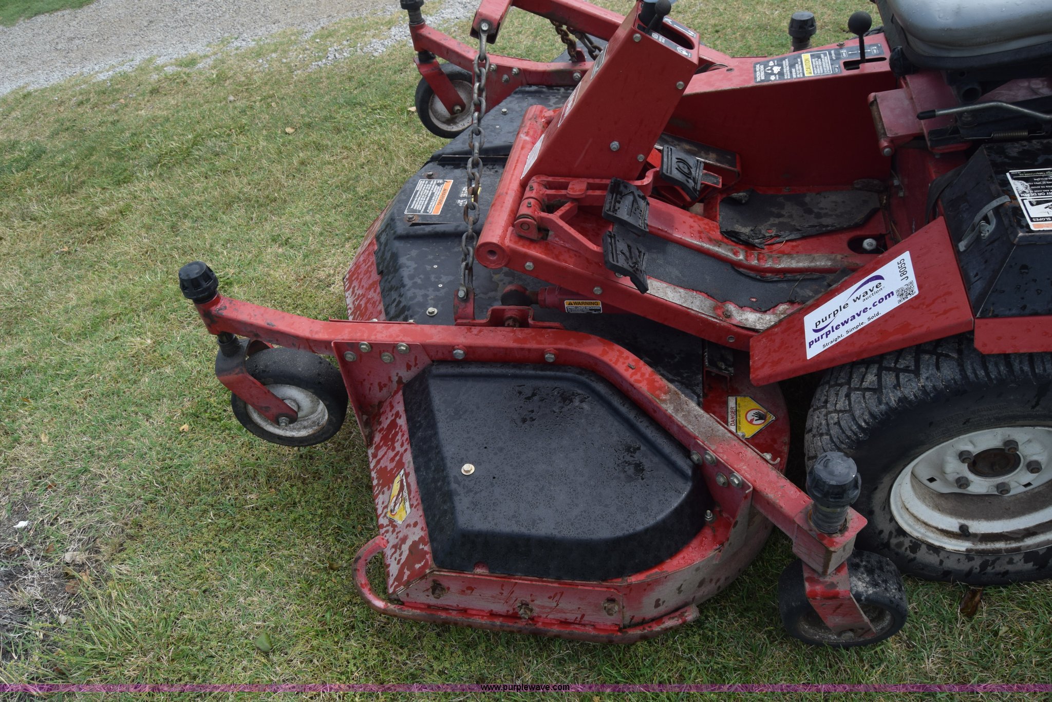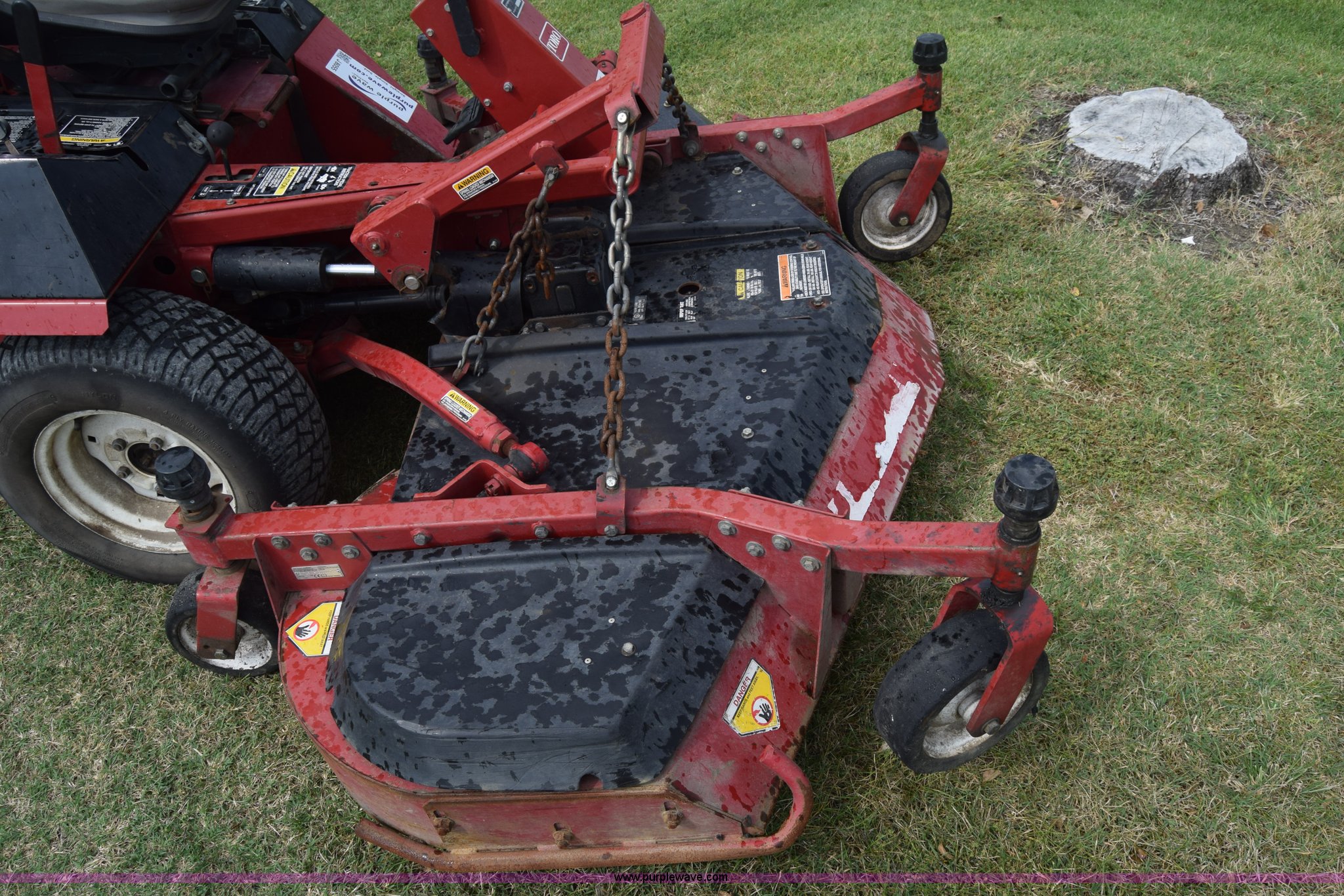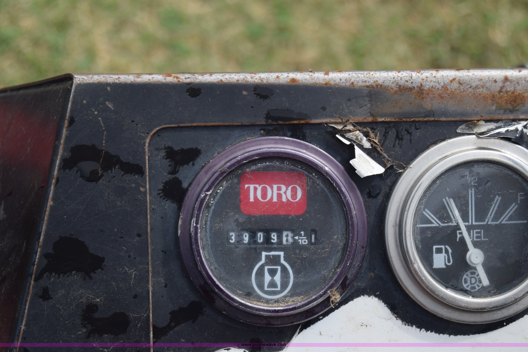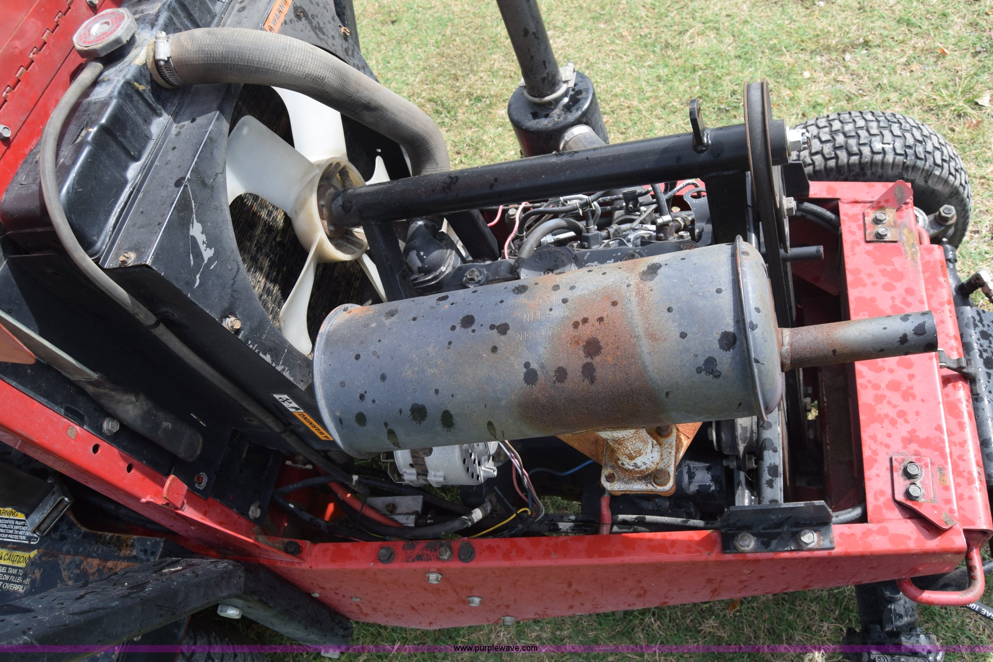 Purple Wave is selling a used Commercial Turf Mower in Kansas. This item is a Toro Groundmaster 325D lawn mower with the following: 3,909 hours on meter, 72" cut, Mitsubishi three cylinder diesel engine, 25 HP, Sunstrand variable hydrostatic transmission, Four wheel drive, Tow post roll bar, Hydraulic power steering, Hydraulic lift functions, 23x8.50-12 tires, Serial 210000307