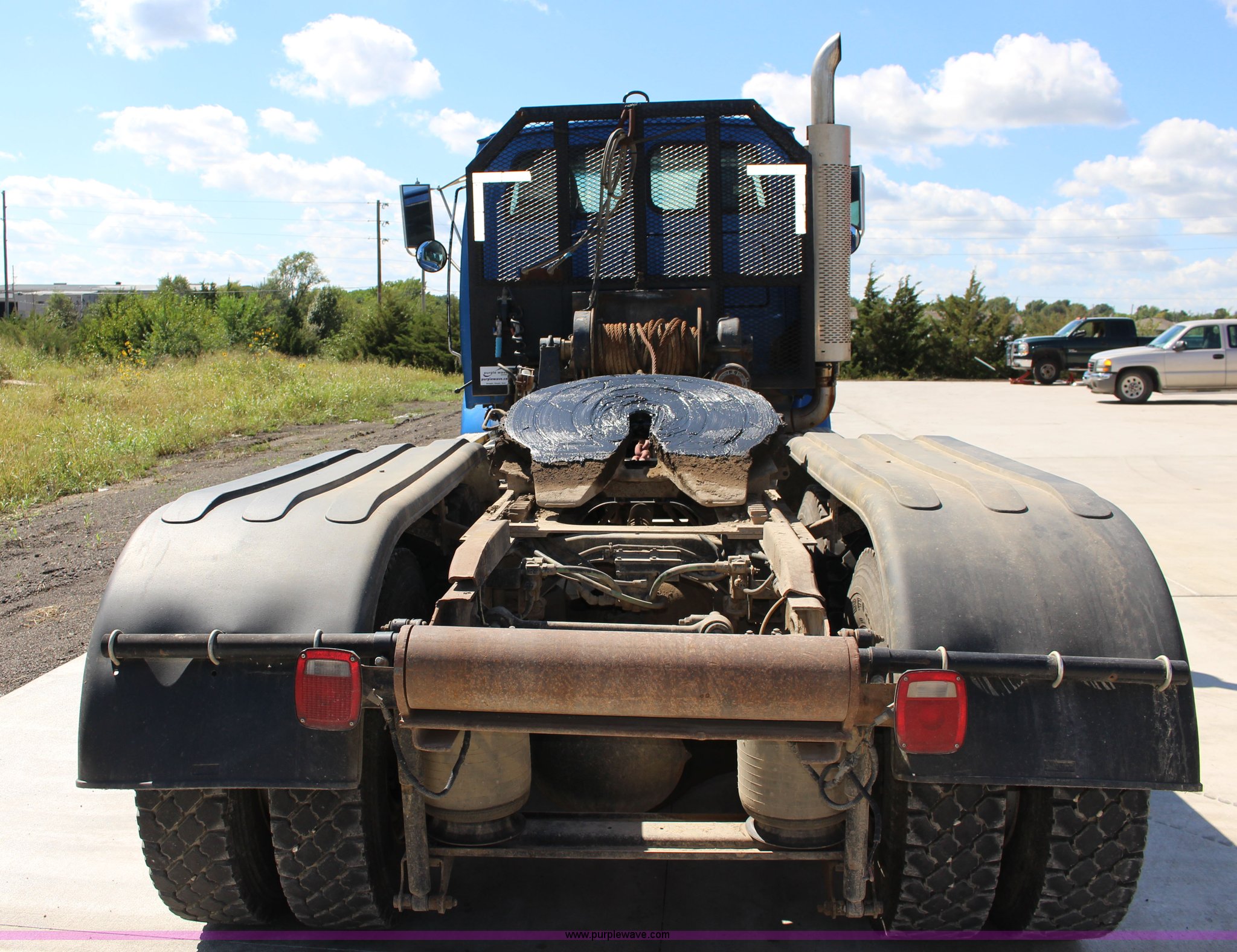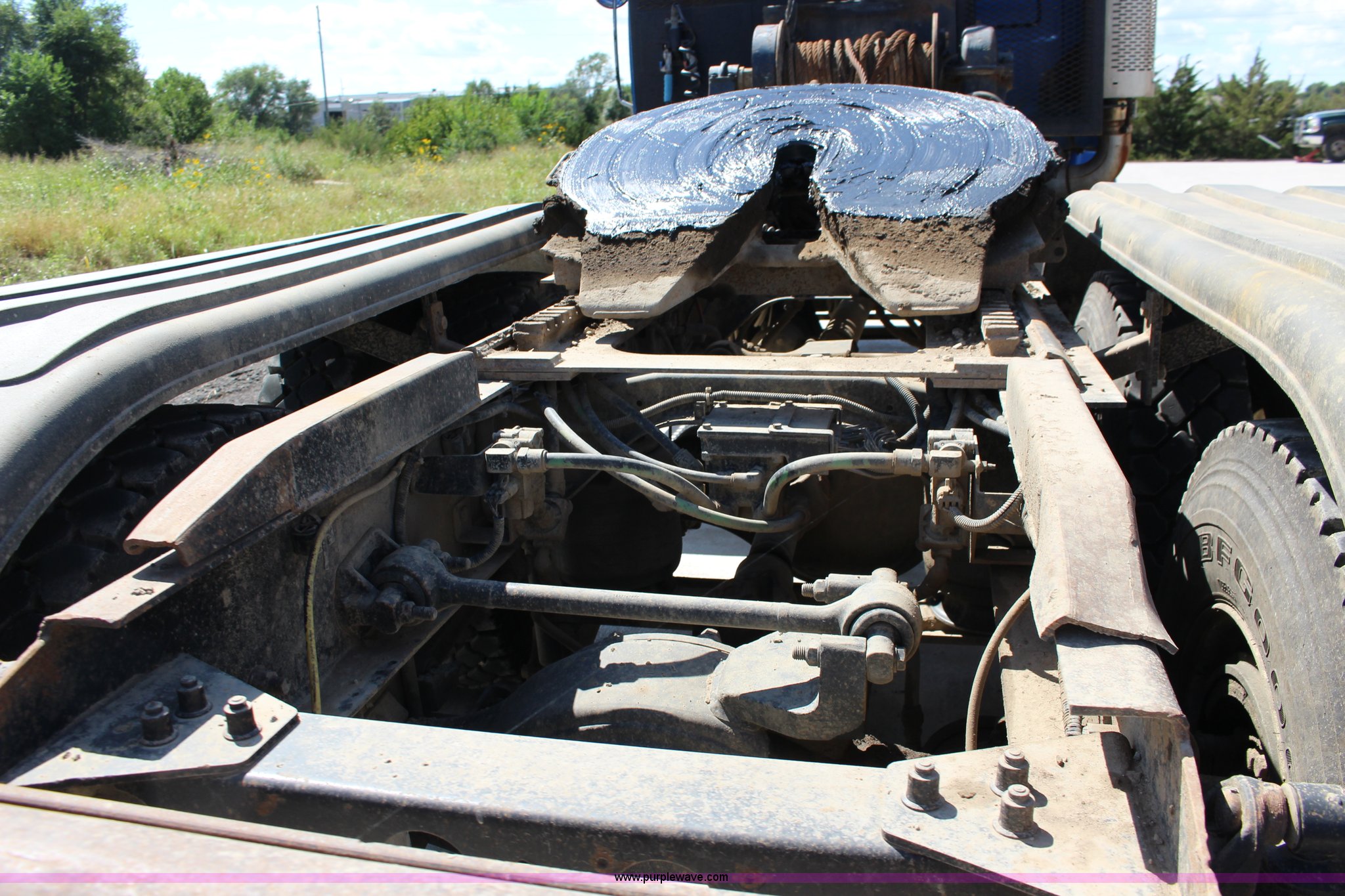 Purple Wave is selling a used Truck Tractor in Kansas. This item is a 1998 Ford AT9513 Aeromax 113 cab and chassis with the following: 478,586 miles on odometer, Caterpillar C12 11.9L L6 diesel engine, Ten speed manual transmission, AC and heat, Tilt, AM/FM, Air suspension seat, PTO, Tulsa winch, Tandem axle, Air suspension, Air brakes, 11R22.5 tires, GVWR 52,000 lbs, Interior/exterior cosmetic damage, Unit# 452