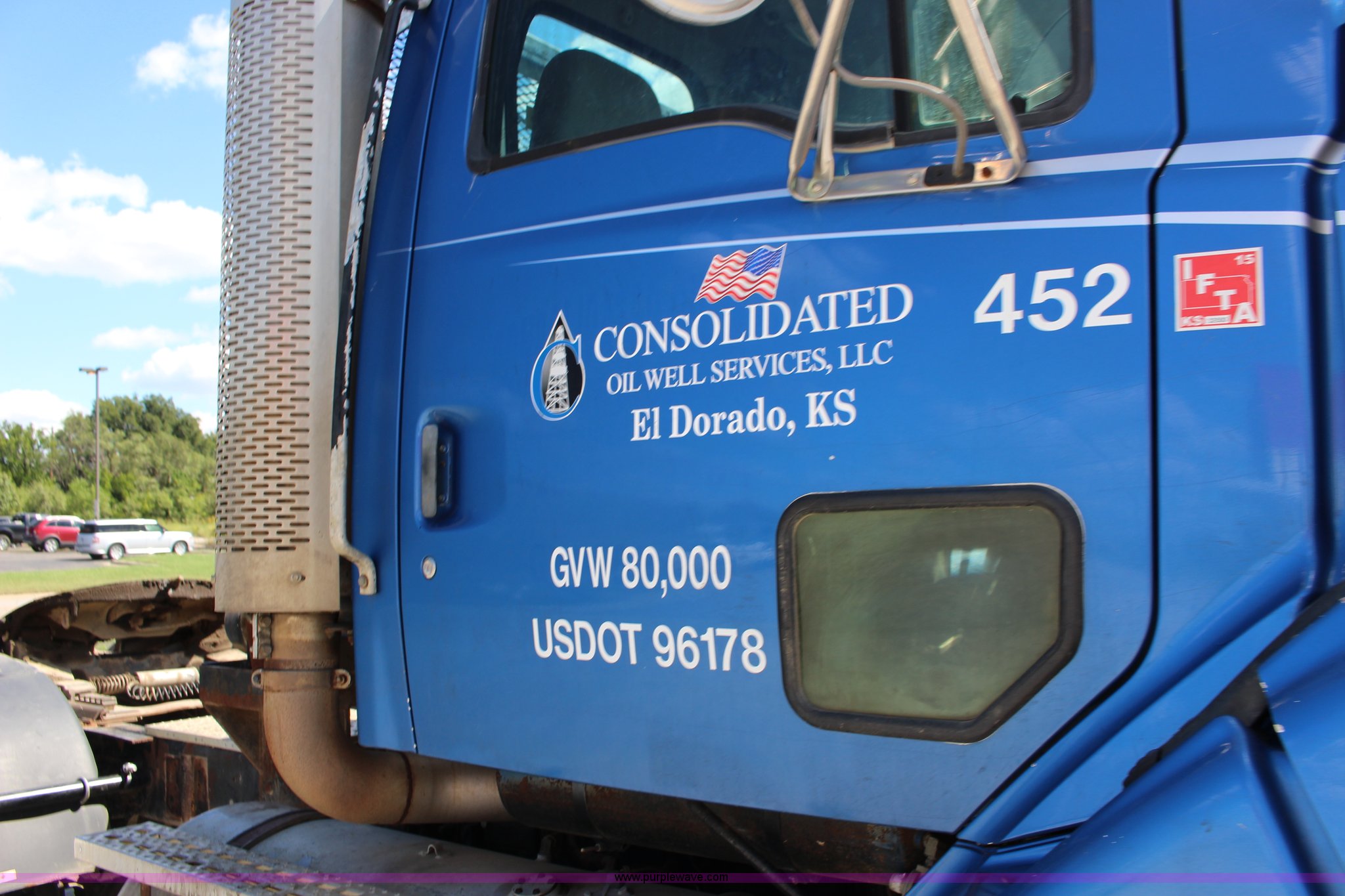 1998 Ford AT9513 Aeromax 113 cab and chassis. 478,586 miles on odometer, Caterpillar C12 11.9L L6 diesel engine, Ten speed manual transmission, AC and heat, Tilt, AM/FM, Air suspension seat, PTO, Tulsa winch, Tandem axle, Air suspension, Air brakes, 11R22.5 tires, GVWR 52,000 lbs, Interior/exterior cosmetic damage, Unit# 452. Title distribution may be delayed up to 14 days from verification of funds. 1FTYY96M5WVA26471. Consolidated Oil. 1005 Oil Hill Road. El dorado, KS 67042