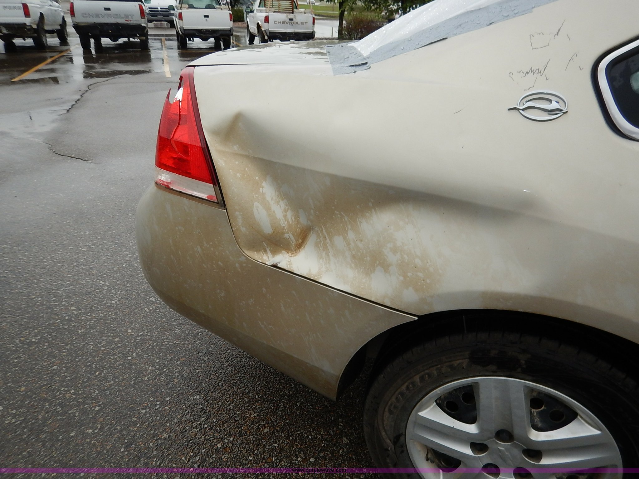 2009 Chevrolet Impala LS. 141,217 miles on odometer, 3.5L V6 OHV 16V FFV gas engine, Automatic transmission, AC and heat, Tilt, Cruise, AM/FM/CD, Power windows, locks, mirrors, and seat, Cloth interior, 225/60R16 tires, Exterior cosmetic damage, Cracked windshield, Hail damage, Taillights damaged, Driver side mirror cracked, Unit# 13484. 2G1WB57K491275776. 825 Levee Dr. Manhattan, KS 66502