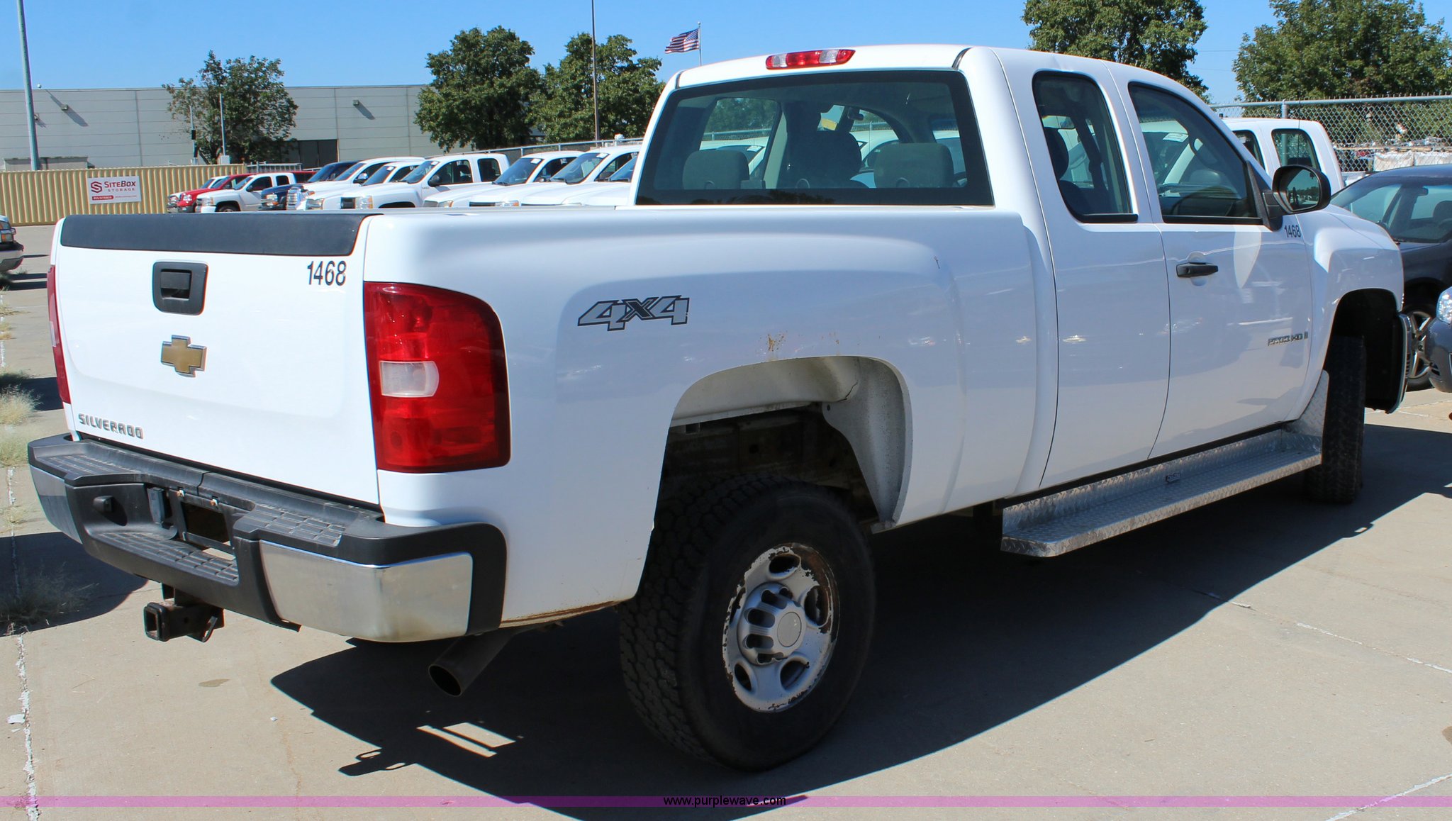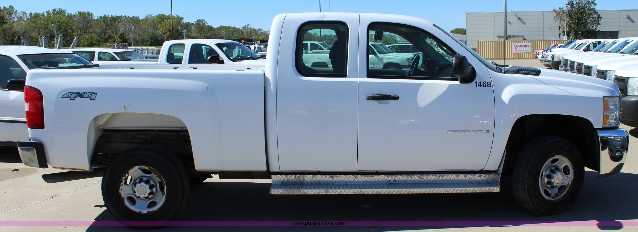 Purple Wave is selling a used 3/4 or 1 Ton Pickup or Van in Kansas. This item is a 2008 Chevrolet Silverado 2500HD Ext. Cab pickup truck with the following: 178,737 miles on odometer, 6.0L V8 OHV 16V gas engine, Automatic transmission, Four wheel drive, AC and heat, Tilt, Cruise, AM/FM/CD, Power windows, locks, and mirrors, Cloth interior, Running boards, Front tow hooks, Receiver hitch, 245/75R16 tires, Rust on rear fenders, Unit# 1468