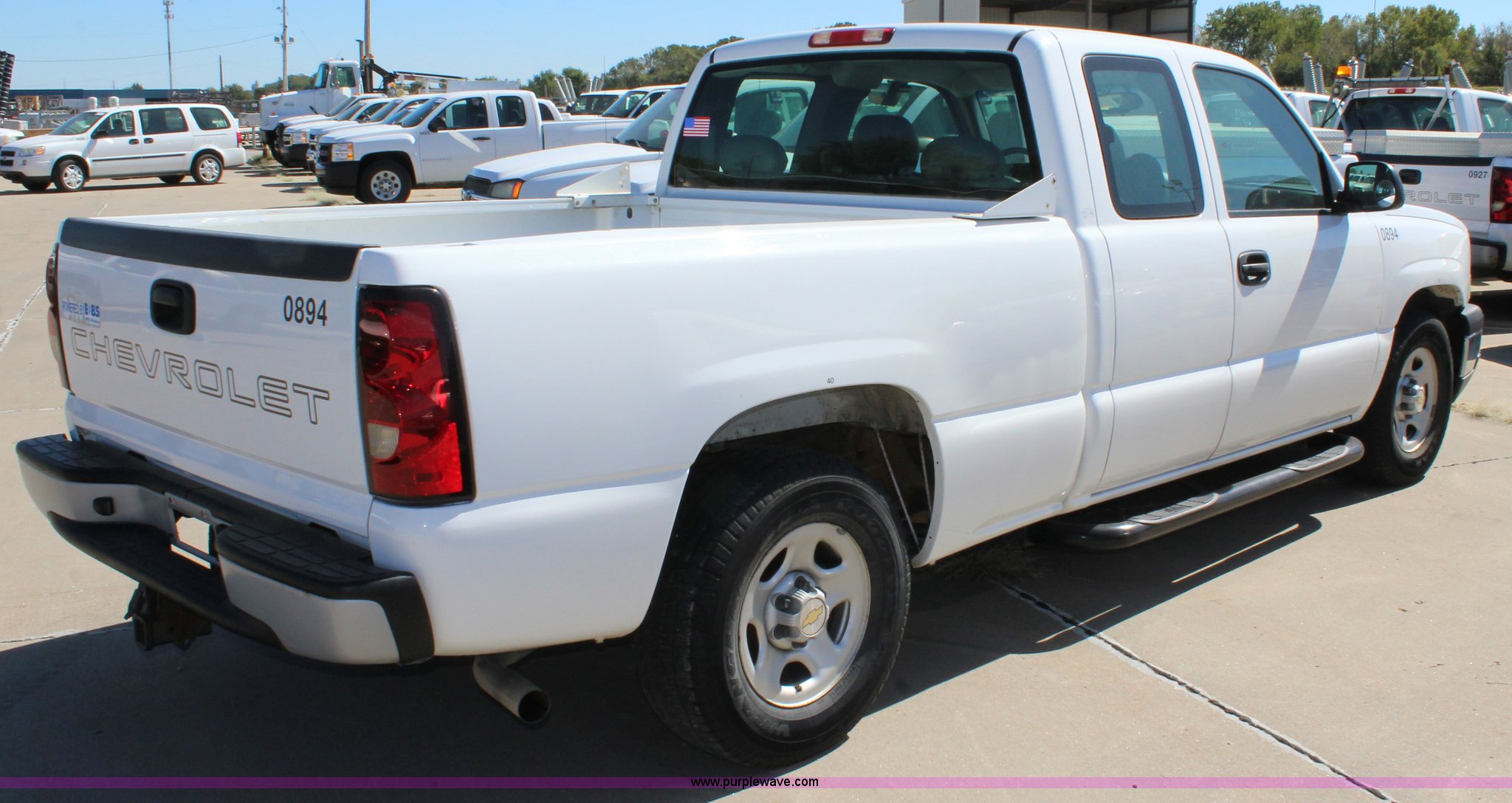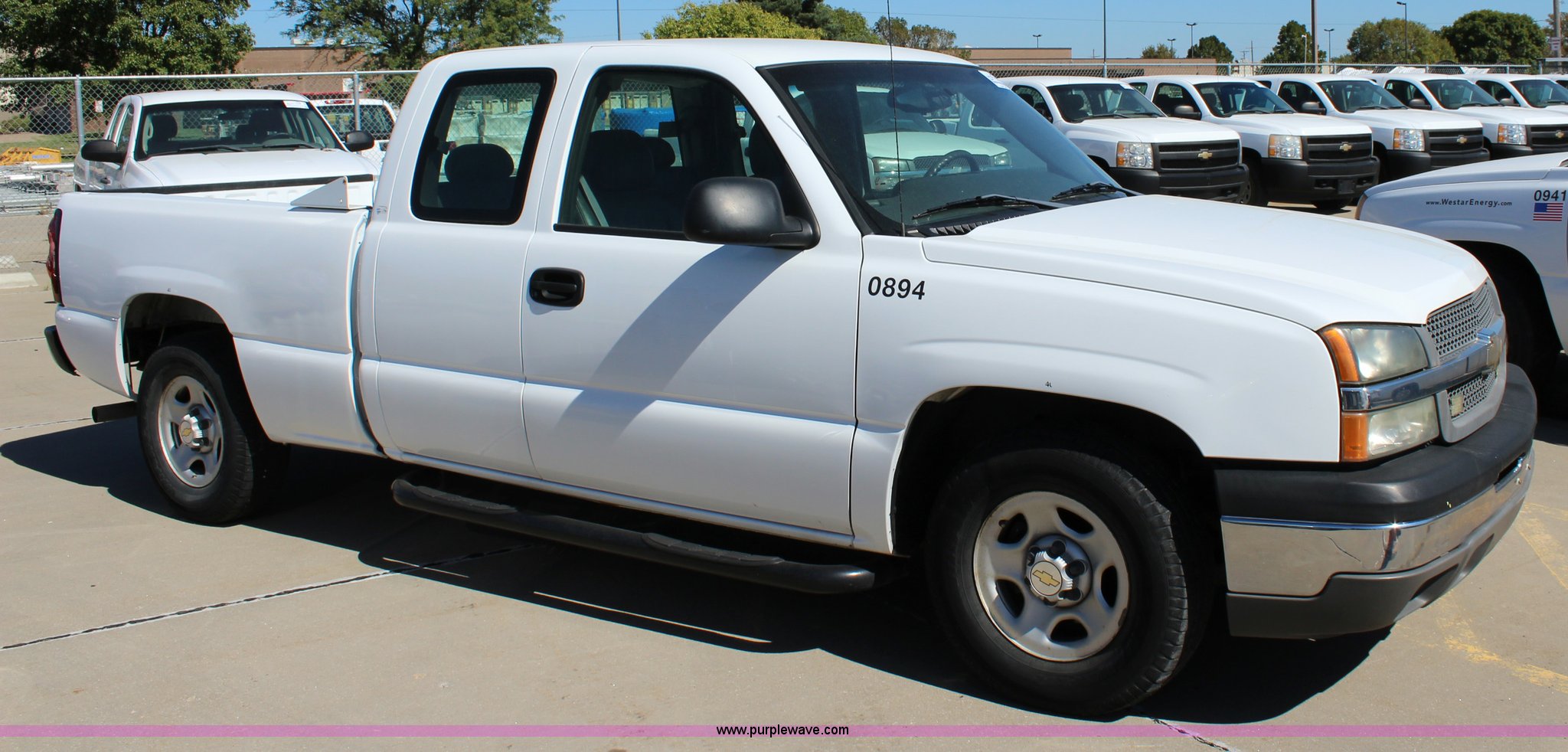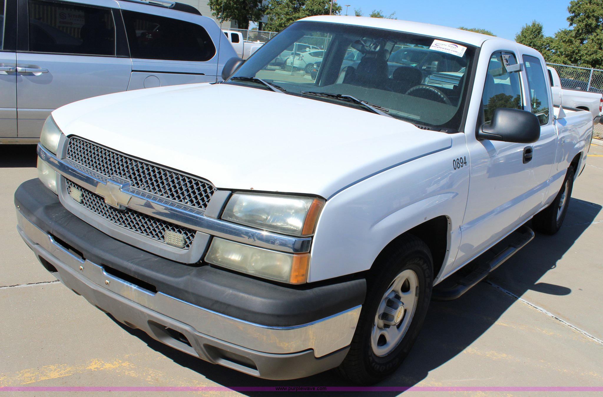 Purple Wave is selling a used 1/2 Ton Pickup or Van in Kansas. This item is a 2004 Chevrolet Silverado 1500 Ext. Cab pickup truck with the following: 67,120 miles on odometer, 5.3L V8 OHV 16V gas engine, Automatic transmission, AC and heat, Tilt, Cruise, AM/FM/cassette, Manual windows and locks, Vinyl interior, Front tow hooks, Receiver hitch, 255/70R16 tires, Unit# 0894