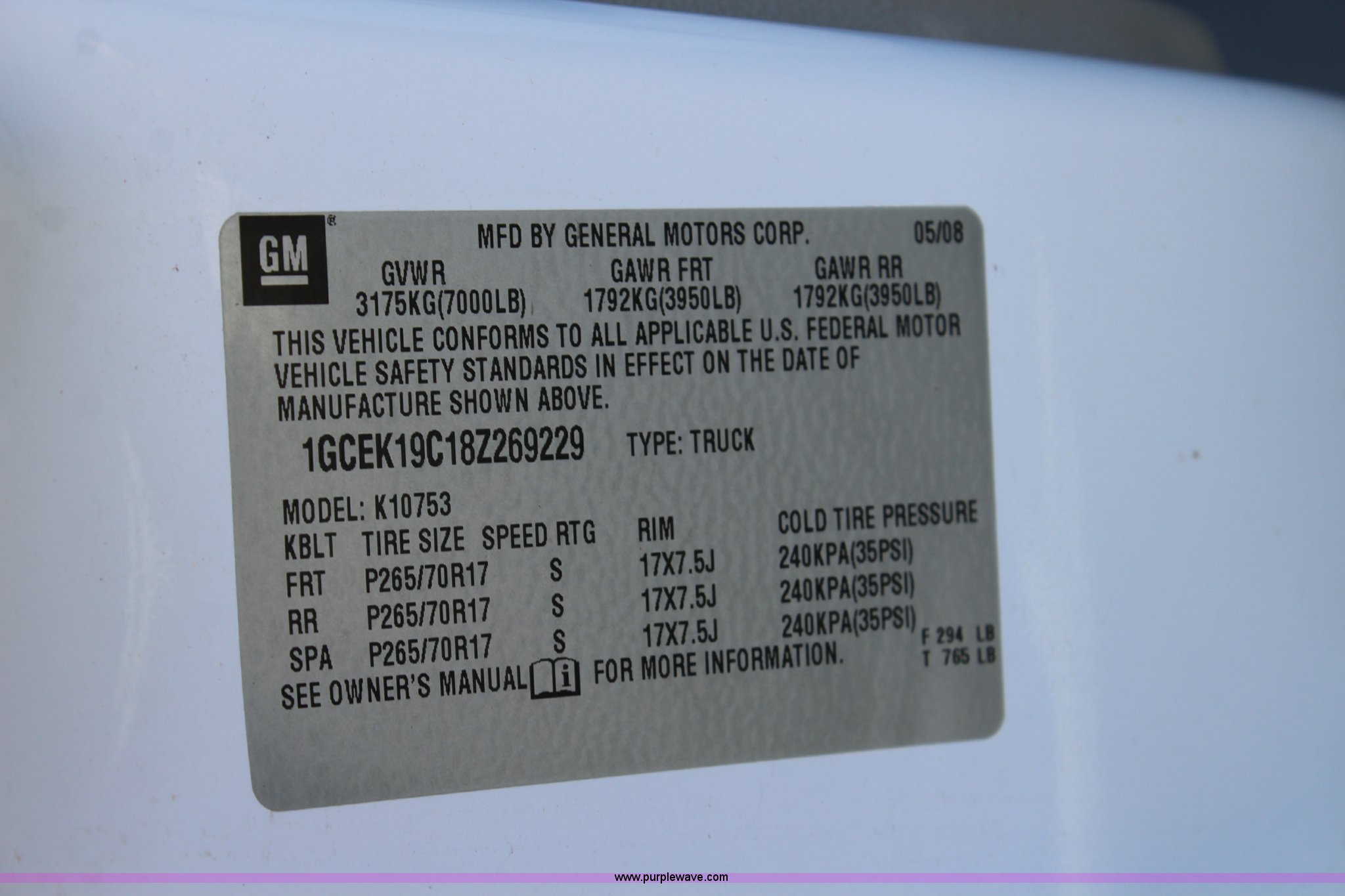 Purple Wave is selling a used 1/2 Ton Pickup or Van in Kansas. This item is a 2008 Chevrolet Silverado 1500 Ext. Cab pickup truck with the following: 120,479 miles on odometer, 4.8L V8 OHV 16V gas engine, Automatic transmission, Four wheel drive, AC and heat, Tilt, Cruise, AM/FM/CD, Power windows, locks, and mirrors, Cloth interior, Front tow hooks, Bed mat, 265/70R17 tires, Unit# 1455