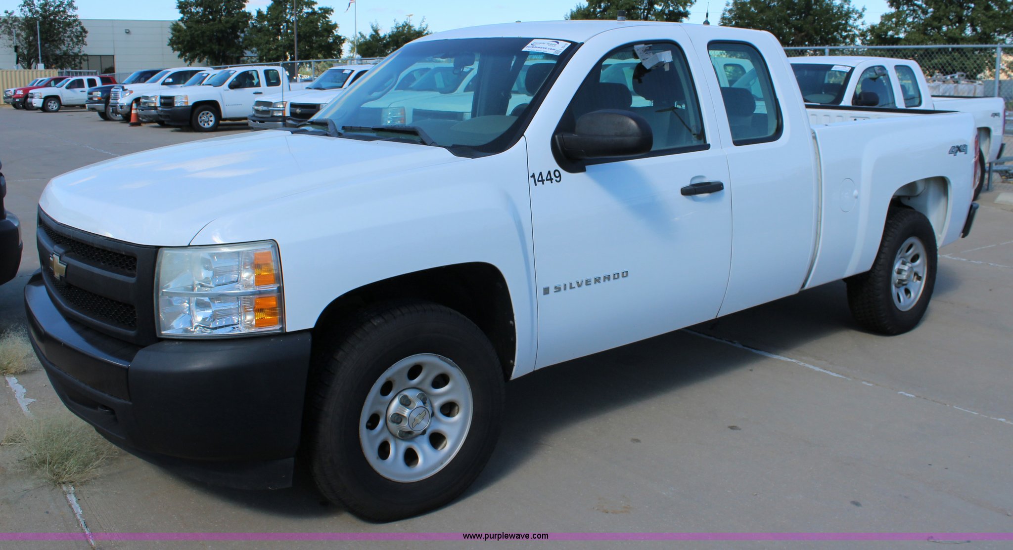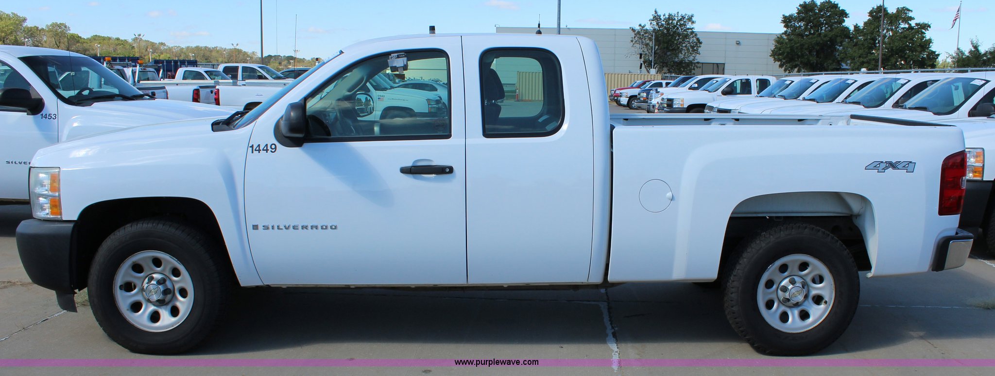 Purple Wave is selling a used 1/2 Ton Pickup or Van in Kansas. This item is a 2008 Chevrolet Silverado 1500 Ext. Cab pickup truck with the following: 167,515 miles on odometer, 4.8L V8 OHV 16V gas engine, Automatic transmission, Four wheel drive, AC and heat, Tilt, Cruise, AM/FM/CD, Power windows, locks, and mirrors, Cloth interior, Front tow hooks, Bed mat, 265/70R17 tires, Unit# 1449