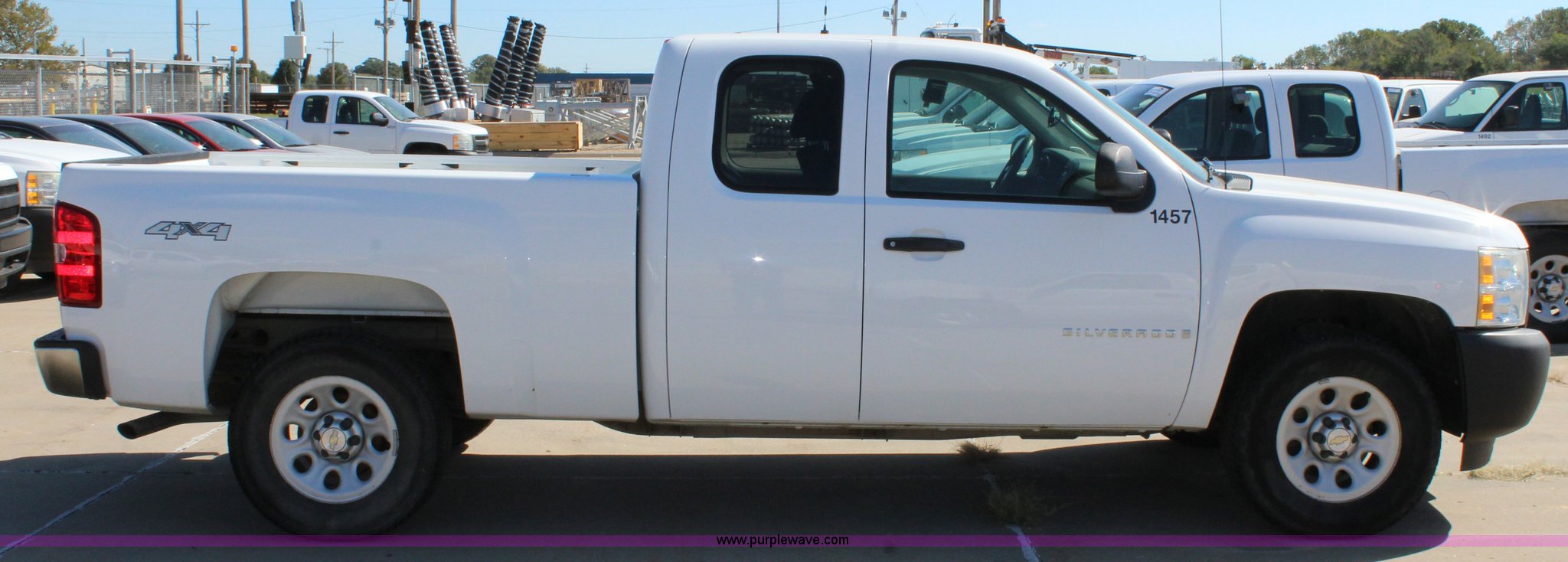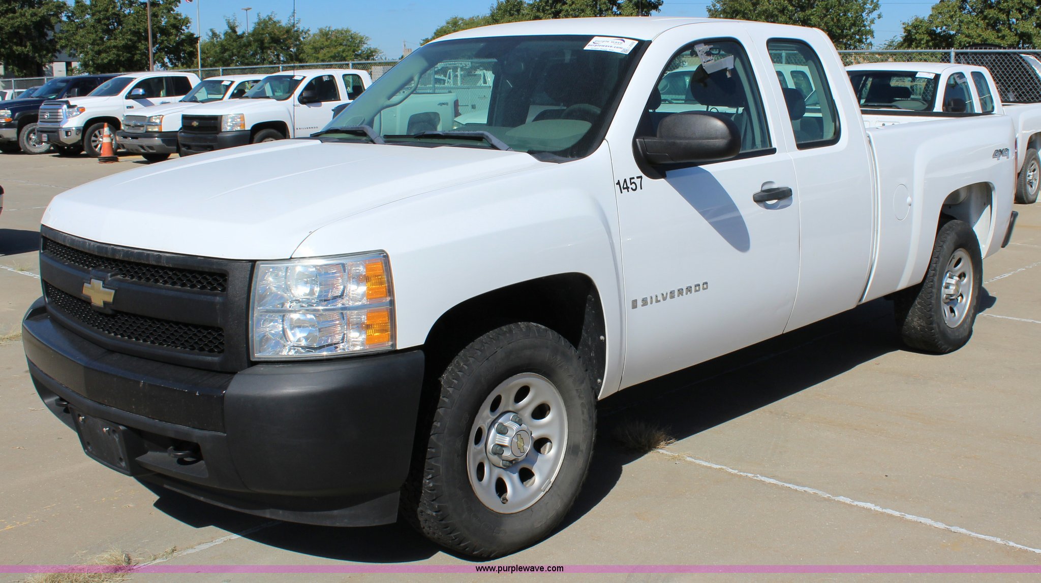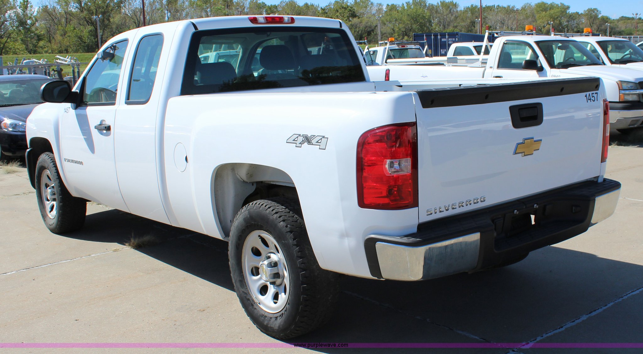 Purple Wave is selling a used 1/2 Ton Pickup or Van in Kansas. This item is a 2008 Chevrolet Silverado 1500 Ext. Cab pickup truck with the following: 123,626 miles on odometer, 4.8L V8 OHV 16V gas engine, Automatic transmission, Four wheel drive, AC and heat, Tilt, Cruise, AM/FM/CD, Power windows, locks, and mirrors, Cloth interior, Front tow hooks, 265/70R17 tires, Unit# 1457