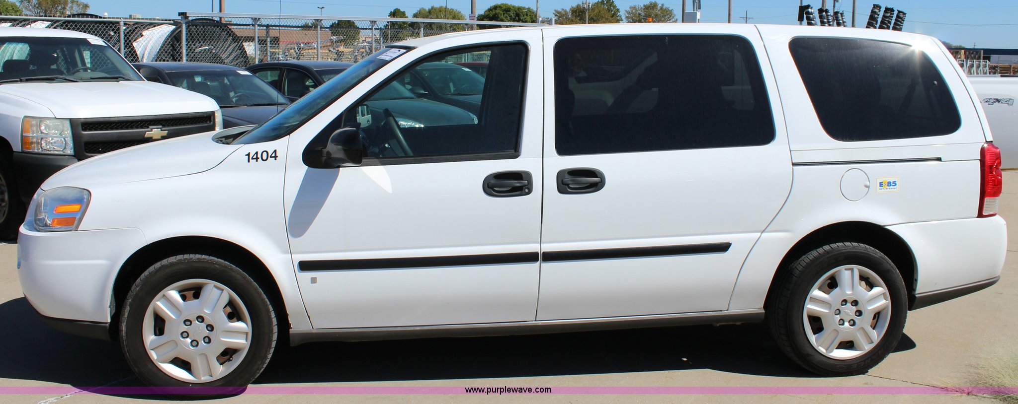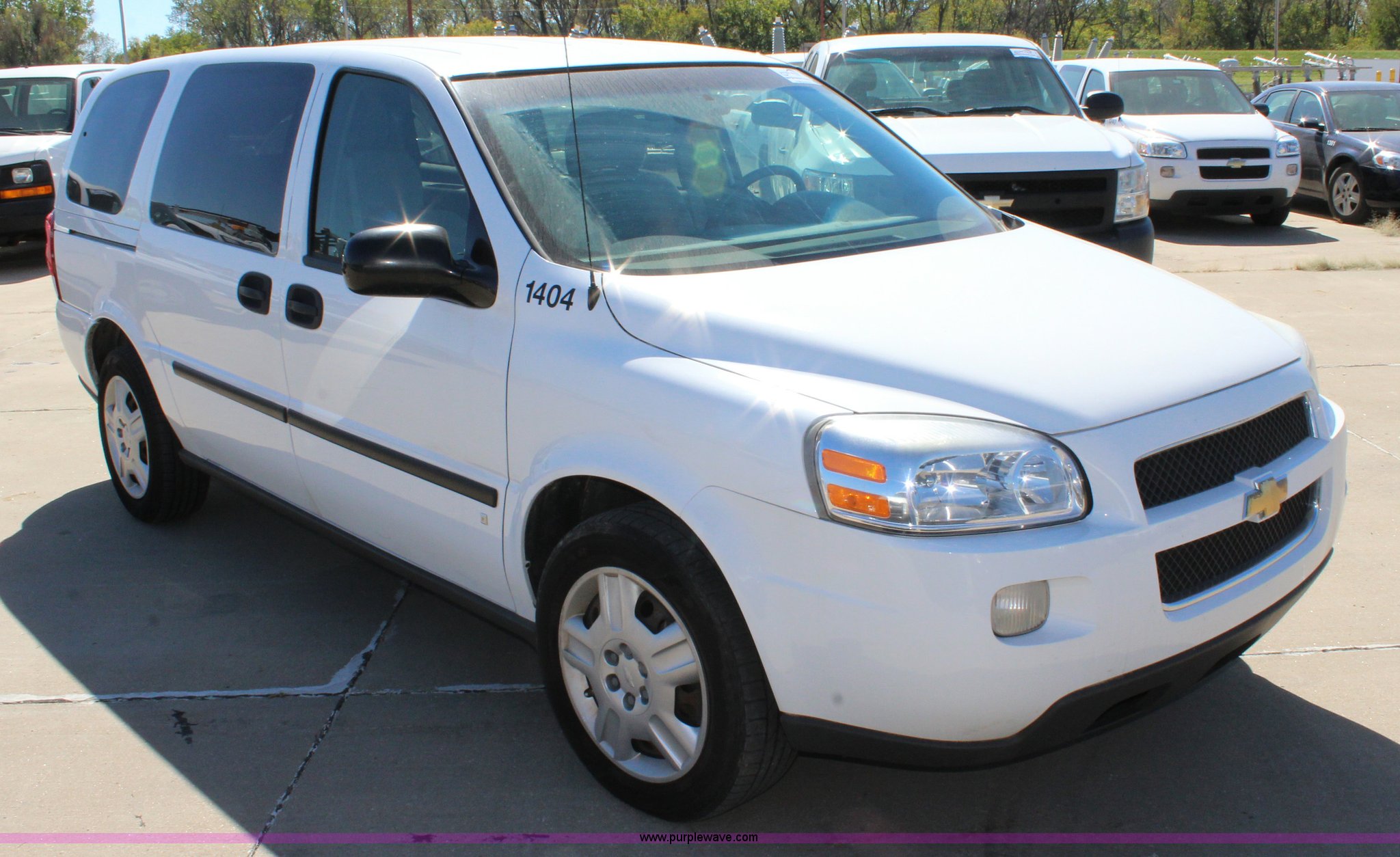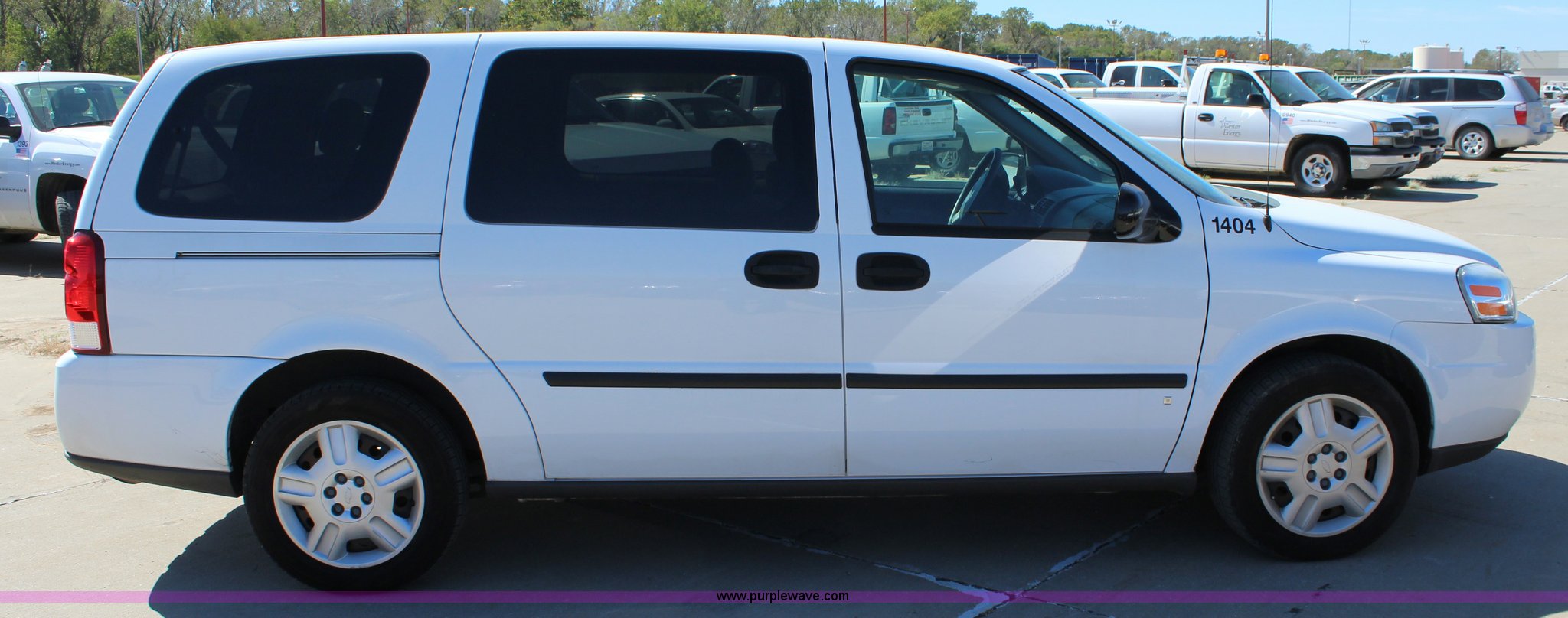 Purple Wave is selling a used Passenger Vehicle in Kansas. This item is a 2008 Chevrolet Uplander LS Ext. van with the following: 164,263 miles on odometer, 3.9L V6 OHV 12V FFV gas engine, Automatic transmission, AC and heat, Tilt, Cruise, AM/FM/CD, Power windows, locks, and mirrors, Cloth interior, 225/60R17 tires, Unit# 1404