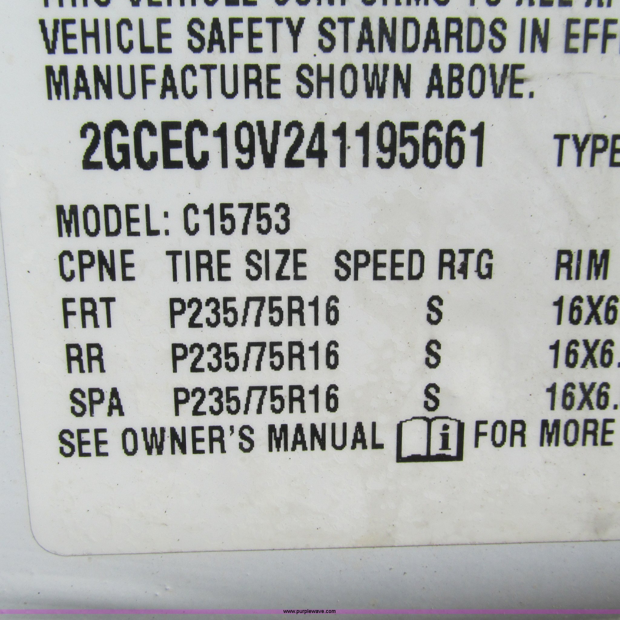 Purple Wave is selling a used 1/2 Ton Pickup or Van in Arkansas. This item is a 2004 Chevrolet Silverado 1500 Ext. Cab pickup truck with the following: Unknown miles on odometer, 4.8L V8 OHV 16V gas engine, Automatic transmission, AC and heat, Tilt, Cruise, AM/FM/CD, Manual windows and locks, Front cloth interior, Vinyl rear interior, Receiver hitch, Trailer wiring, 245/75R16 tires, Interior/exterior cosmetic damage, Dead battery, Windshield cracked, Paint peeling, Trailer wiring damaged, Unknown operating condition