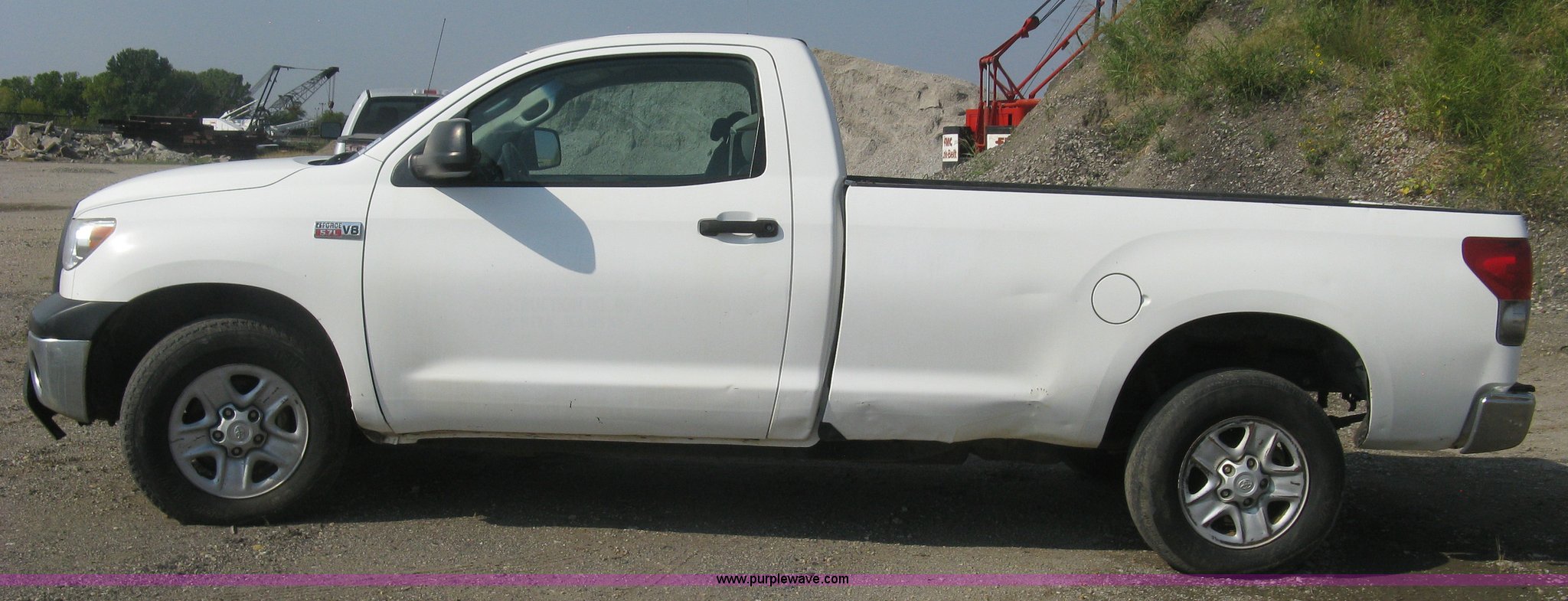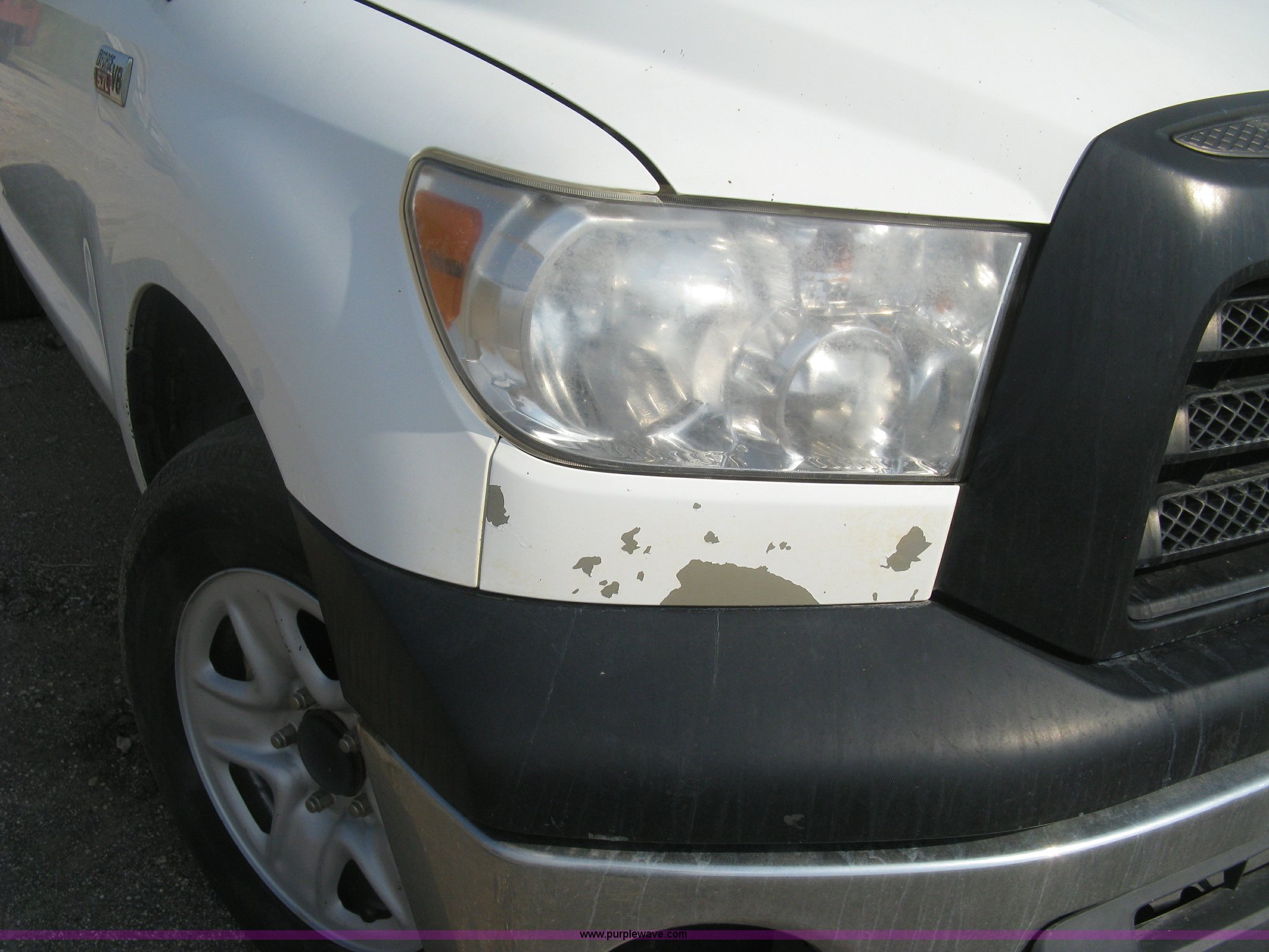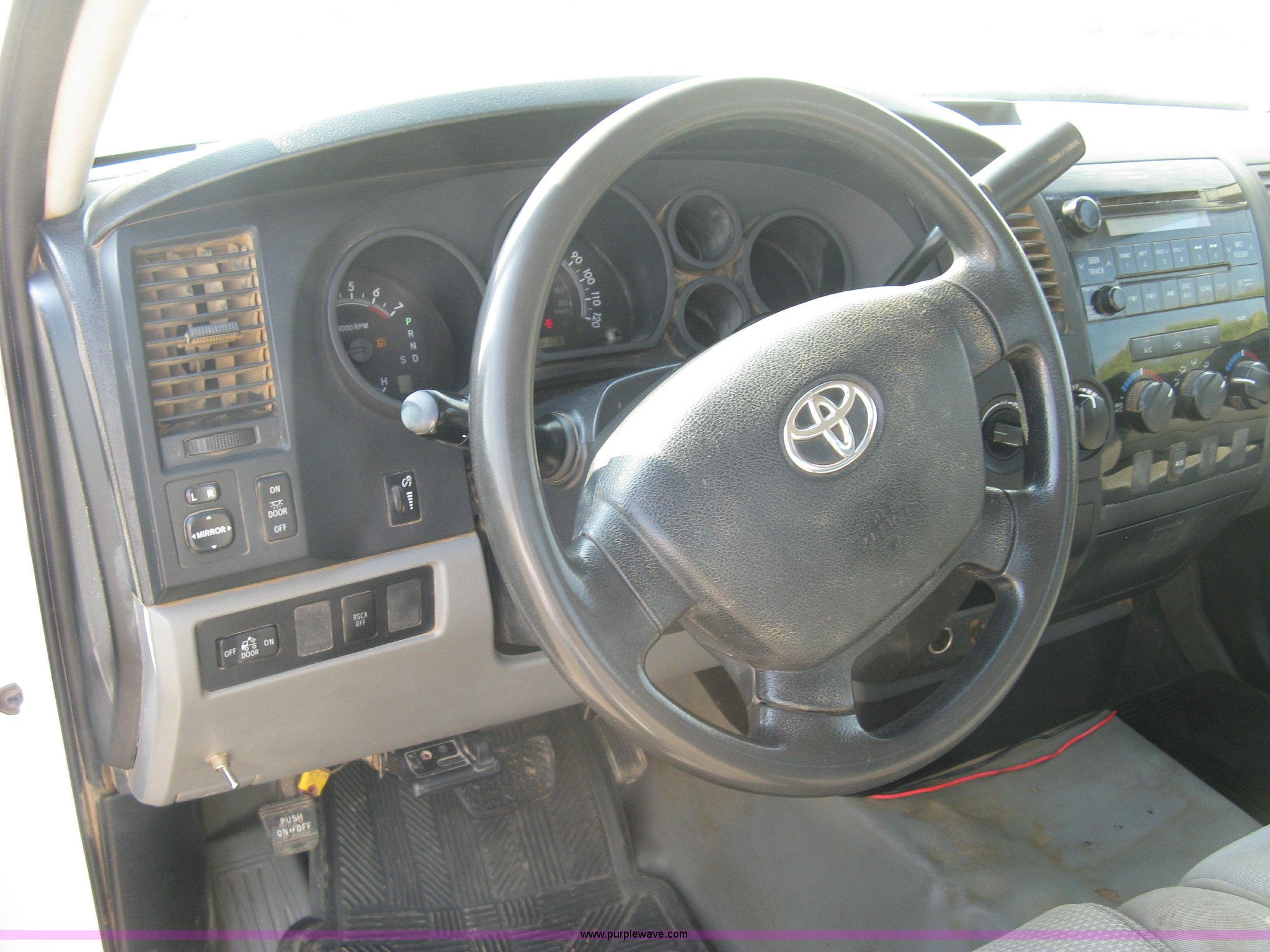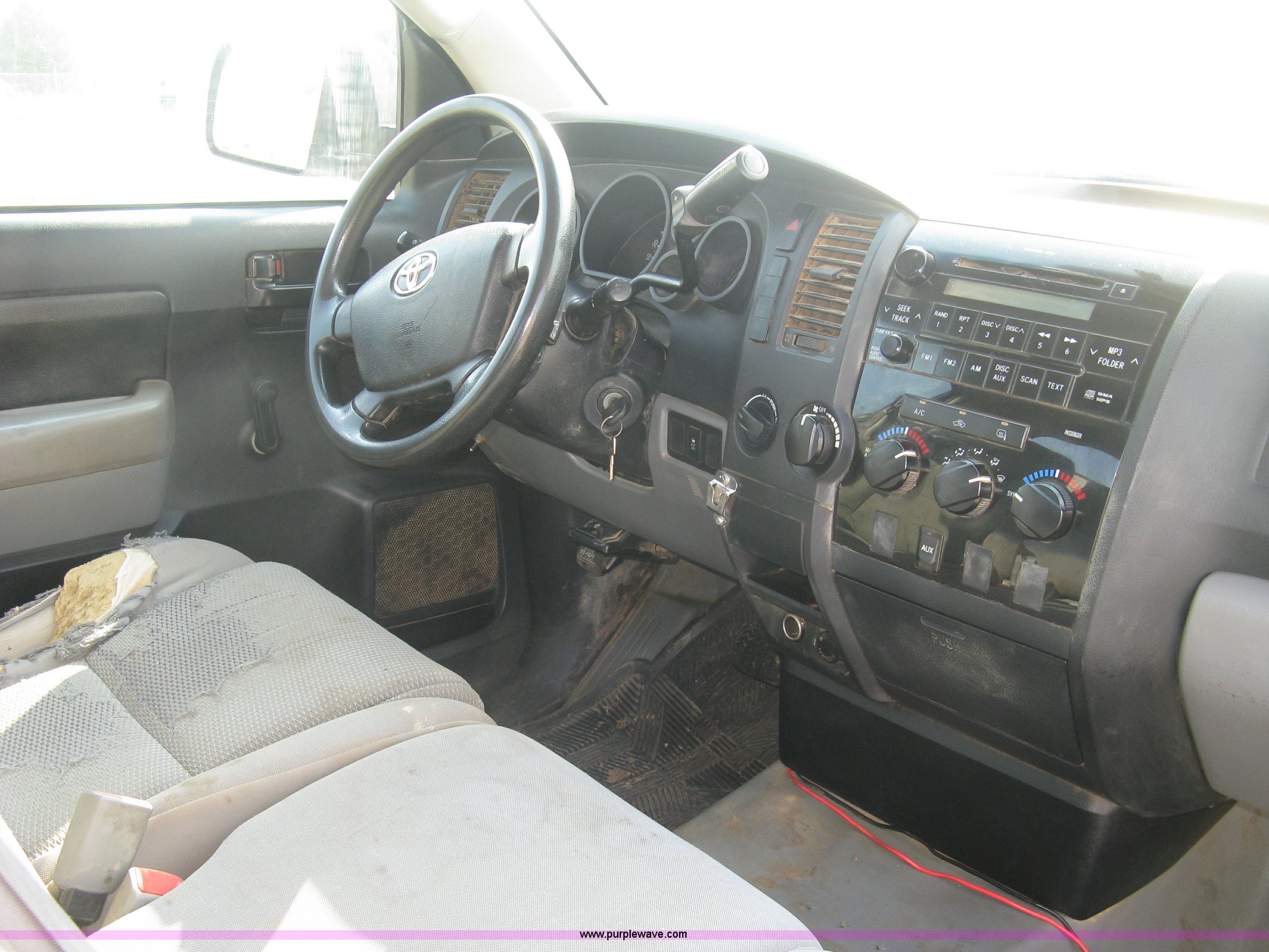 Purple Wave is selling a used 1/2 Ton Pickup or Van in Kansas. This item is a 2009 Toyota Tundra pickup truck with the following: 156,106 miles on odometer, 5.7L V8 DOHC 32V FFV gas engine, Automatic transmission, Four wheel drive, AC and heat, Tilt, Cruise, AM/FM/CD, Manual windows and locks, Power mirrors, Cloth interior, Trailer brake controller, Long bed, Receiver hitch, P255/70R18 tires, Weak battery, Exterior body damage, Front and rear bumper damage