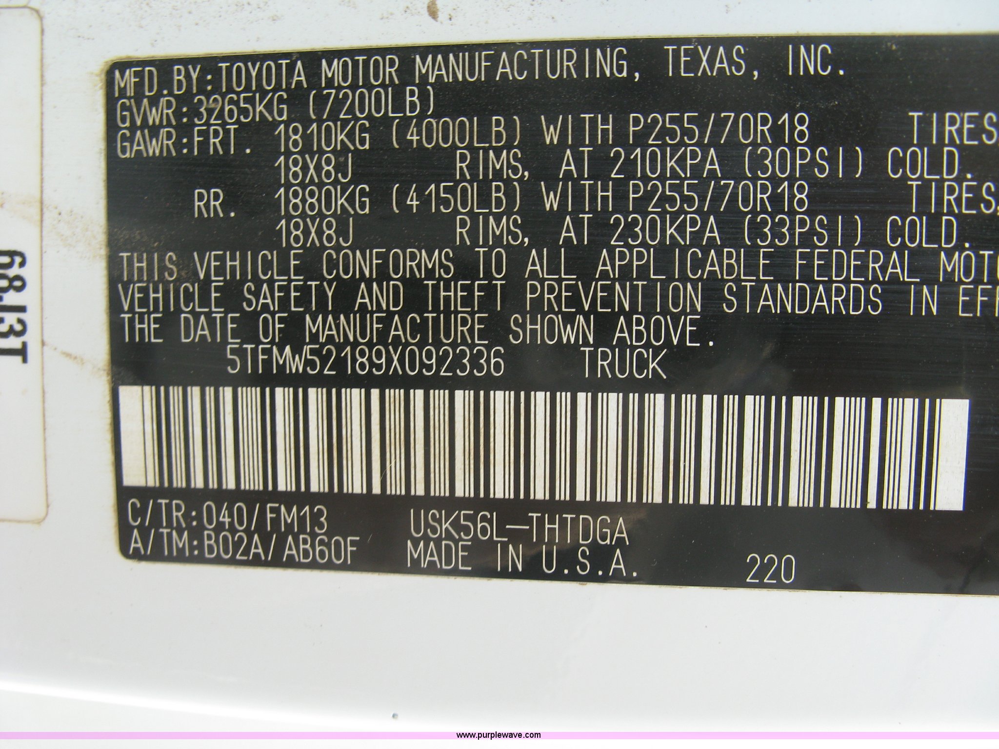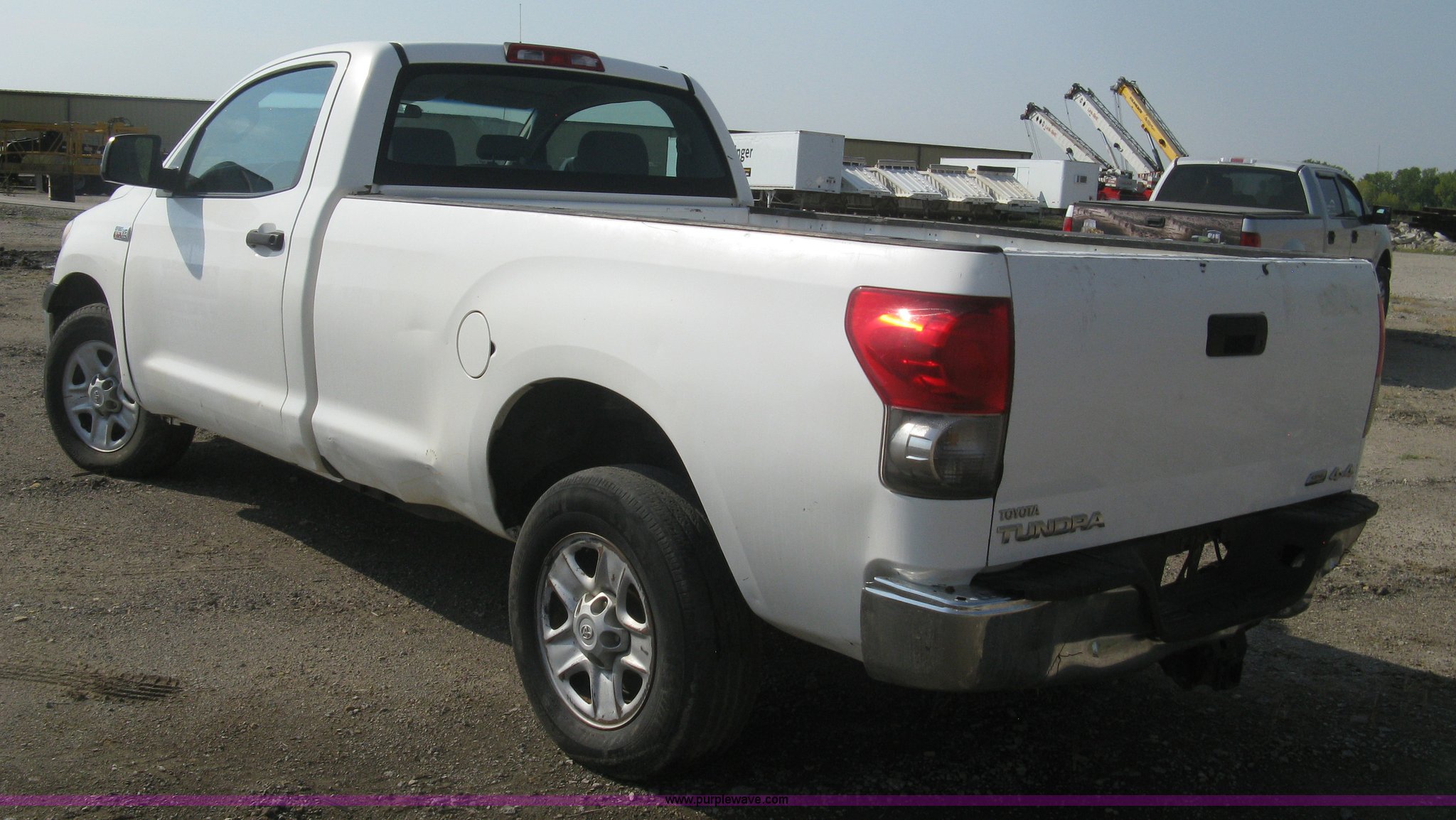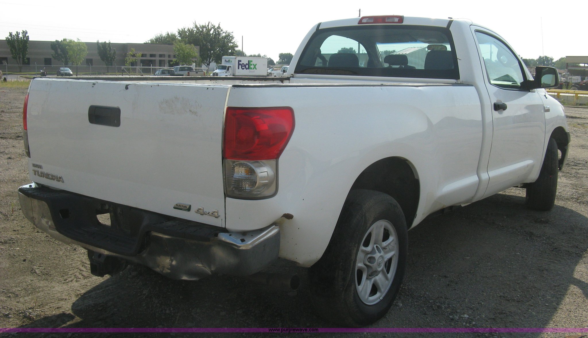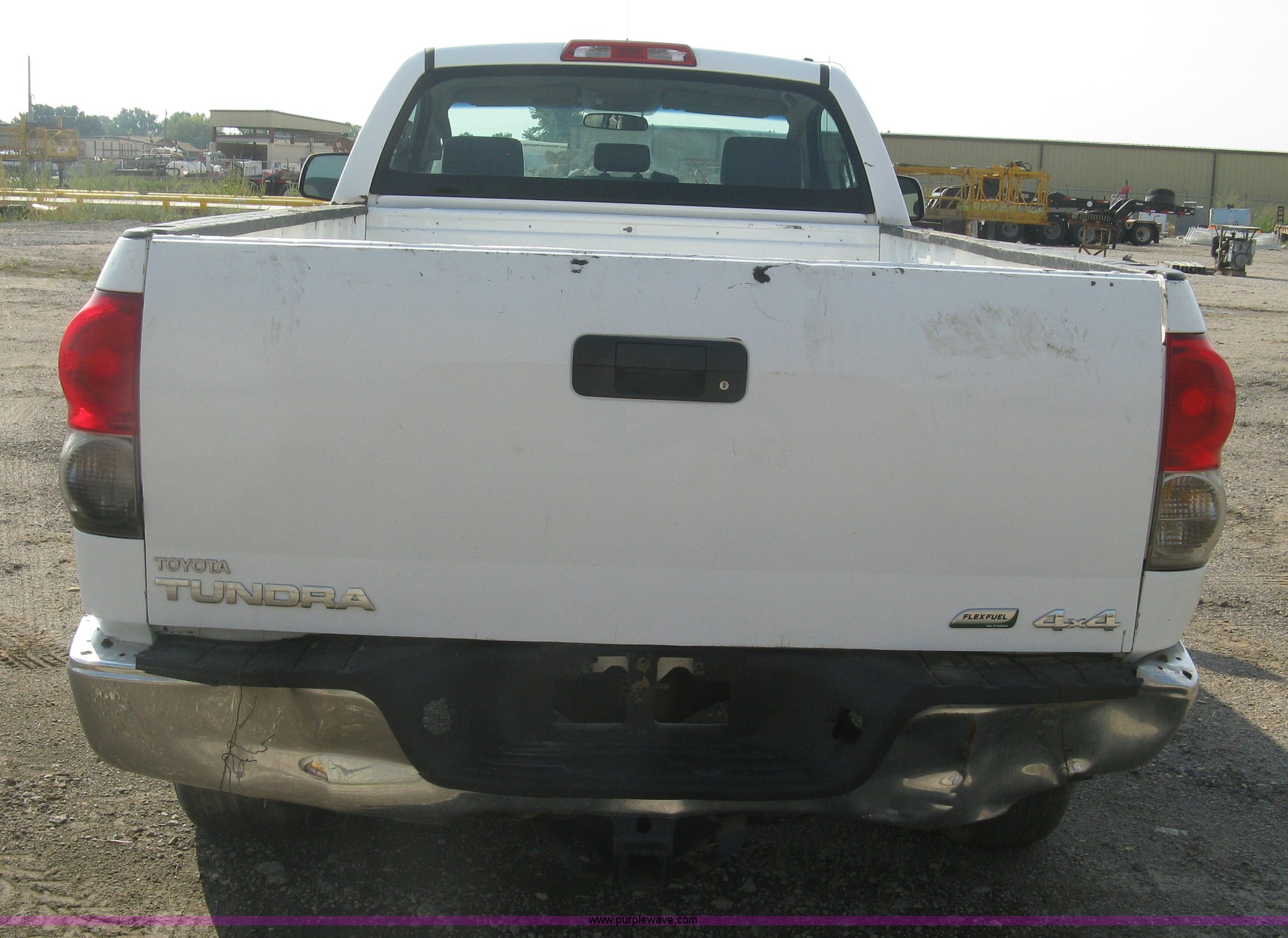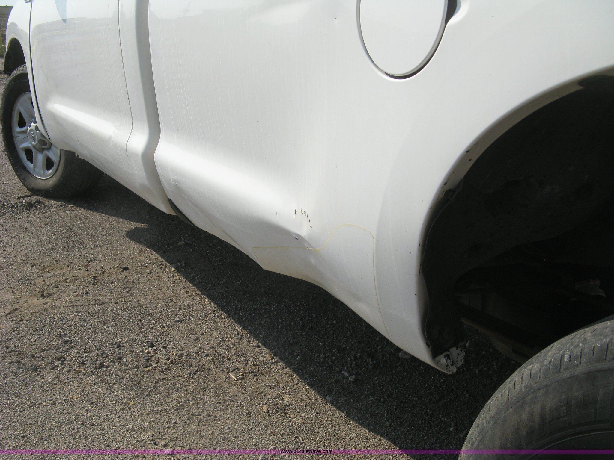 Purple Wave is selling a used 1/2 Ton Pickup or Van in Kansas. This item is a 2009 Toyota Tundra pickup truck with the following: 156,106 miles on odometer, 5.7L V8 DOHC 32V FFV gas engine, Automatic transmission, Four wheel drive, AC and heat, Tilt, Cruise, AM/FM/CD, Manual windows and locks, Power mirrors, Cloth interior, Trailer brake controller, Long bed, Receiver hitch, P255/70R18 tires, Weak battery, Exterior body damage, Front and rear bumper damage