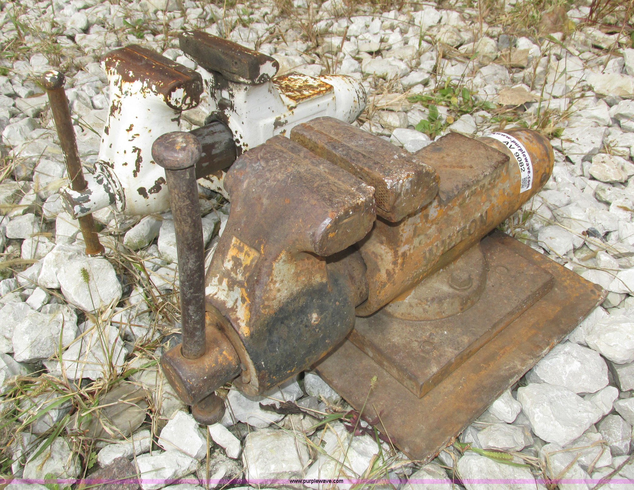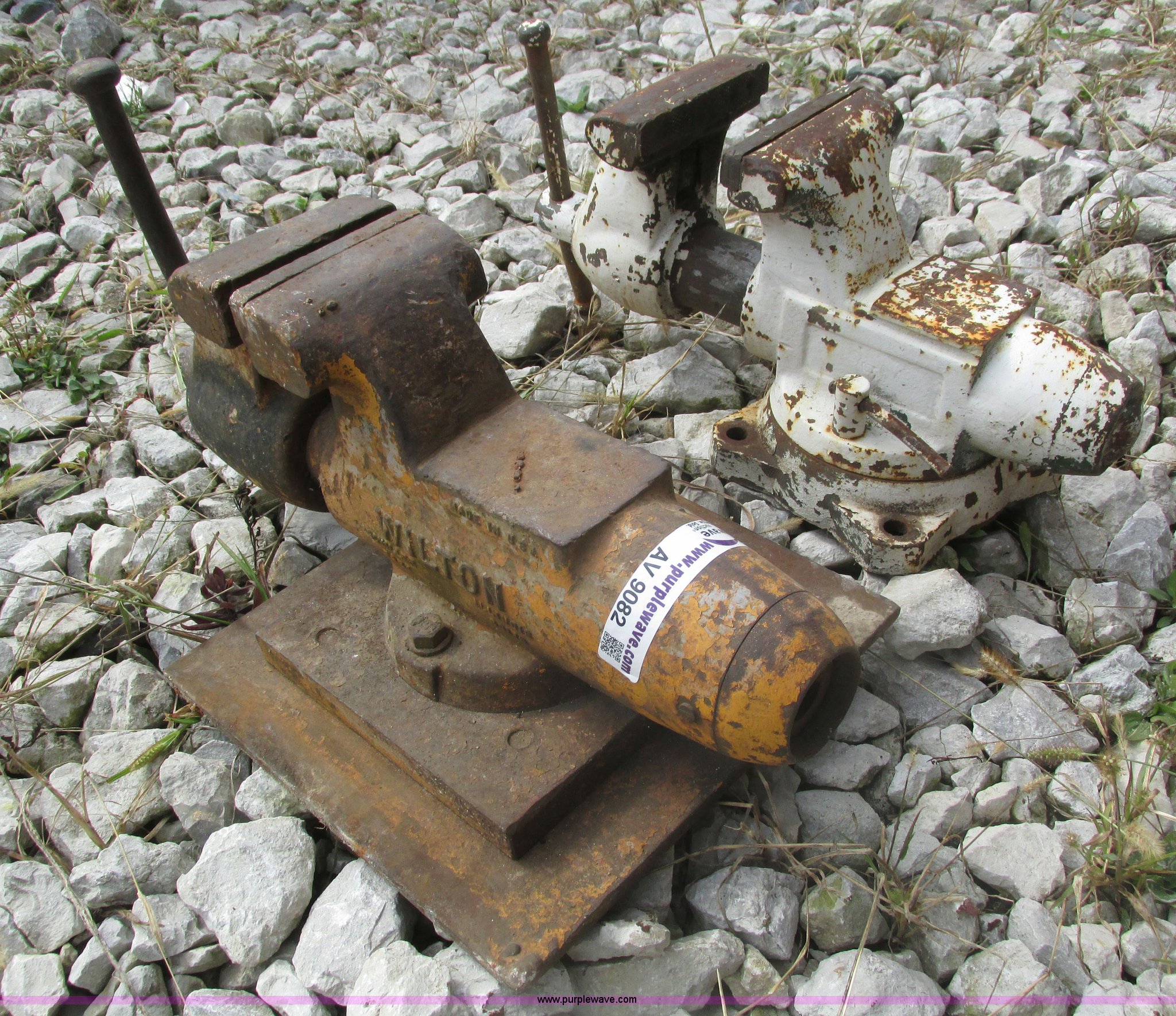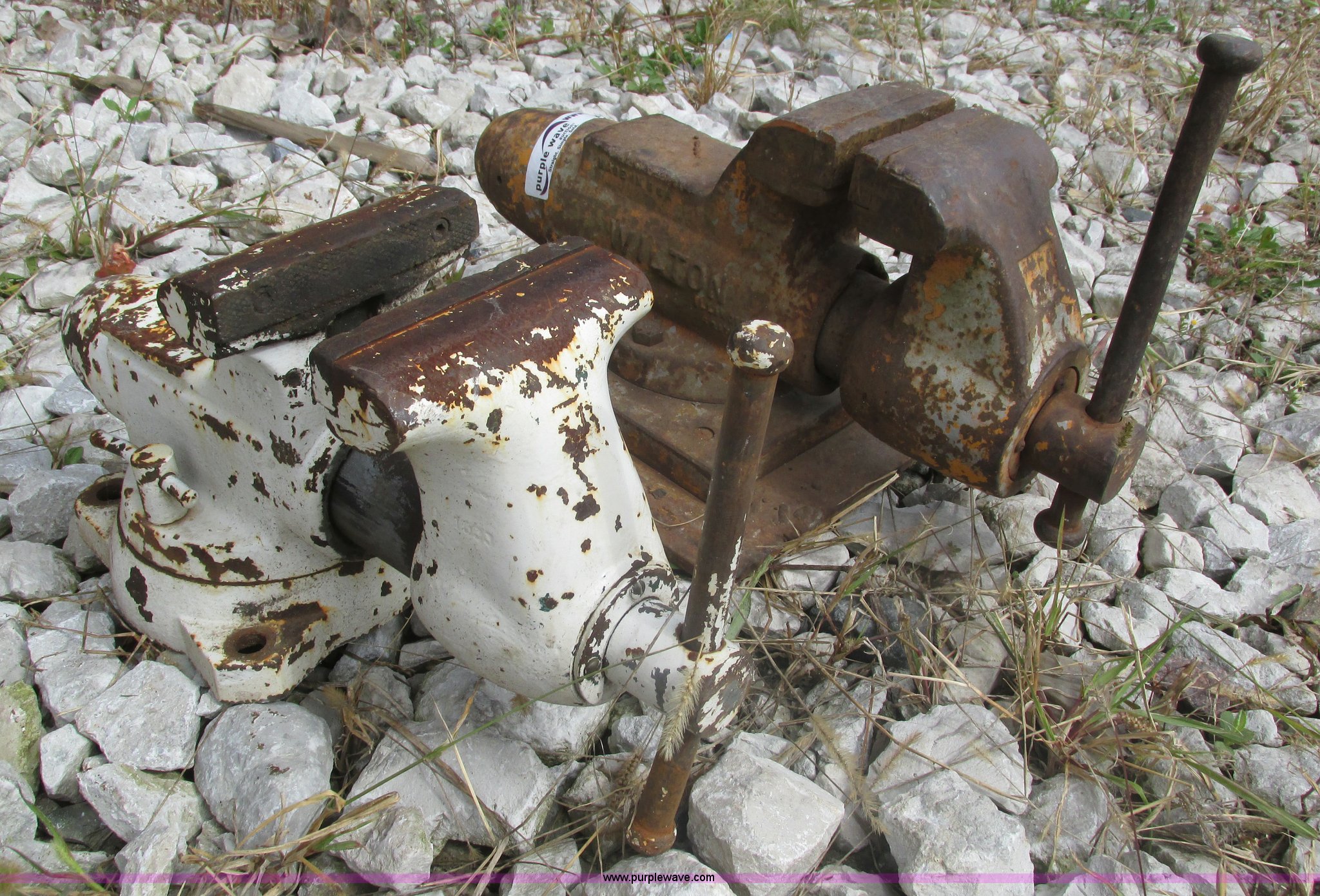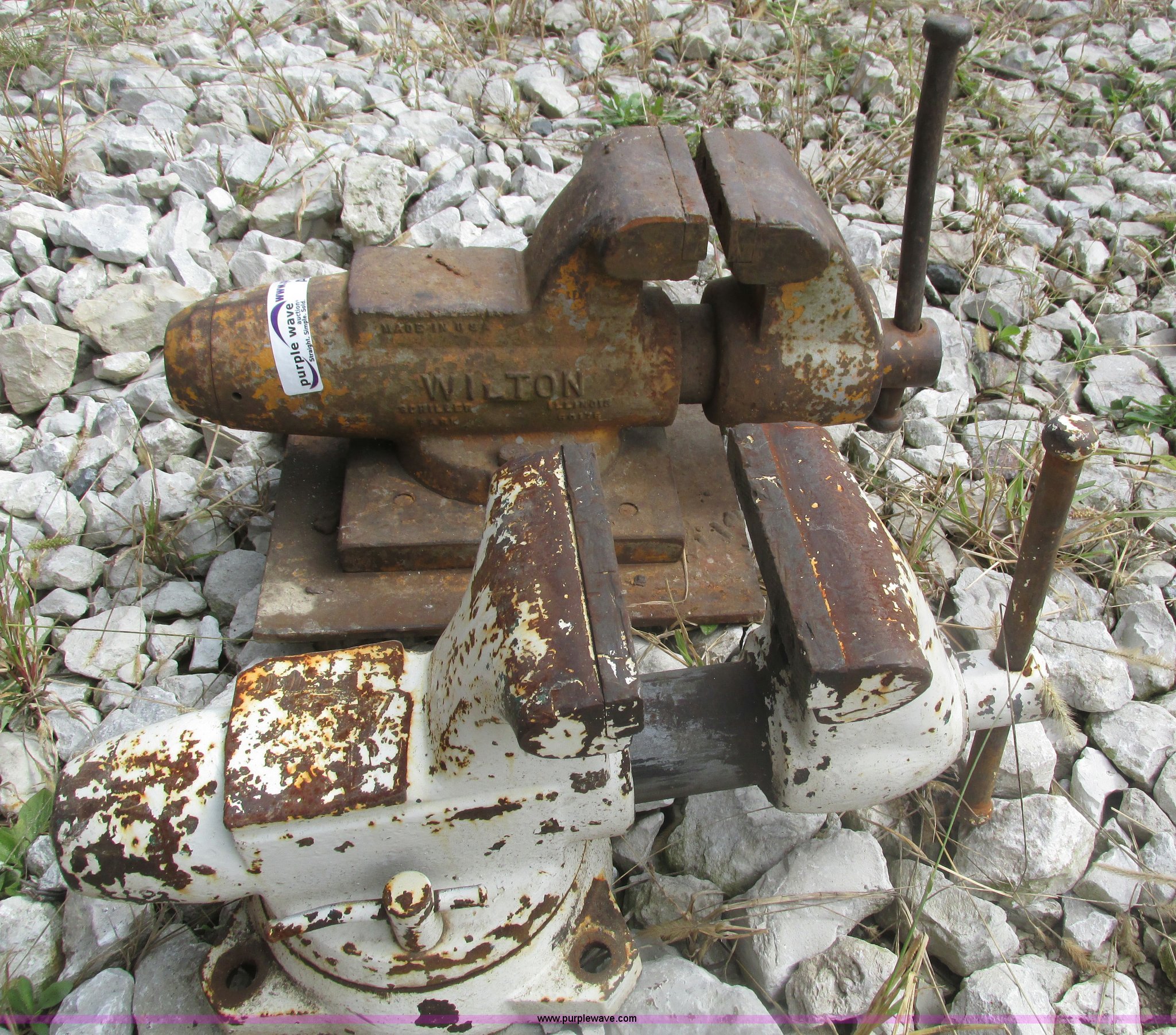 Purple Wave is selling a used Tools in Nebraska. This item is a (2) vises with the following: Wilton 5", Steel base plate, 6", Swivel base