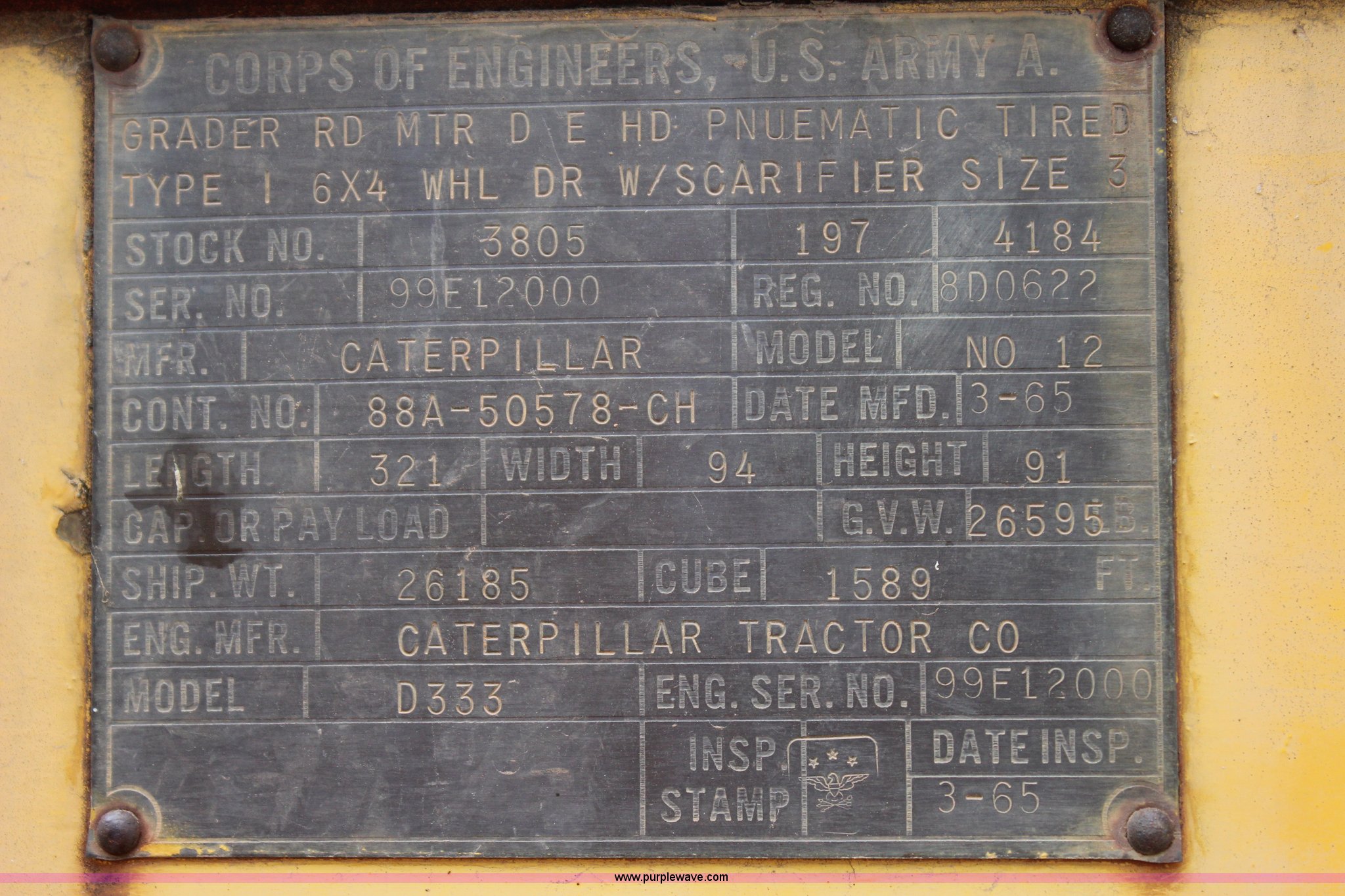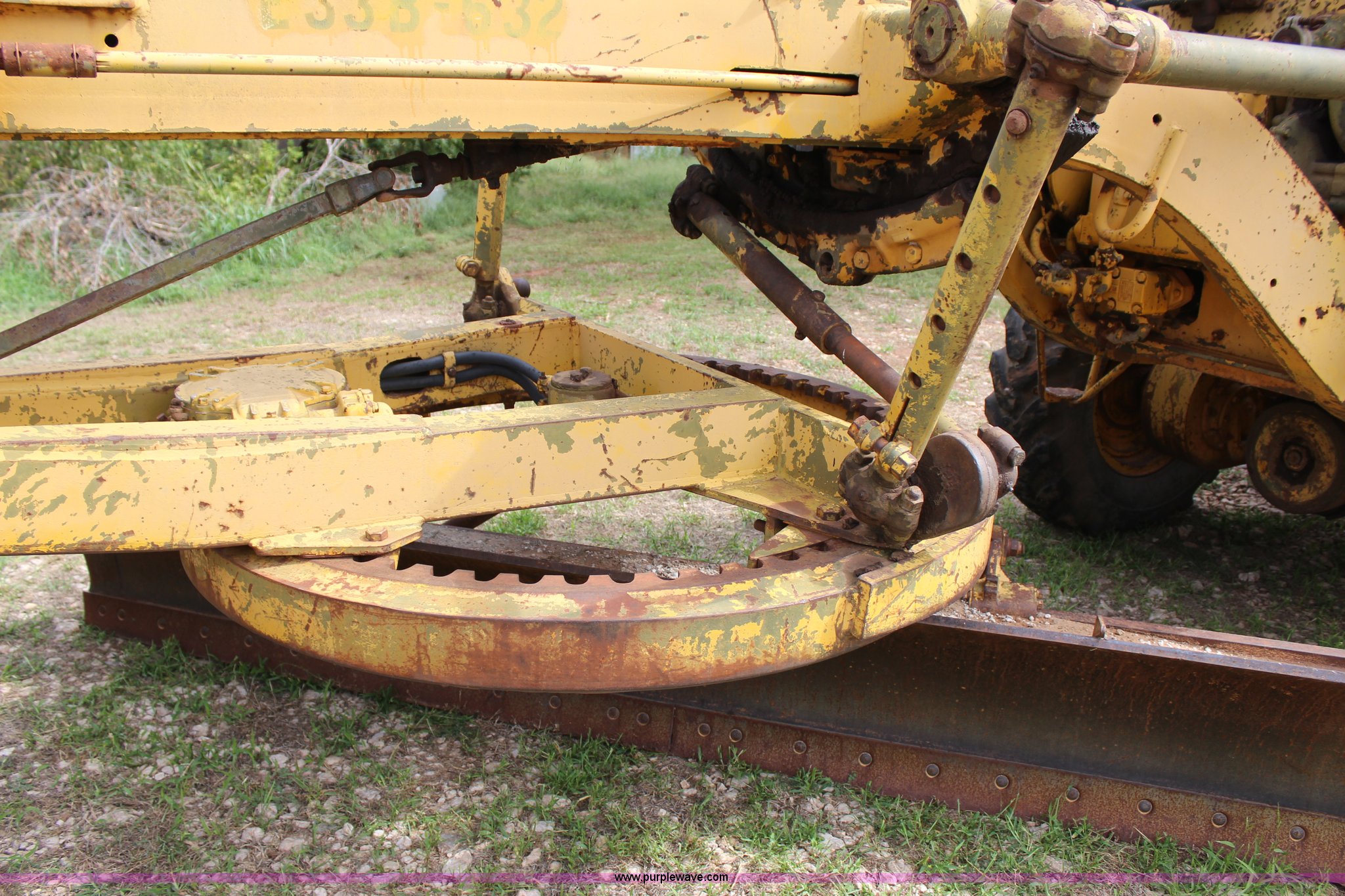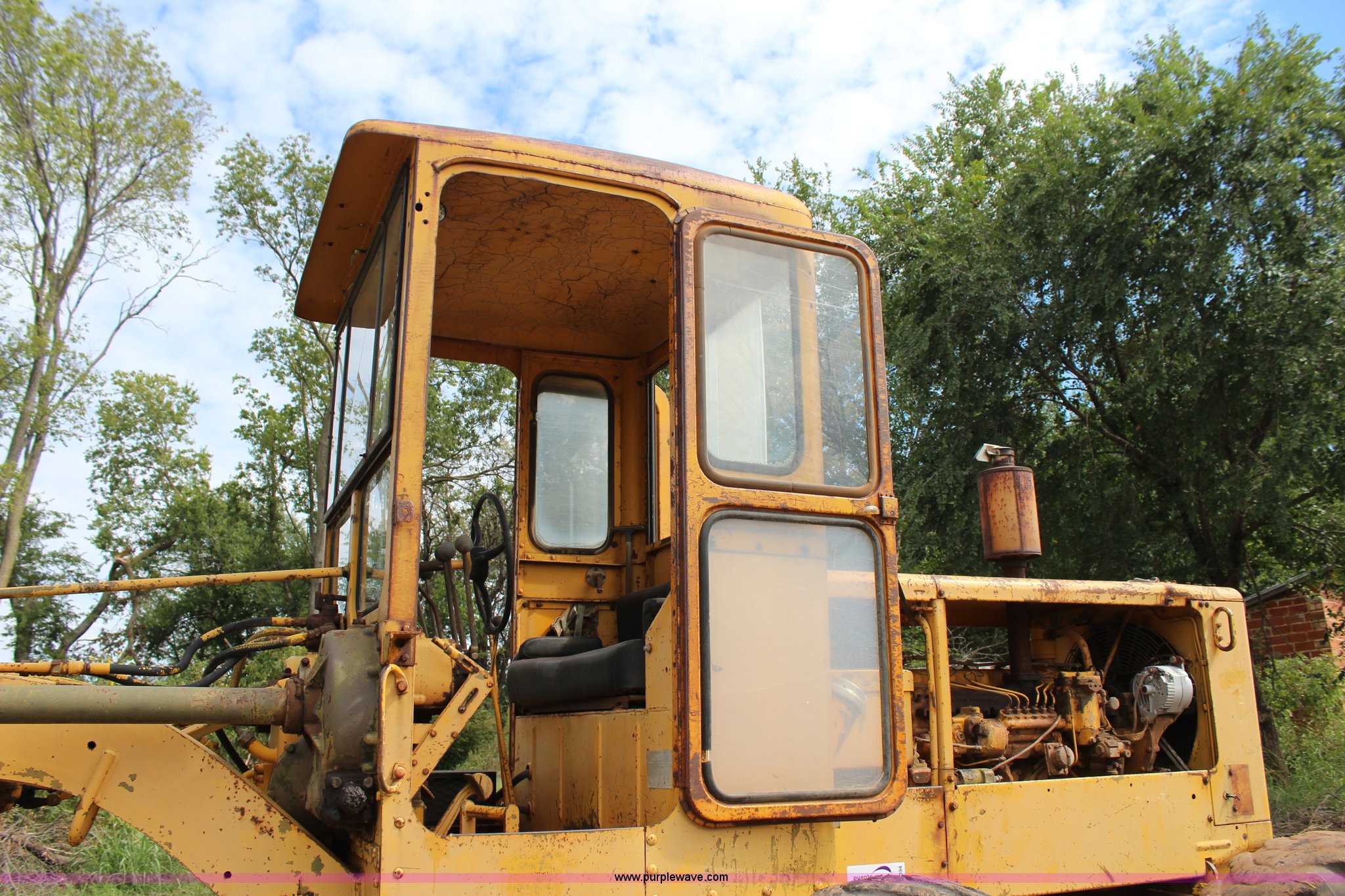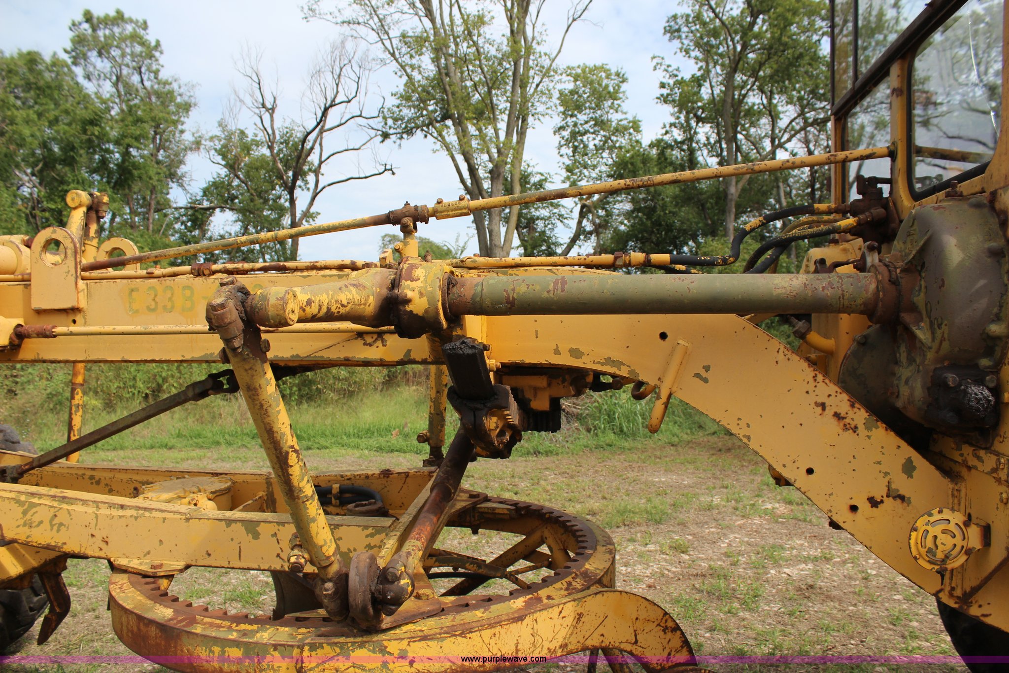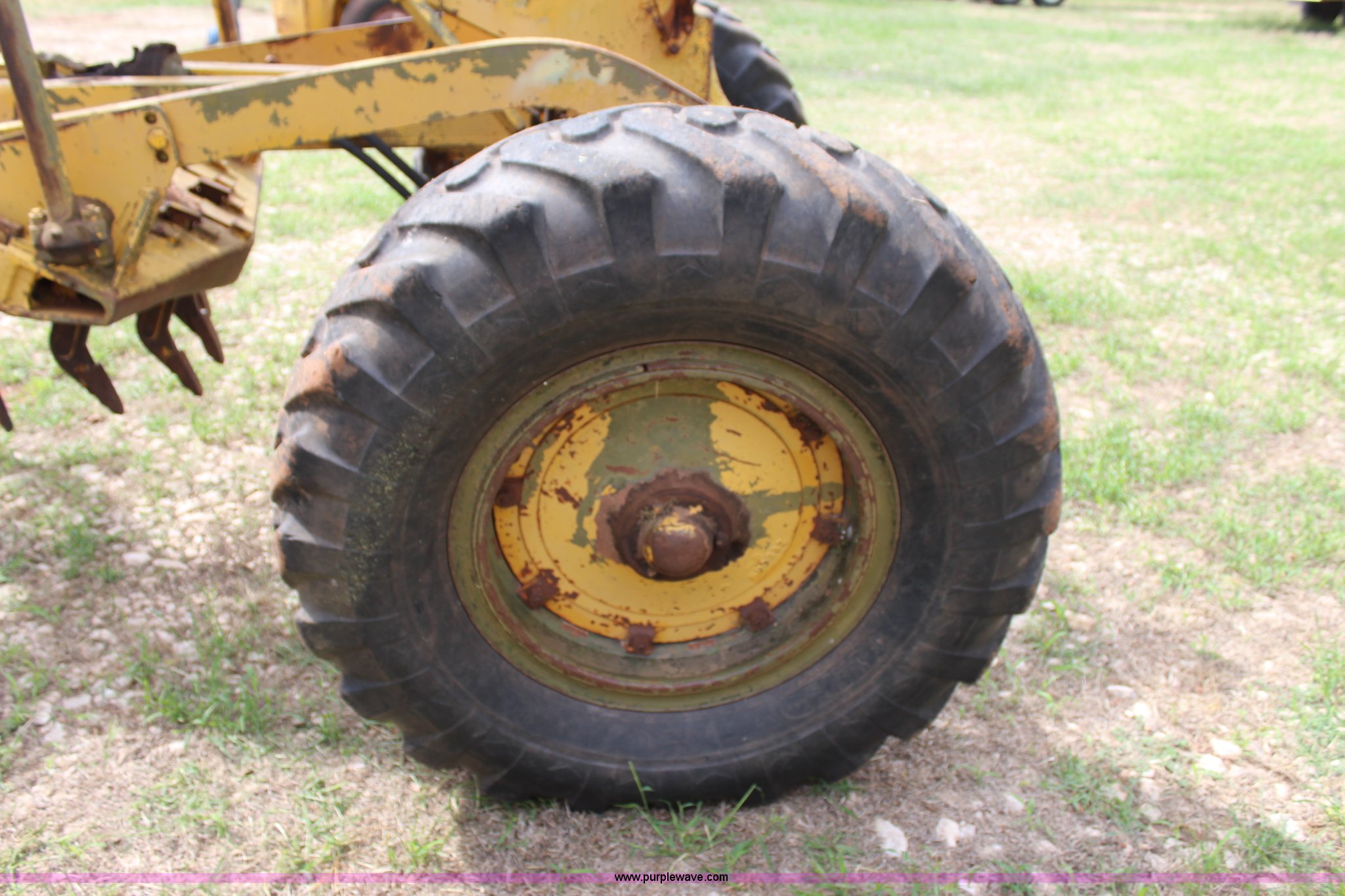 Purple Wave is selling a used Motor Grader in Oklahoma. This item is a 1965 Caterpillar 12E rigid frame motor grader with the following: Caterpillar E3R463 six cylinder diesel engine, Serial 99E12000, 6F-4R gears, 12' moldboard, Side shift, Mid-mounted scarifier, (6) teeth, 60 gallon fuel tank, 13.00-24 tires, Stock No. 3805, Sale# 1615KP, Serial 99E12000