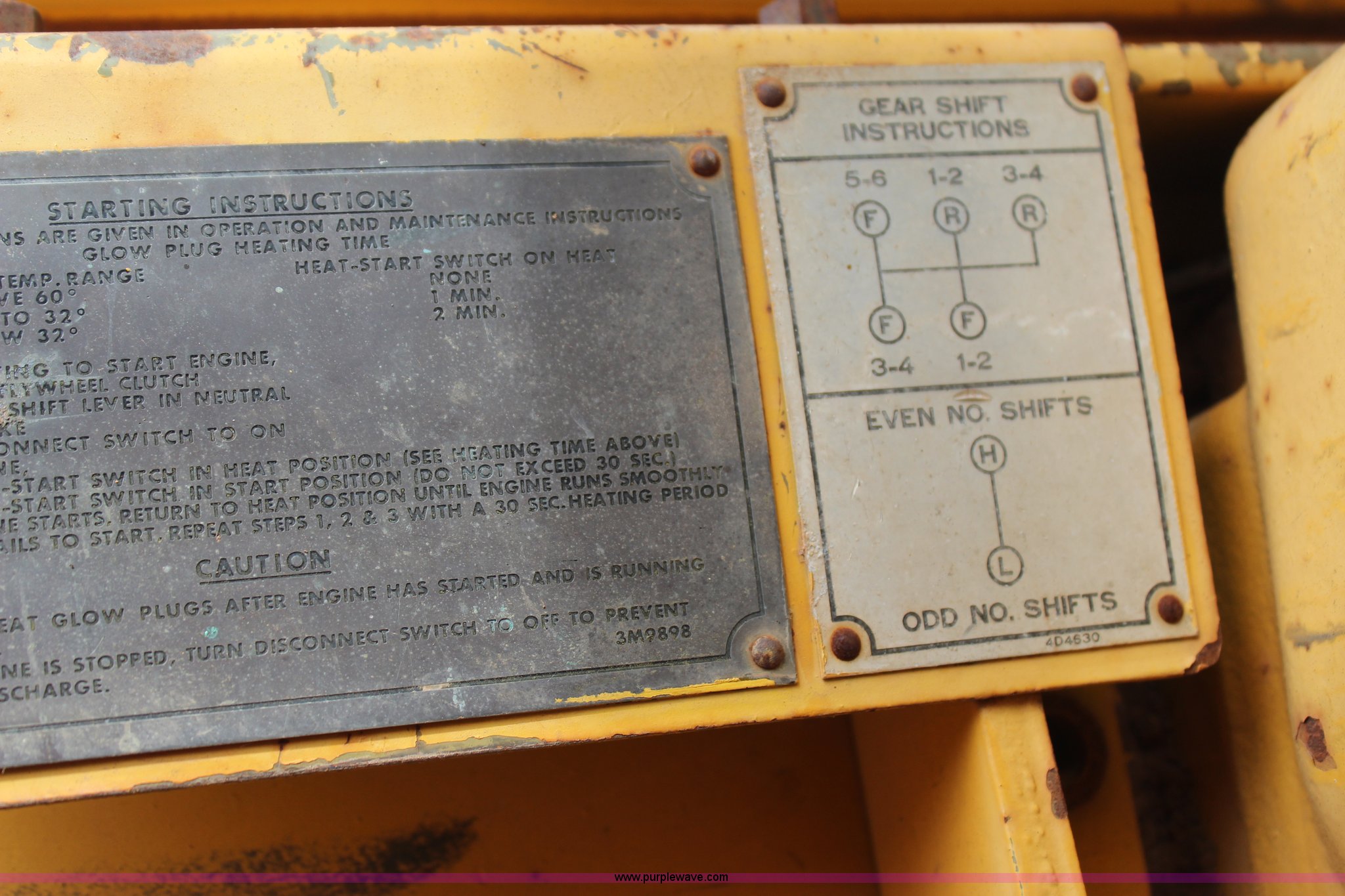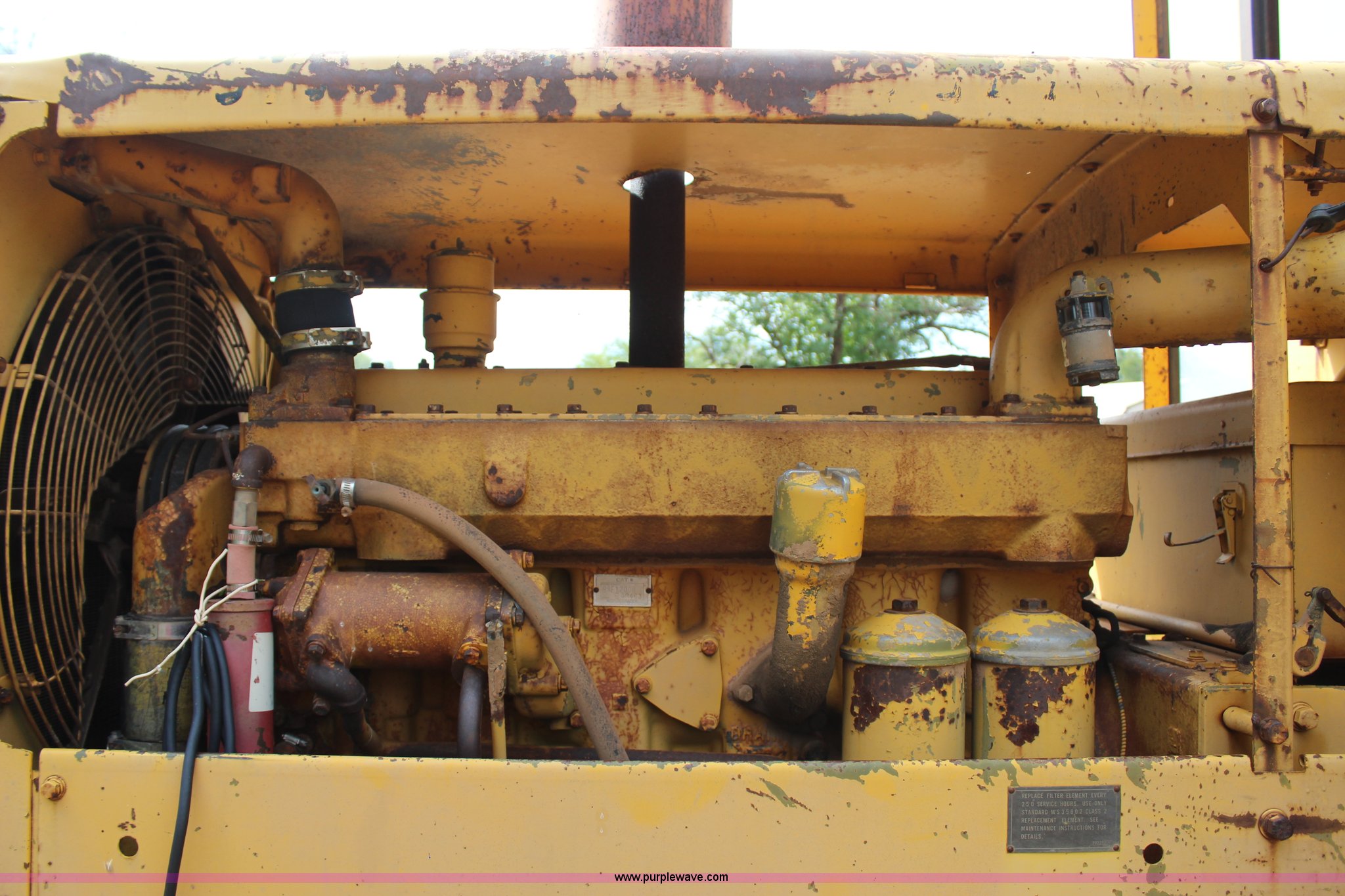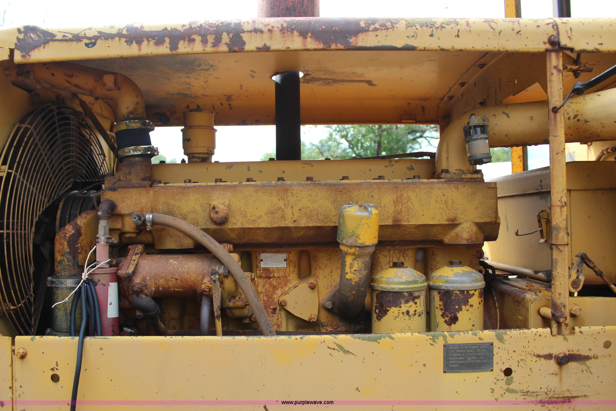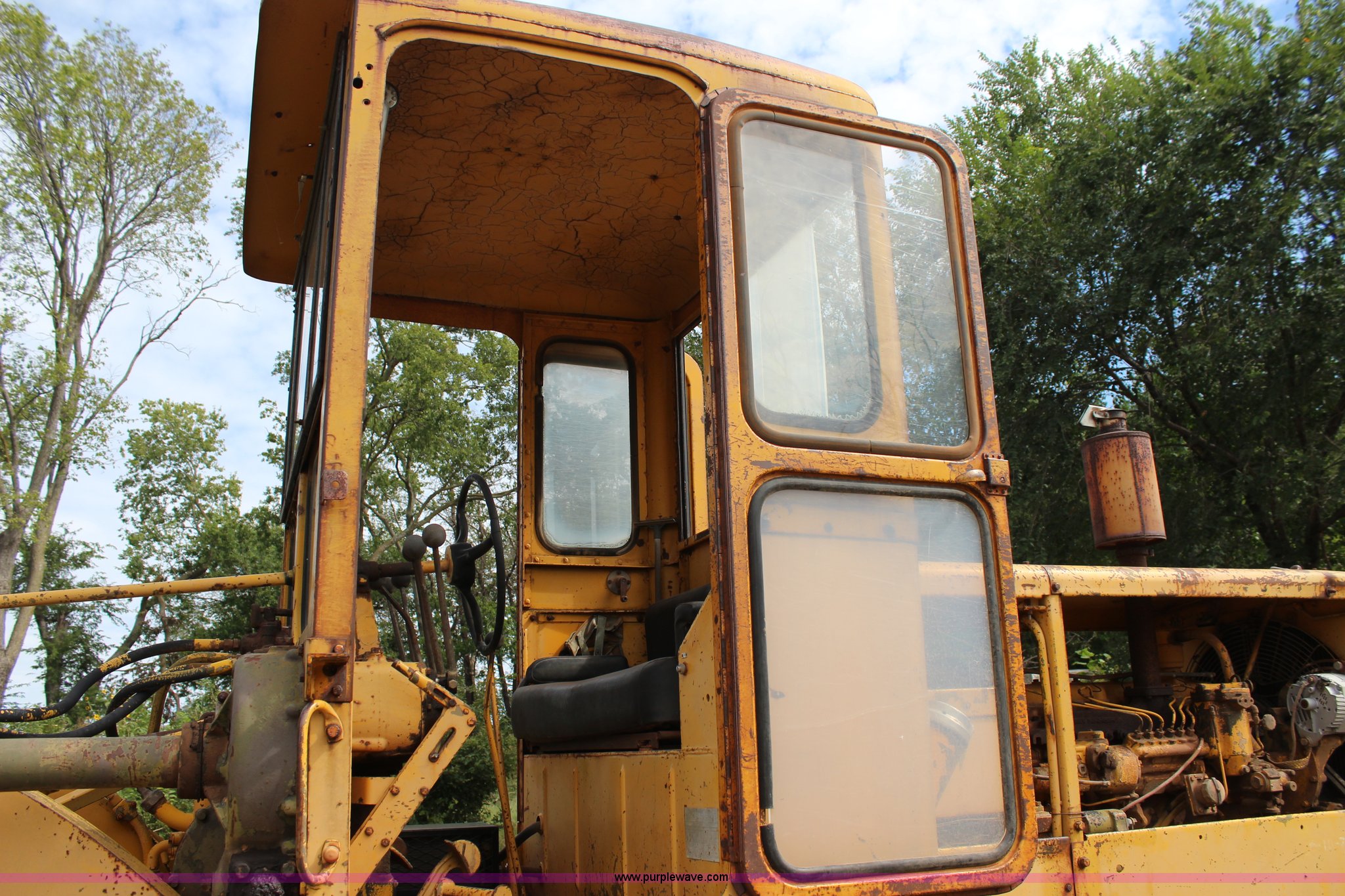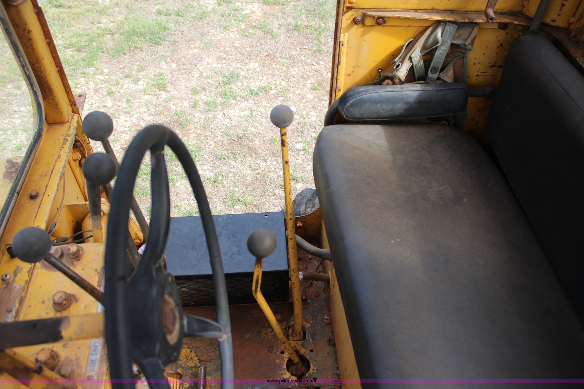 Purple Wave is selling a used Motor Grader in Oklahoma. This item is a 1965 Caterpillar 12E rigid frame motor grader with the following: Caterpillar E3R463 six cylinder diesel engine, Serial 99E12000, 6F-4R gears, 12' moldboard, Side shift, Mid-mounted scarifier, (6) teeth, 60 gallon fuel tank, 13.00-24 tires, Stock No. 3805, Sale# 1615KP, Serial 99E12000