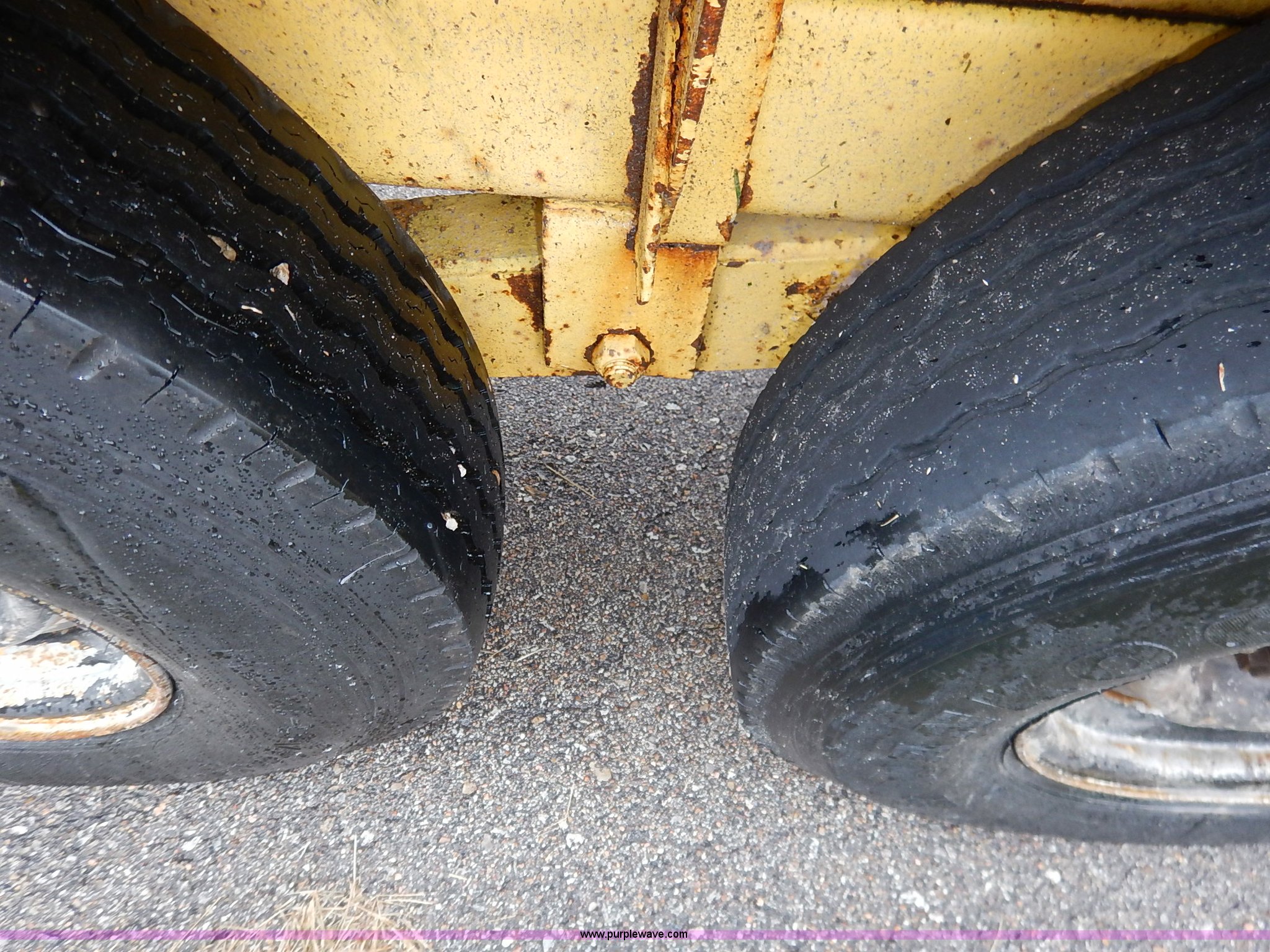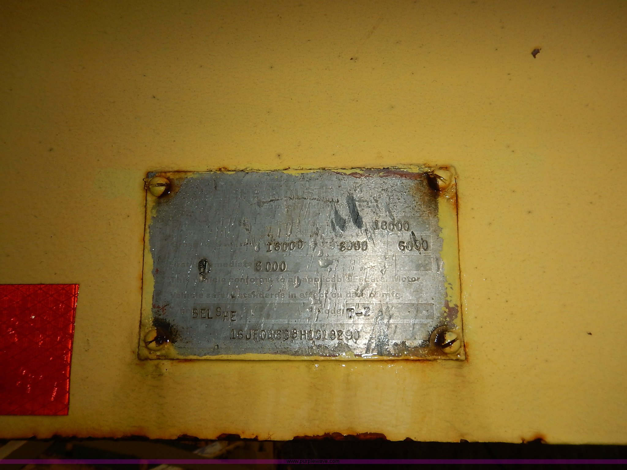 Purple Wave is selling a used Equip. Trailer in Kansas. This item is a 1987 Belshie T-2 equipment trailer with the following: 26.5' overall length, 15.5'L x 102"W deck, 3'L dovetail, 8'L tongue, 4'L x 18"W folding ramps, Rear tow hooks, Manual jack, Safety chains, Brake-away cable, Triple axle, 7.50R16 tires, GVWR 18,000 lbs, FAWR 6,000 lbs, IAWR 6,000 lbs, RAWR 6,000 lbs