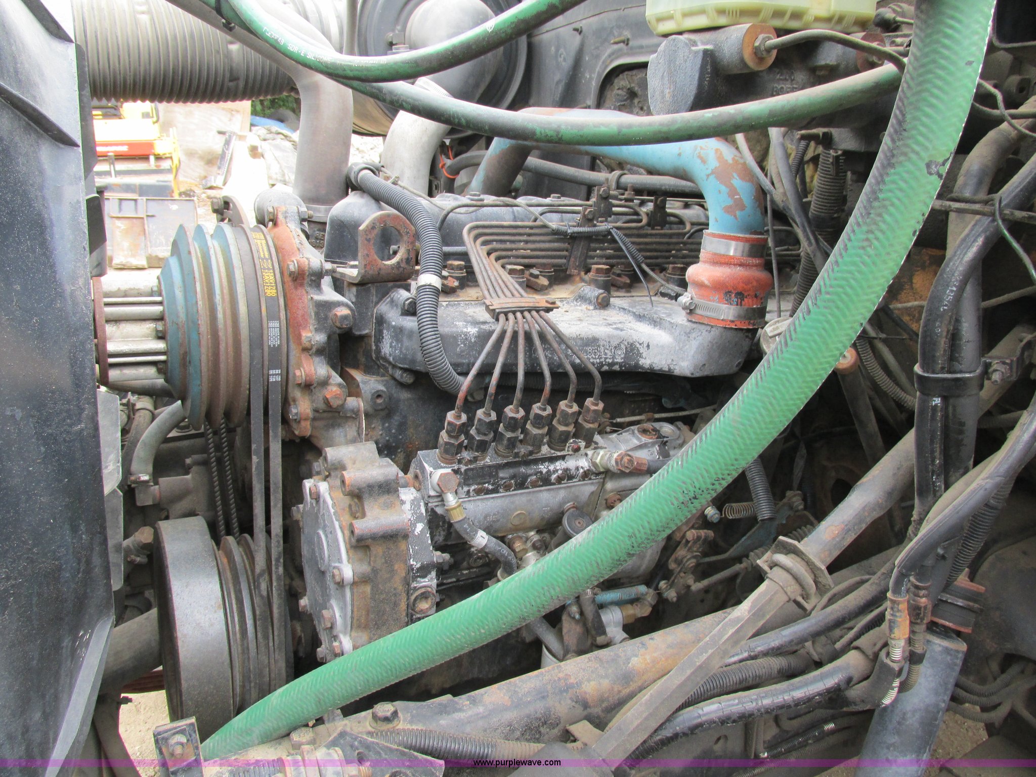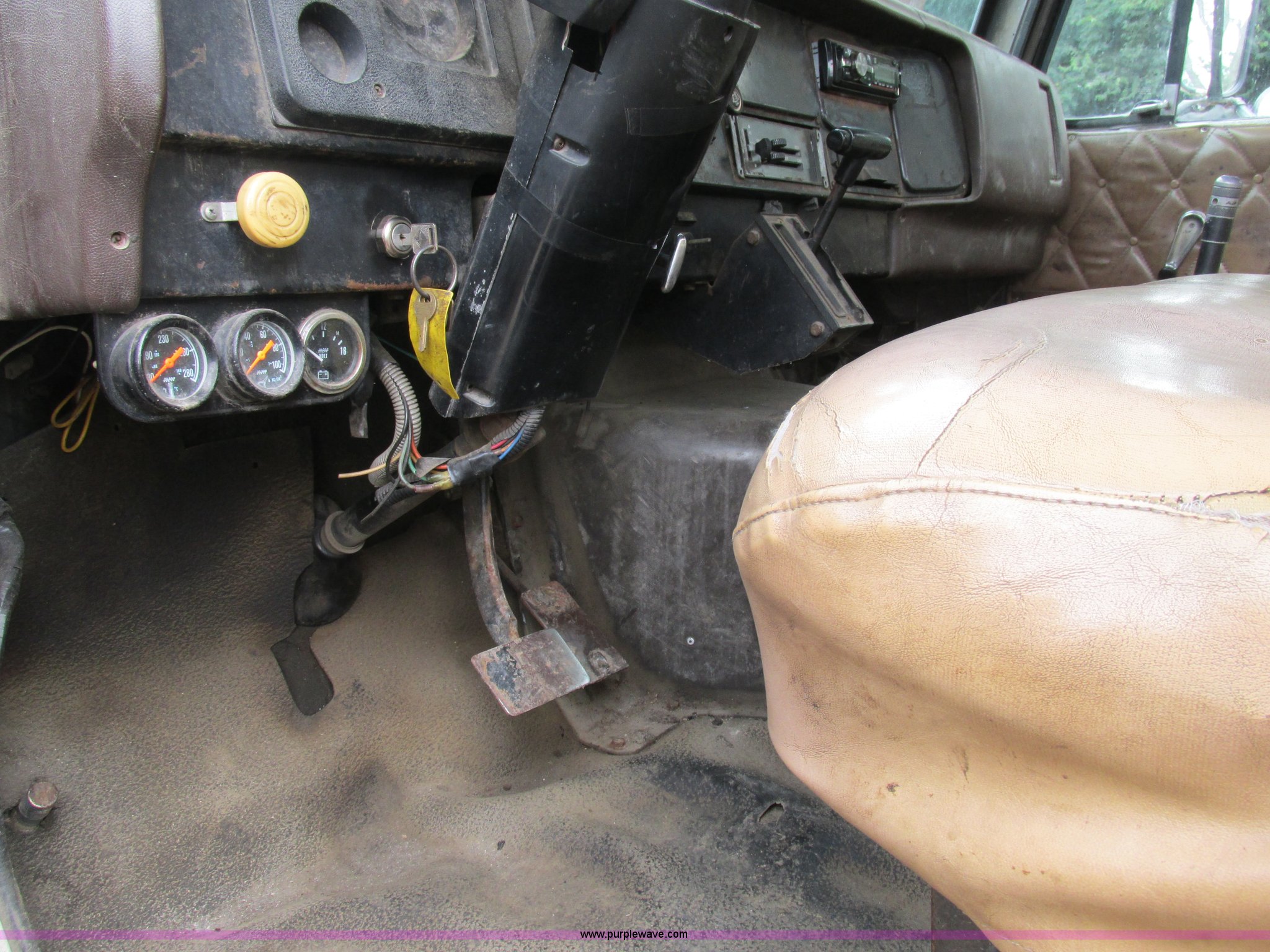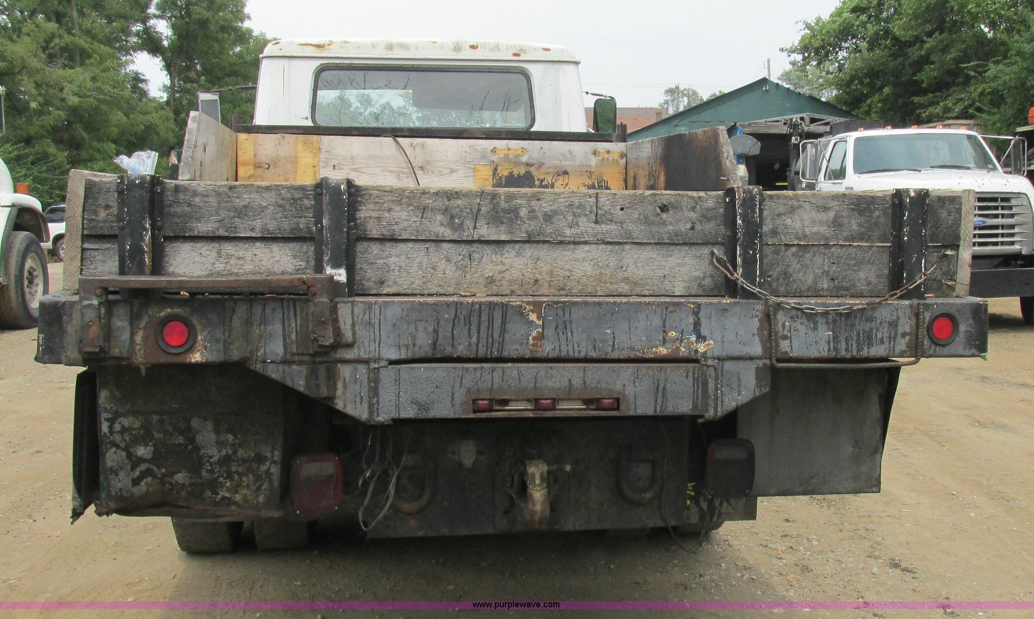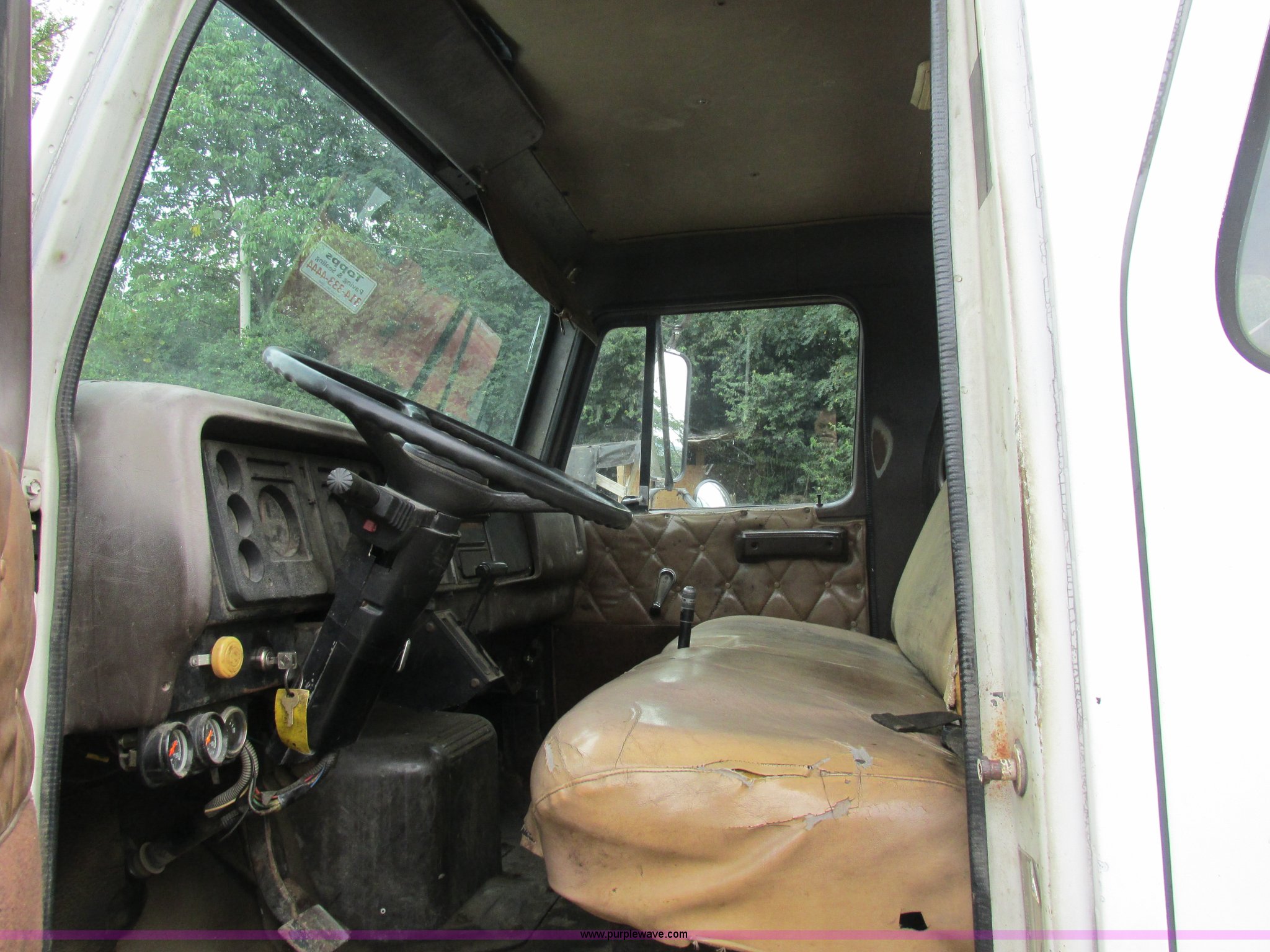 Purple Wave is selling a used Flat Bed Truck in Missouri. This item is a 1989 International 1754 Crew Cab flatbed truck with the following: 106,731 miles on odometer, International DT360 5.9L L6 turbo diesel engine, Allison automatic transmission, Heat, Manual windows, Vinyl interior, 14'L x 93"W flatbed, Toolboxes, Spring suspension, Hydraulic brakes, 11R22.5 tires