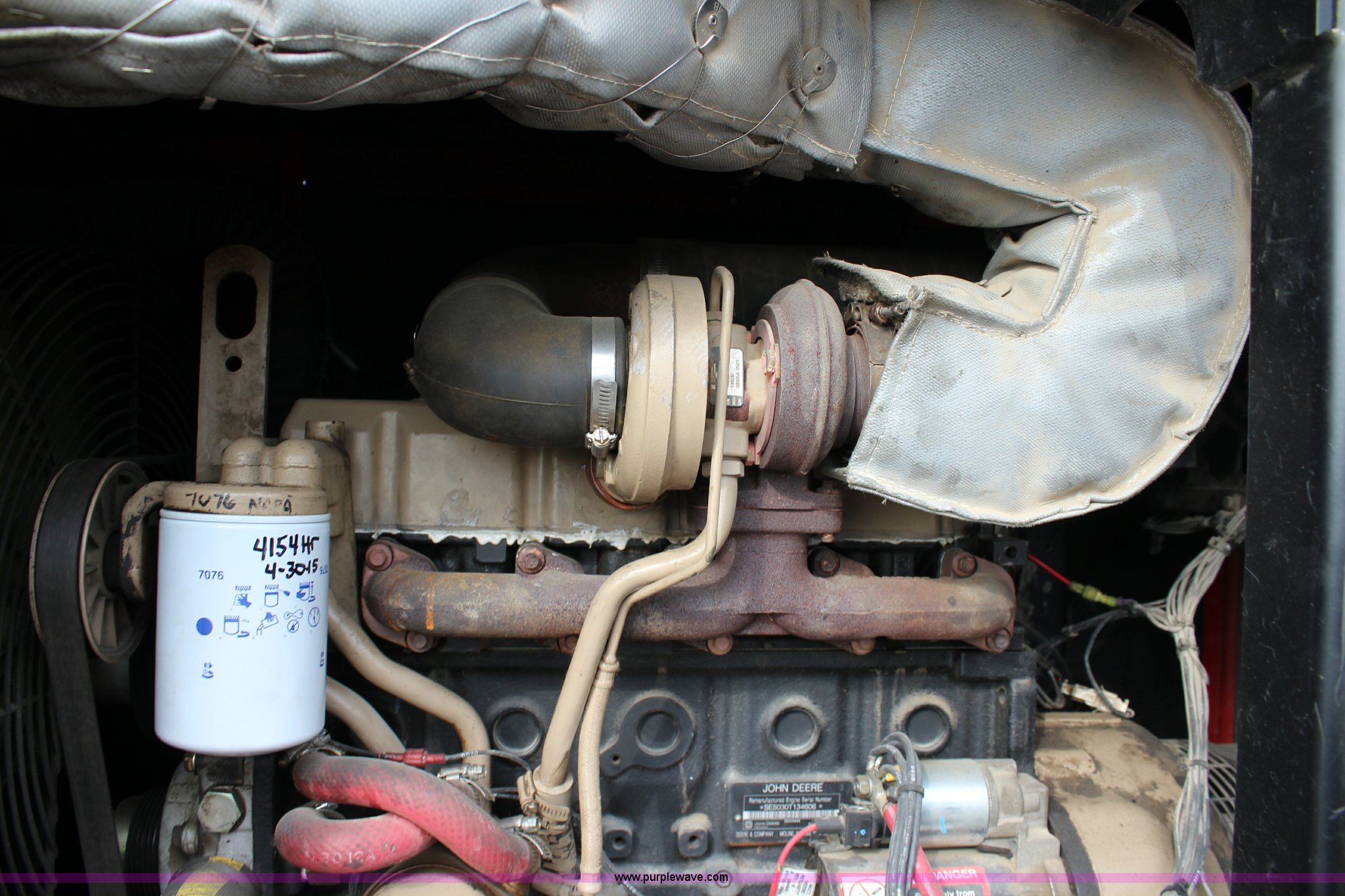 Purple Wave is selling a used Generator Set in Kansas. This item is a Baldor TS45T generator with the following: 4,154 hours on meter, John Deere 5030T four cylinder turbo diesel engine, 60 kW, Serial SE5030T134606, 38 kW, Single and three phase, 2" ball hitch, Surge brakes, 205/75R15 tires