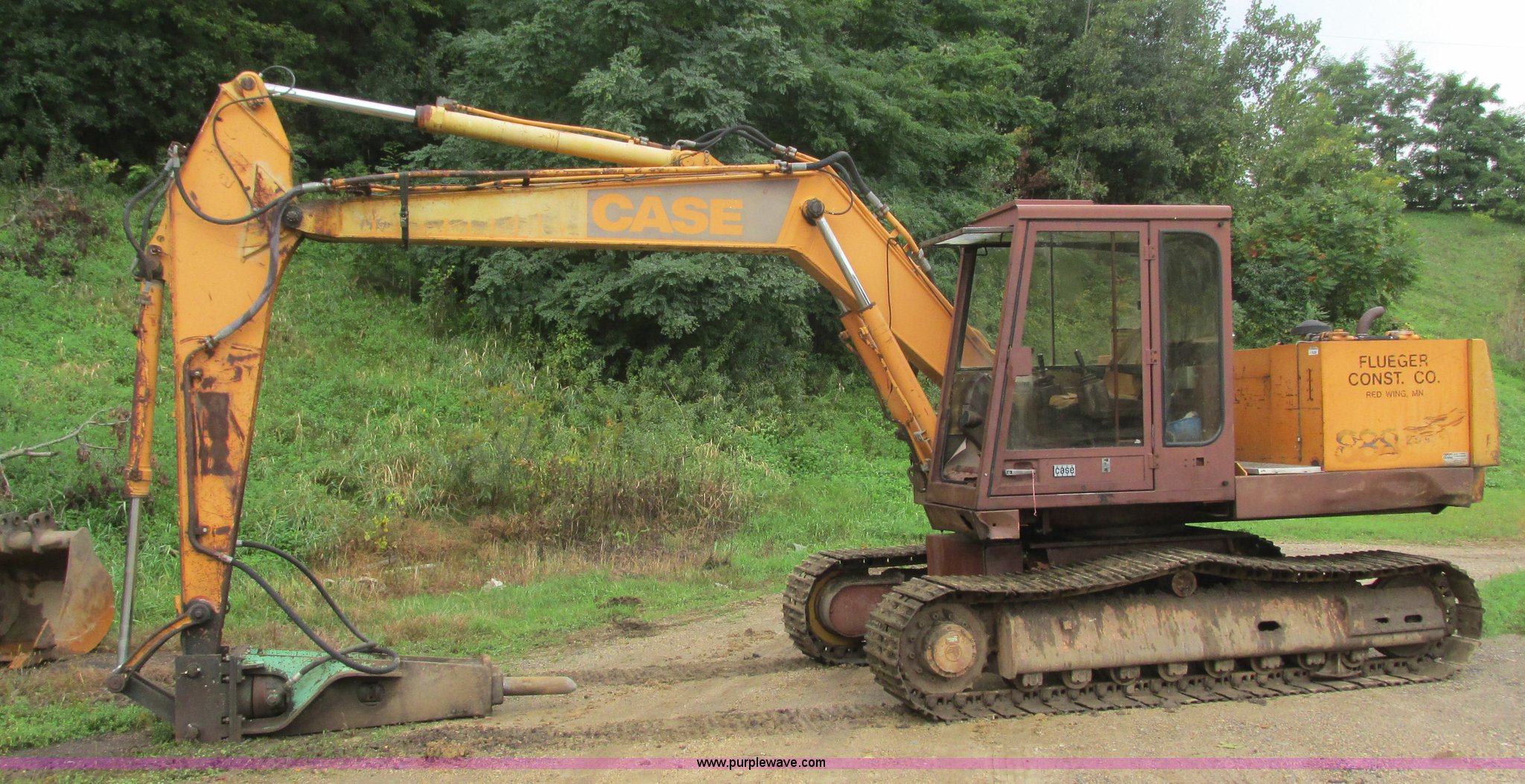 1990 Case 888 excavator. 8,718 hours on meter, Case six cylinder turbo diesel engine, Hydrostatic transmission, Suspension seat, Standard boom, 38"W bucket (4) bolt-on teeth, Side cutters, Tremac 7000 hydraulic breaker 4.5" diameter bit, Two way auxiliary hydraulics, Eight bottom rollers, 24"W steel triple grouser track pads, 35,626 lbs. base operating weight, Front glass broken, Serial CGG0015530. View equipment video. Aslakson Black Topping. 1555 Bench Street. Red Wing, MN 55066