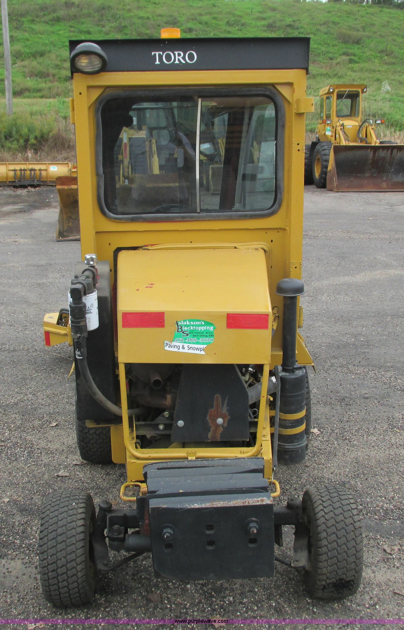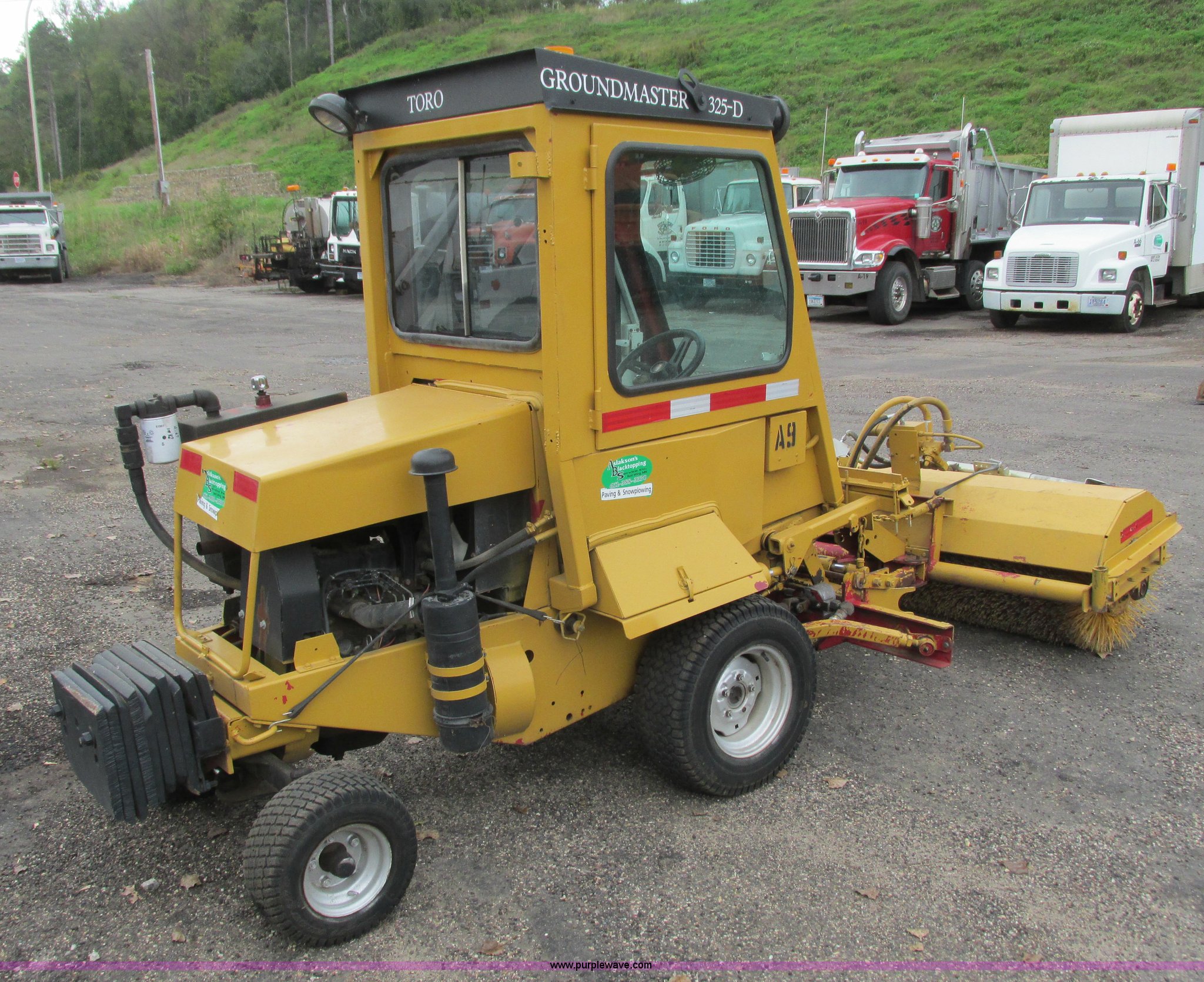 Purple Wave is selling a used Lawn Mower in Minnesota. This item is a Toro Groundsmasters 325-D lawn mower with the following: Kubota three cylinder diesel engine, Hydrostatic transmission, Heated cab, Suspension seat, Work light, 62"W hydraulic driven angle broom, 23 x 8.50-12 front tires, 16 x 6.50-8 rear tires, Serial 30788-40569