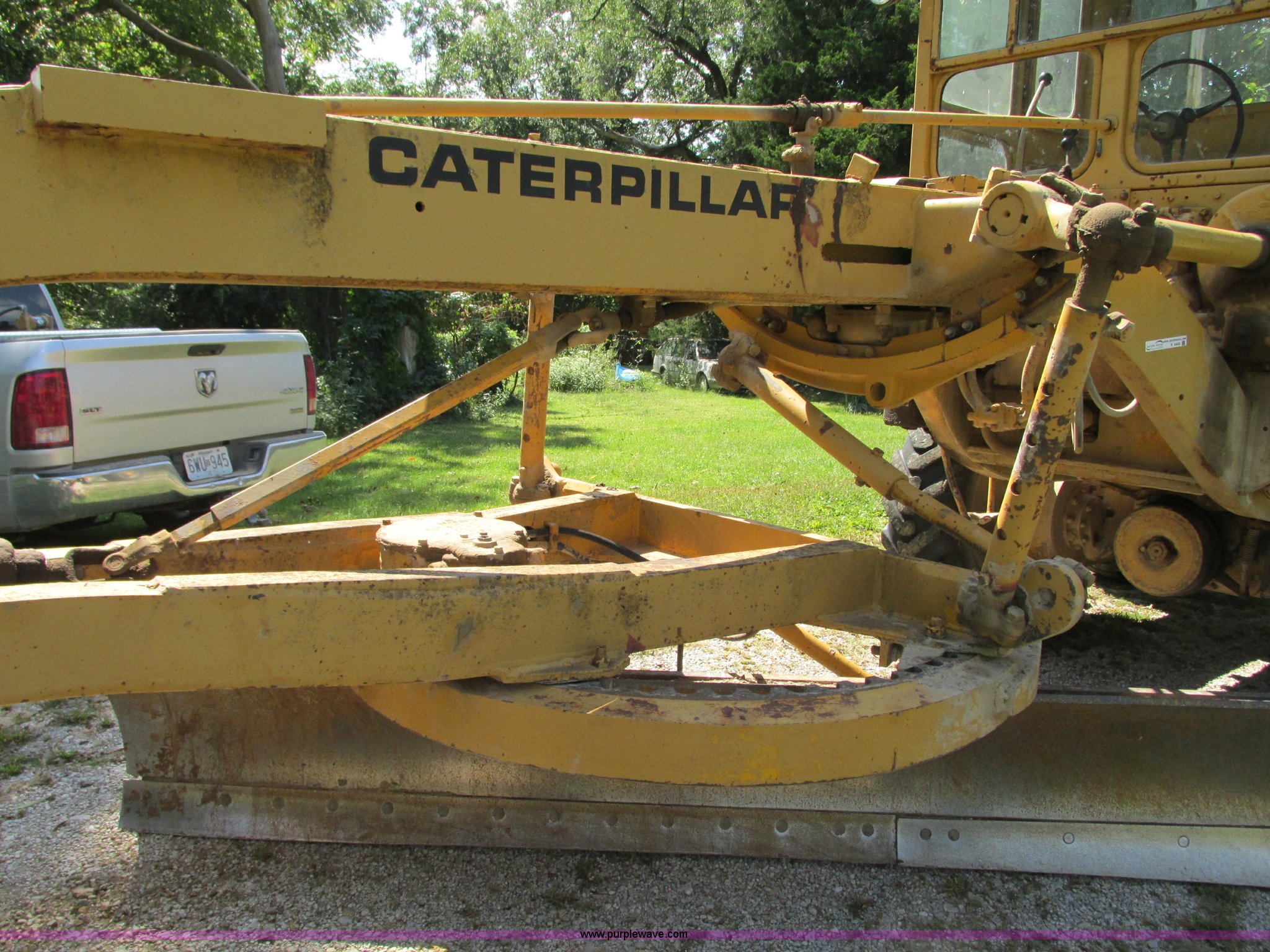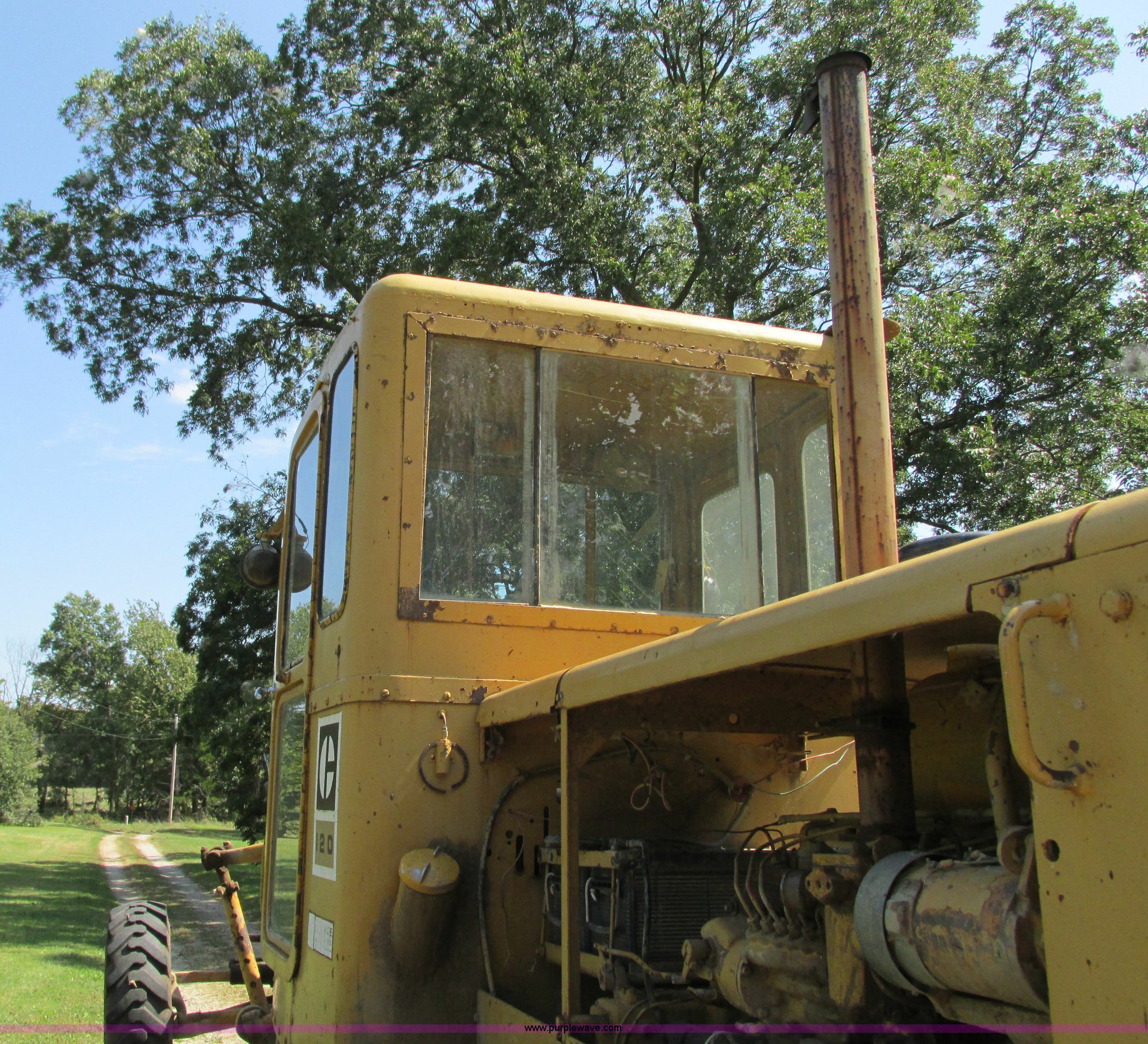 Purple Wave is selling a used Motor Grader in Missouri. This item is a 1966 Caterpillar 120 ridgid frame motor grader with the following: Caterpillar six cylinder diesel engine, 10F-2R gears, Enclosed cab, Heat, Front work lights, 14' moldboard, Left blade extension, Side shift, 14.00-24 tires, 26,355 lbs. base operating weight, Batteries replaced 2014, Serial 89G1113