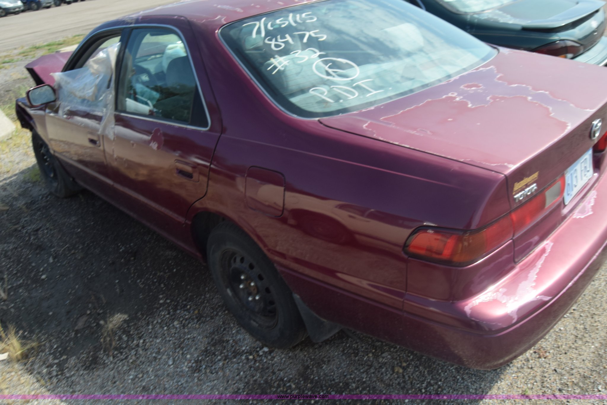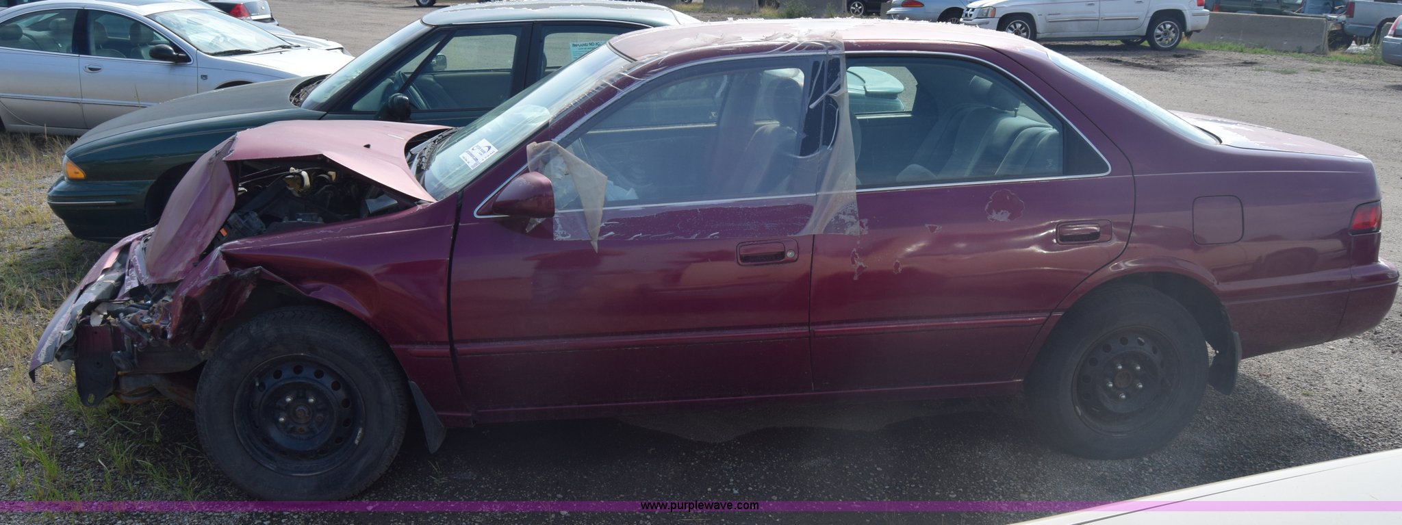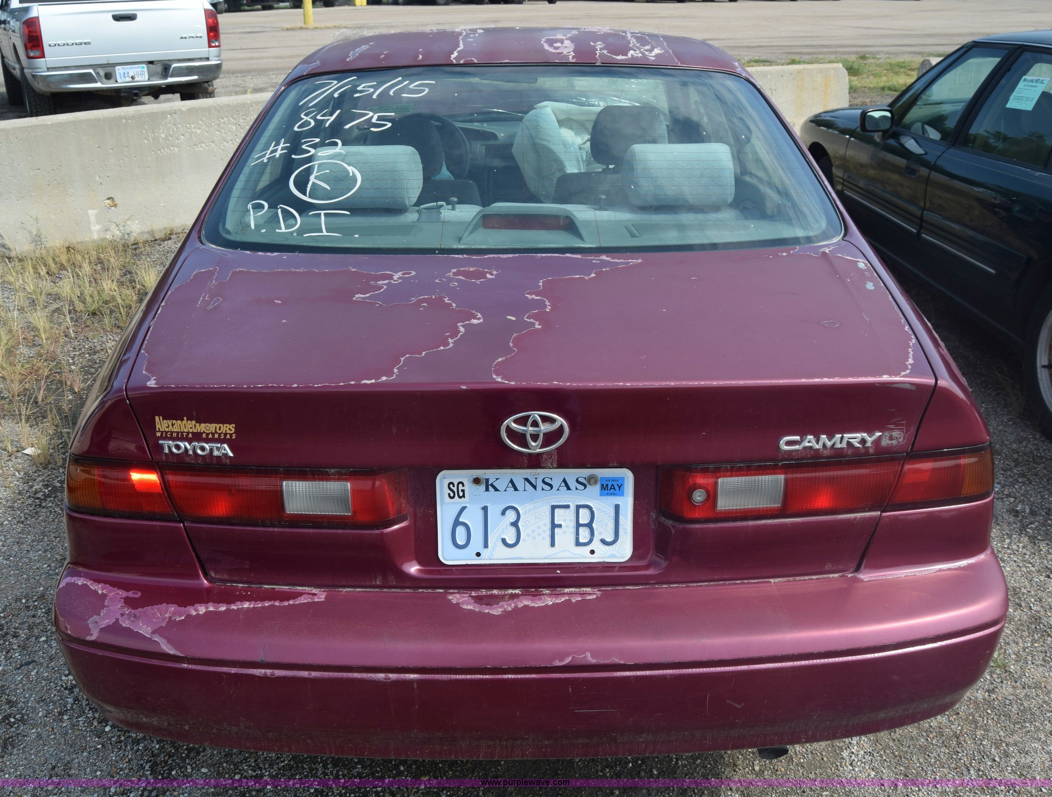Purple Wave is selling a used Passenger Vehicle in Kansas. This item is a 1997 Toyota Camry with the following: Unknown miles on odometer, 2.2L L4 DOHC 16V gas engine, Automatic transmission, AC and heat, Tilt, Cruise, AM/FM/CD, Power windows, locks, and mirrors, Cloth interior, Keys, 195/70R14 tires, Interior/exterior cosmetic damage, Dents, Scratches, Major front end damage, Paint peeling, Air bags deployed, Cracked windshield, Case# 15C22793