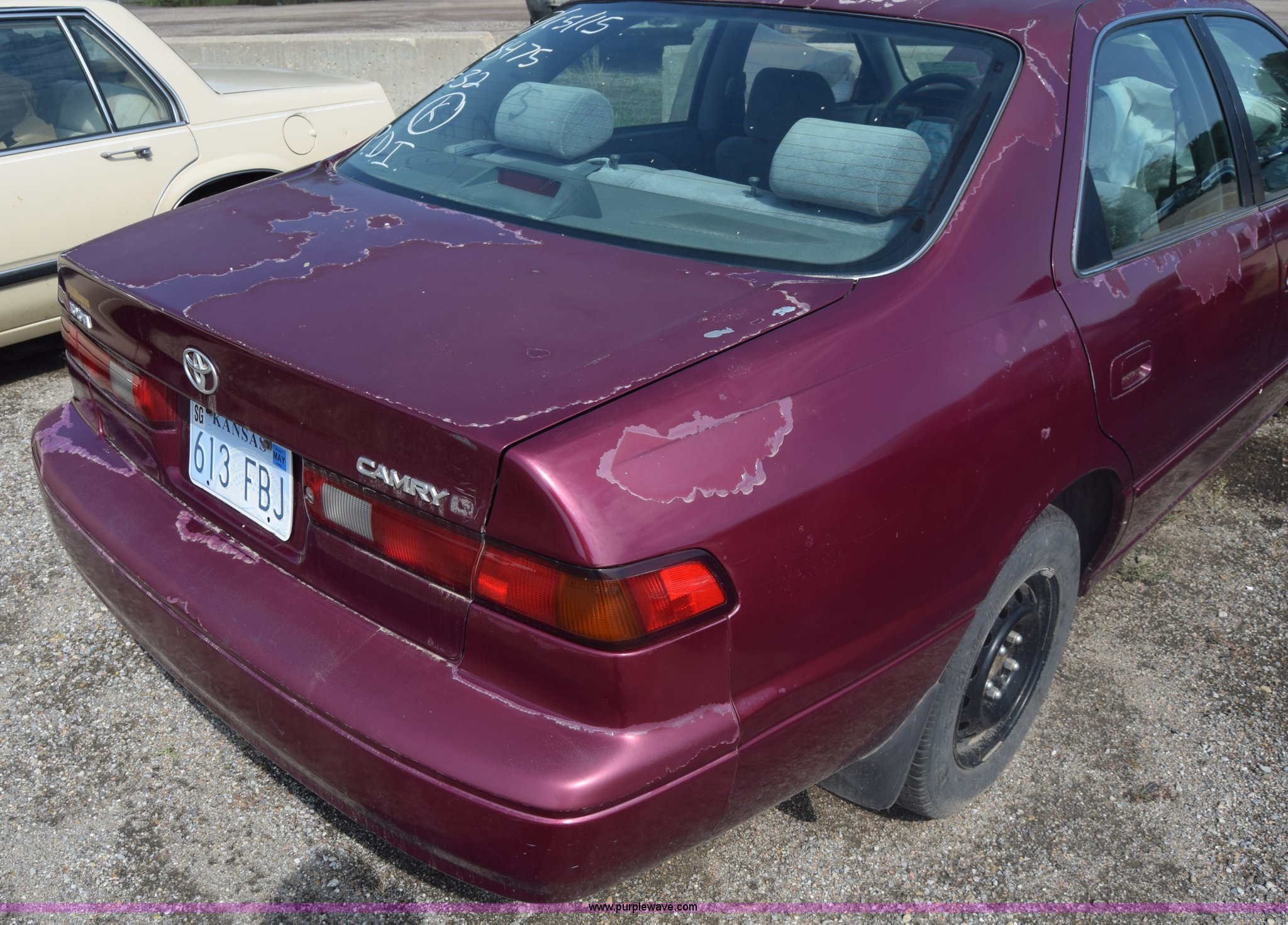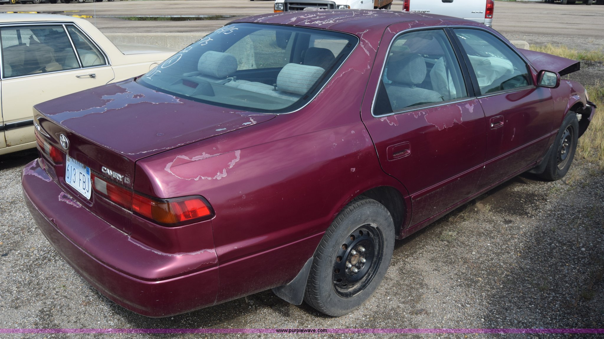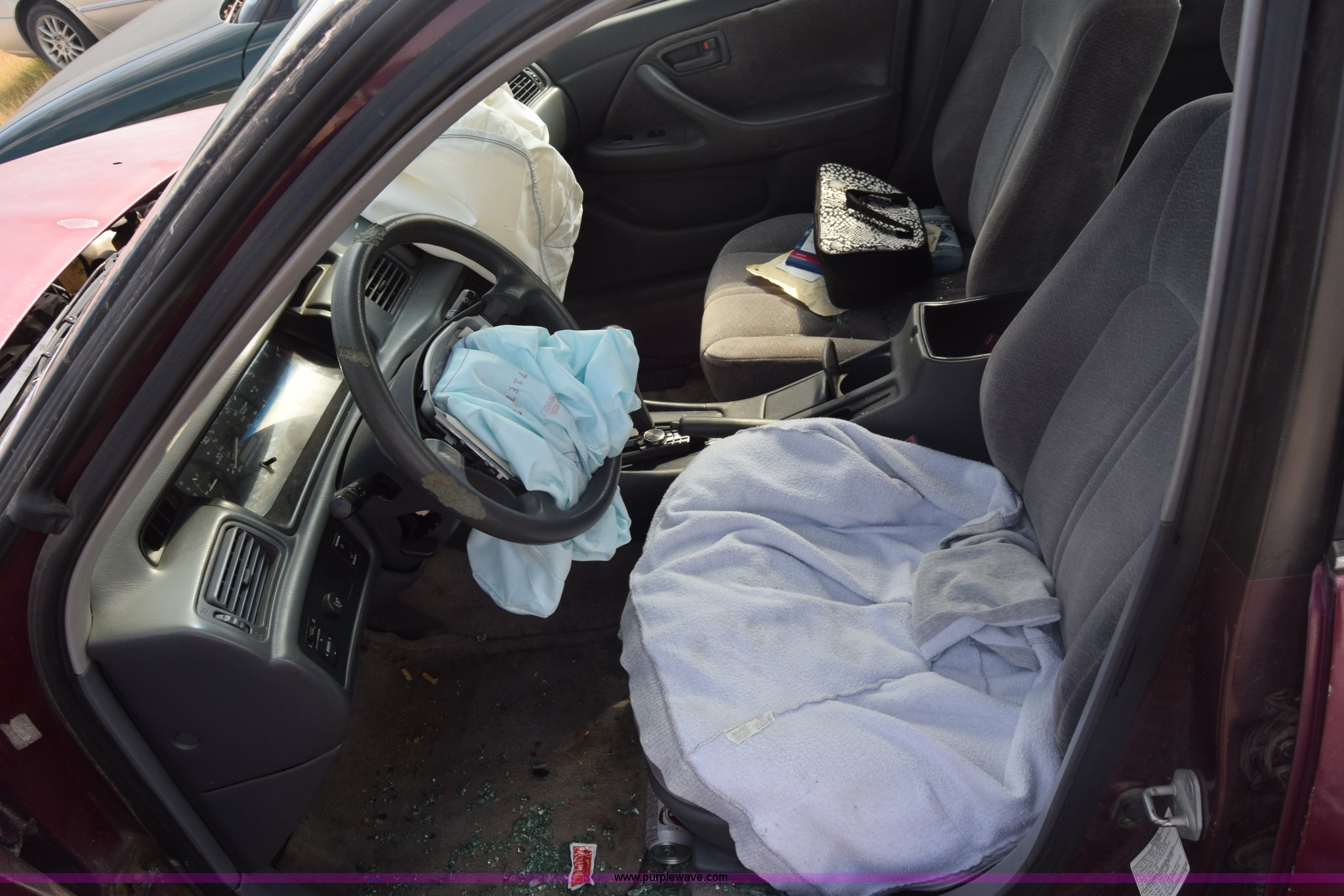 Purple Wave is selling a used Passenger Vehicle in Kansas. This item is a 1997 Toyota Camry with the following: Unknown miles on odometer, 2.2L L4 DOHC 16V gas engine, Automatic transmission, AC and heat, Tilt, Cruise, AM/FM/CD, Power windows, locks, and mirrors, Cloth interior, Keys, 195/70R14 tires, Interior/exterior cosmetic damage, Dents, Scratches, Major front end damage, Paint peeling, Air bags deployed, Cracked windshield, Case# 15C22793
