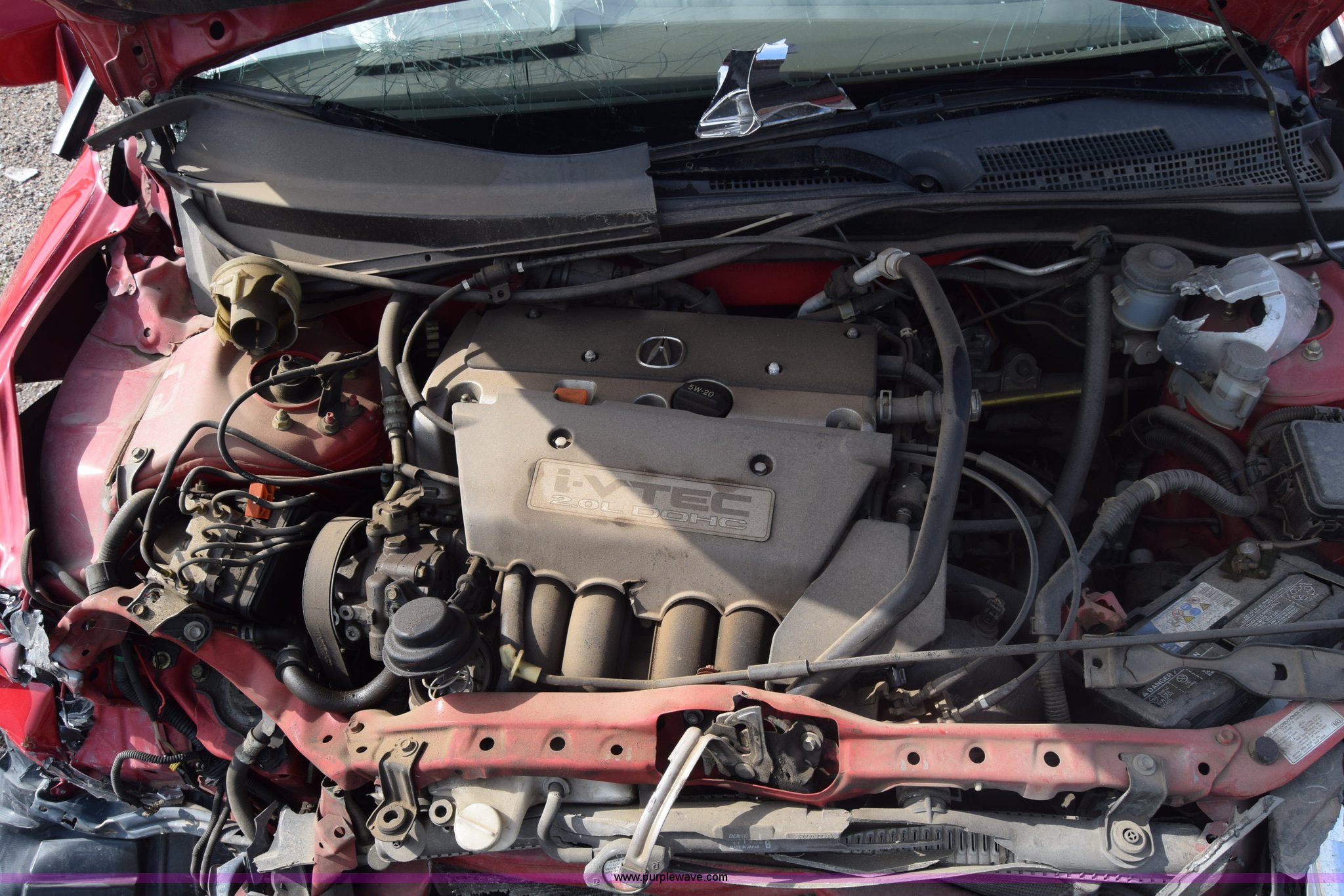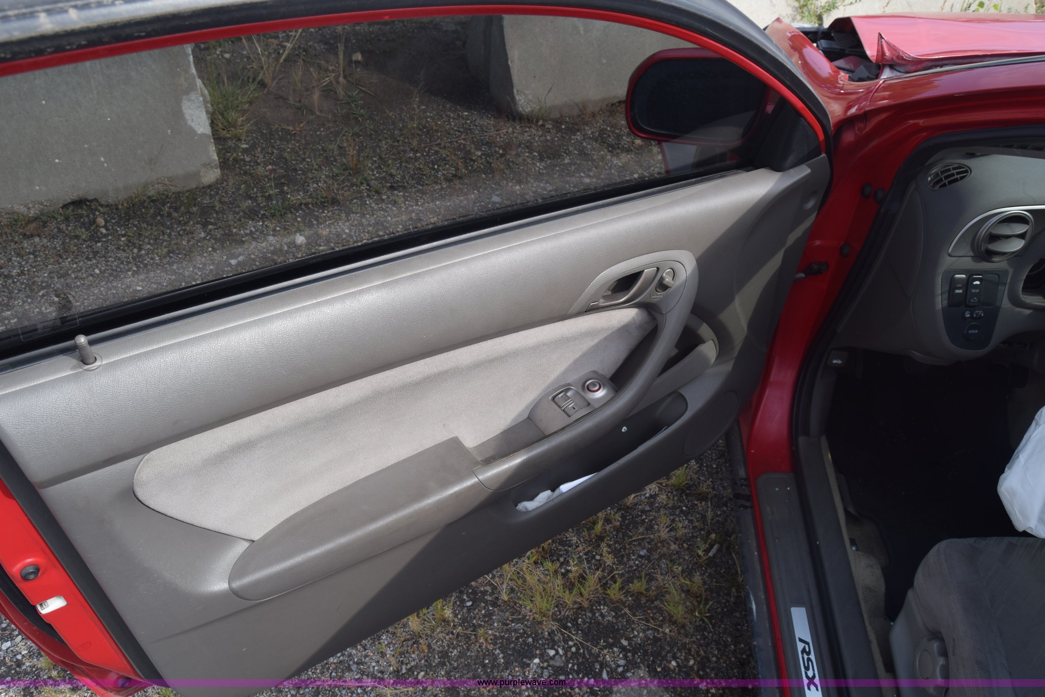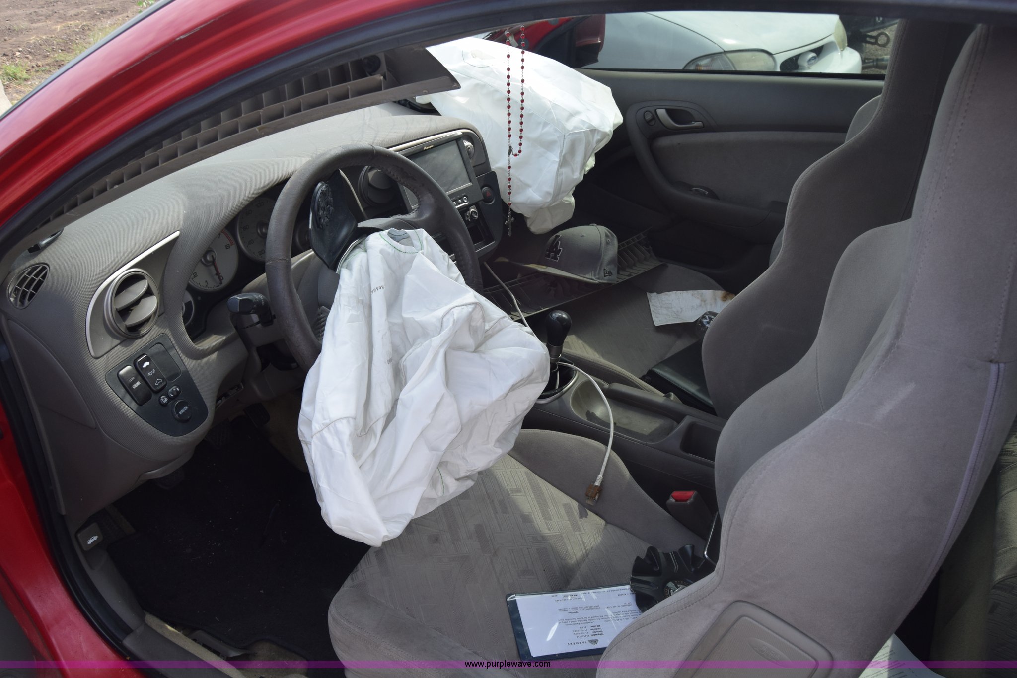 Purple Wave is selling a used Passenger Vehicle in Kansas. This item is a 2004 Acura RSX with the following: Unknown miles on odometer, 2.0L L4 DOHC 16V gas engine, Five speed manual transmission, AC and heat, Tilt, Cruise, AM/FM/CD, Power windows, locks, and mirrors, Cloth interior, Power sunroof, 225/30ZR20 tires, Interior/exterior cosmetic damage, Dents, Scratches, Major front end damage, Cracked windshield, Air bags deployed, Case# 12C044064