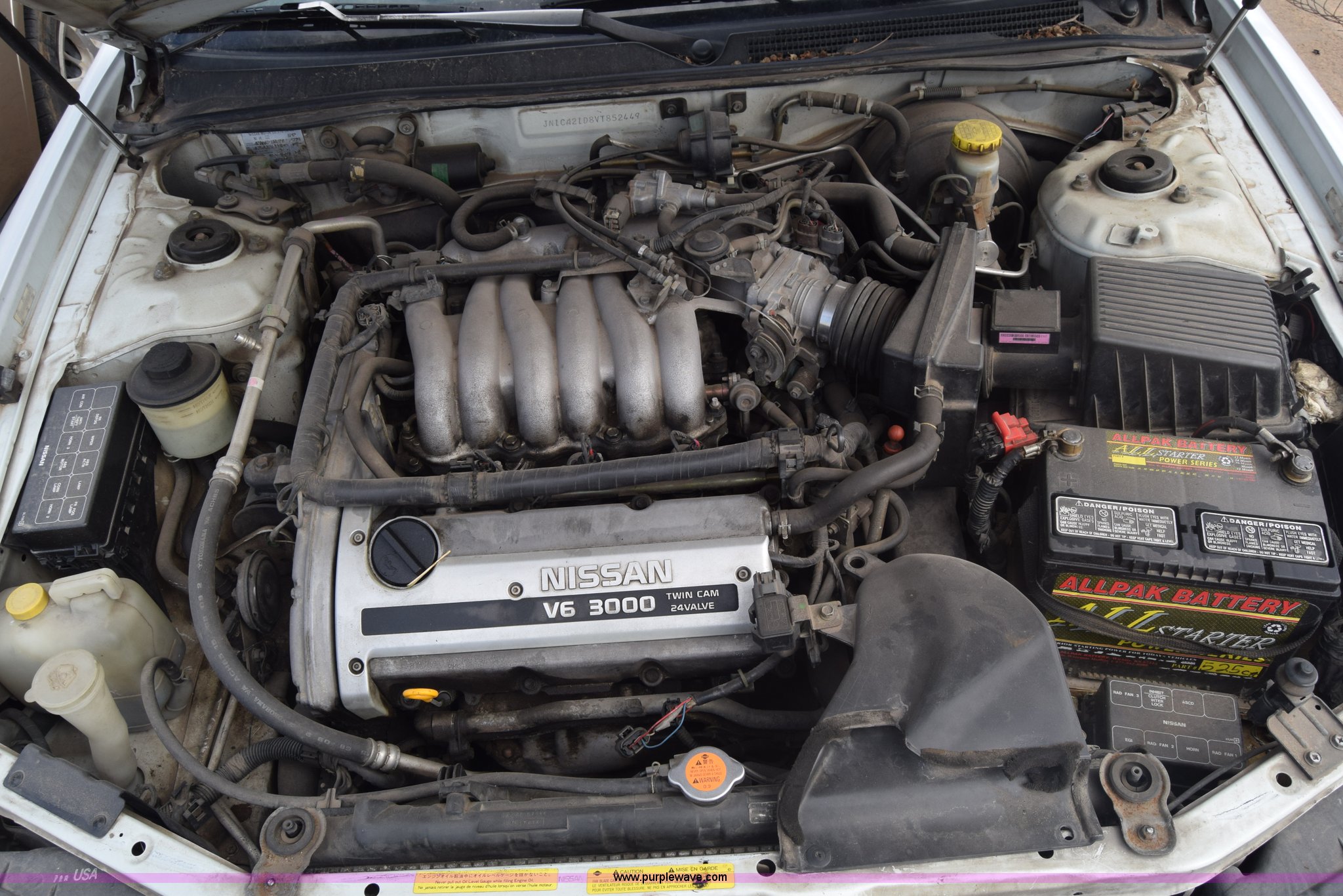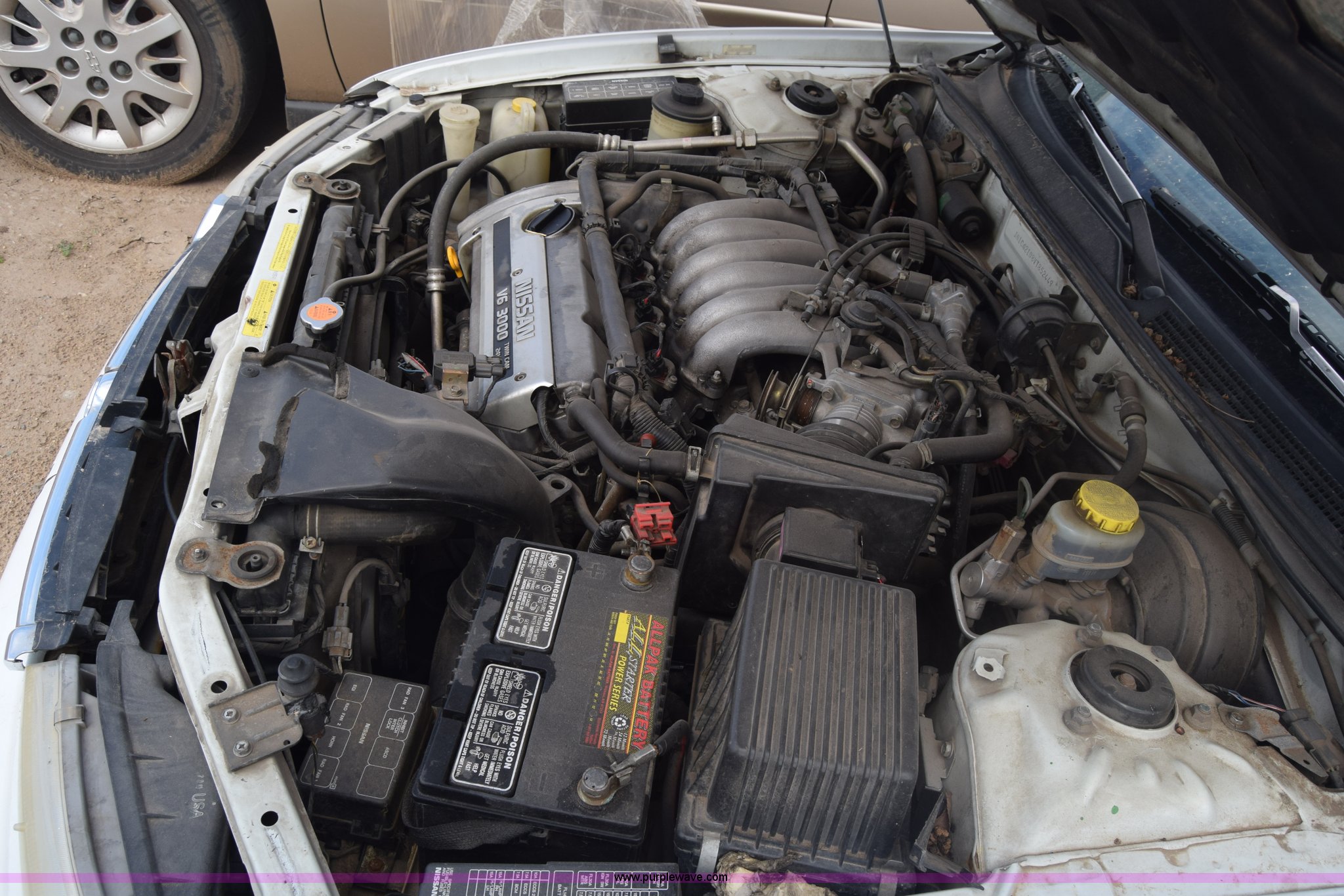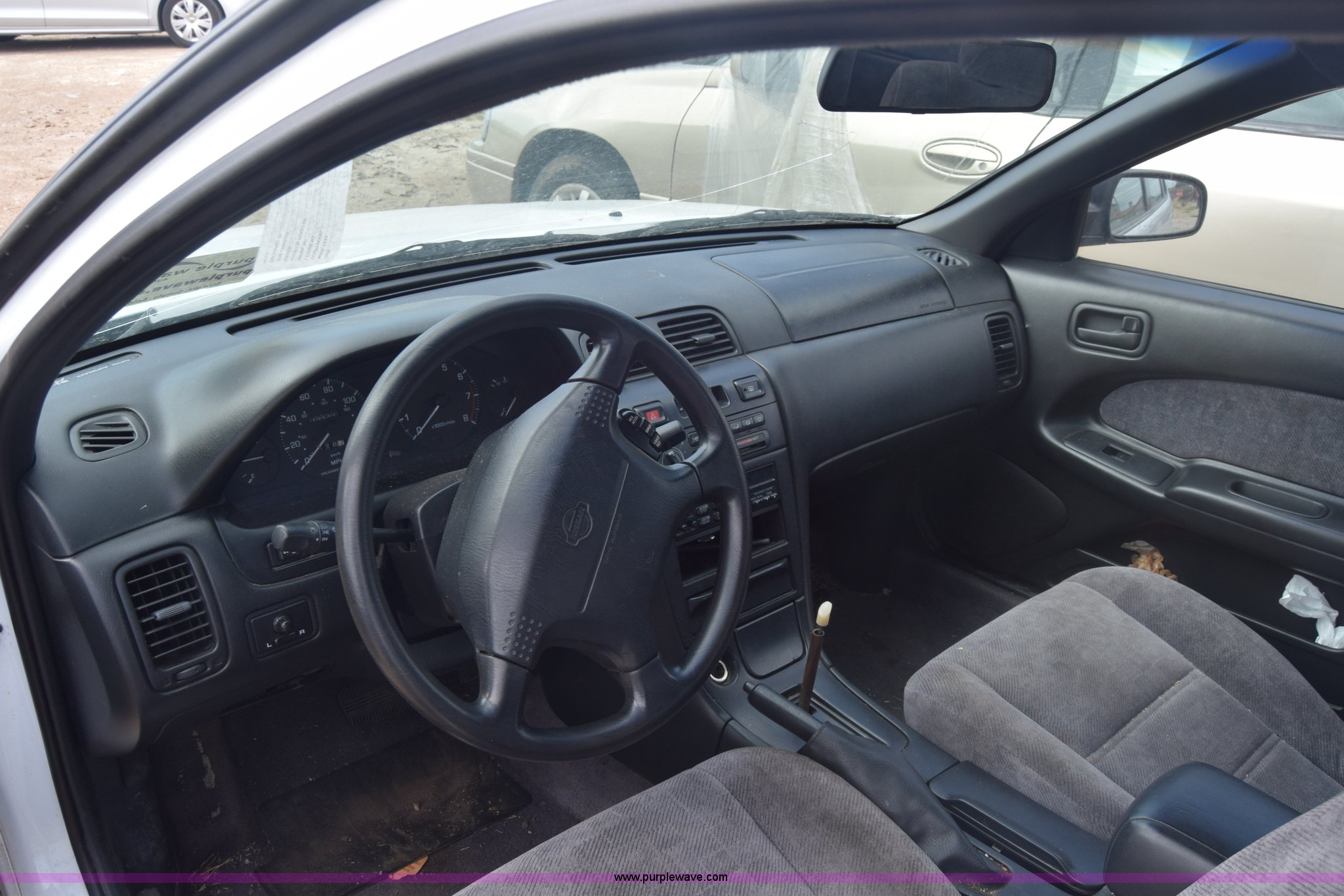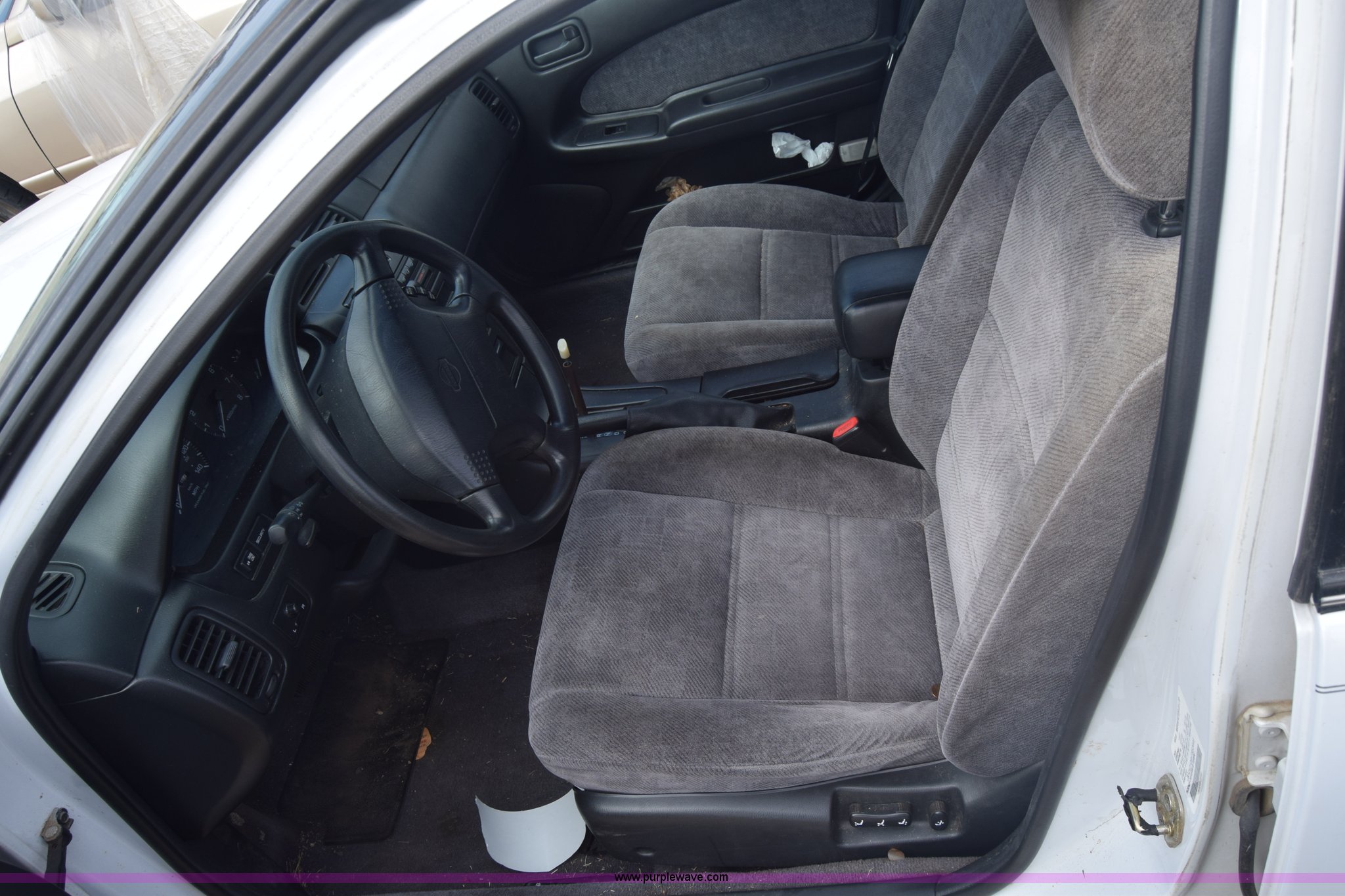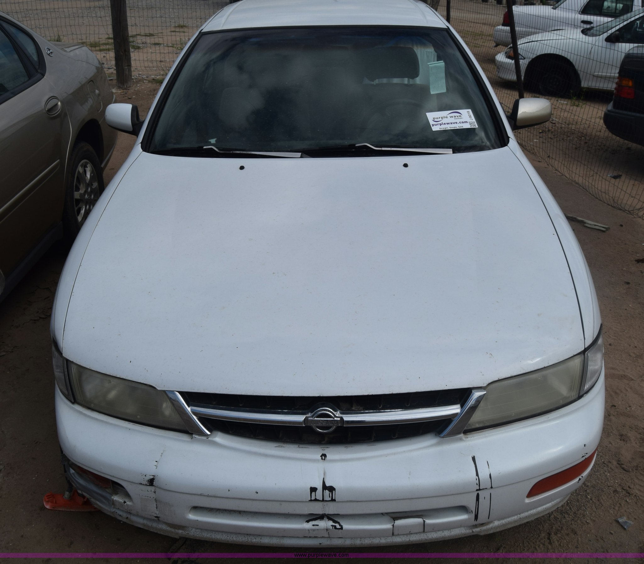 Purple Wave is selling a used Passenger Vehicle in Kansas. This item is a 1997 Nissan Maxima with the following: 192,045 miles on odometer, 3.0L V6 DOHC 24V gas engine, Automatic transmission, AC and heat, Tilt, Cruise, AM/FM/cassette, Power windows, locks, and seat, Cloth interior, Keys, 195/65R15 tires, Interior/exterior cosmetic damage, Dents, Scratches, Front bumper damage, Cracked windshield, One tire off wheel, Case# 15C045047