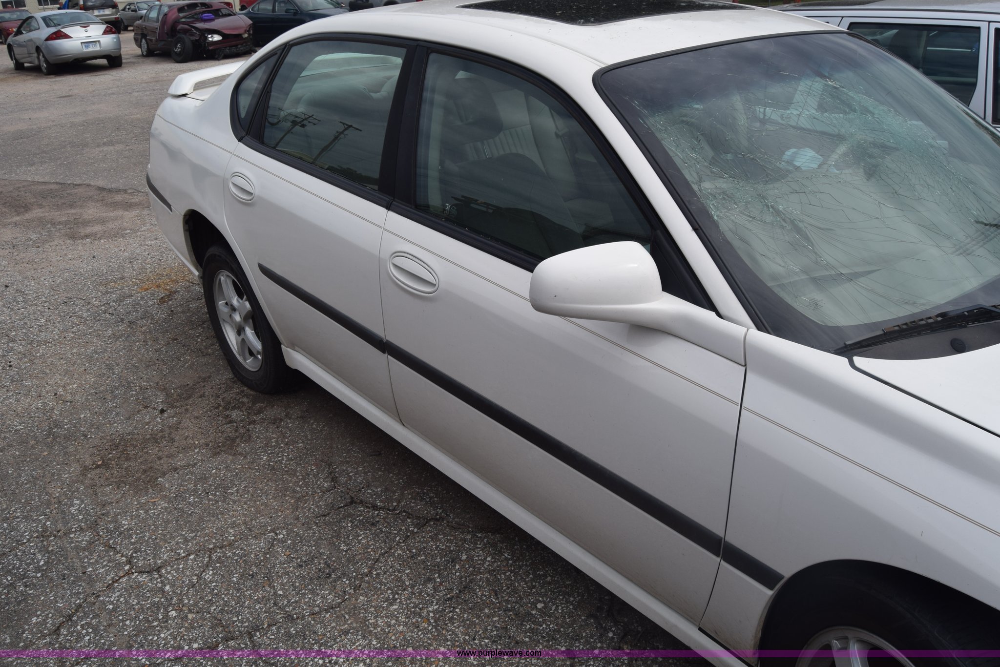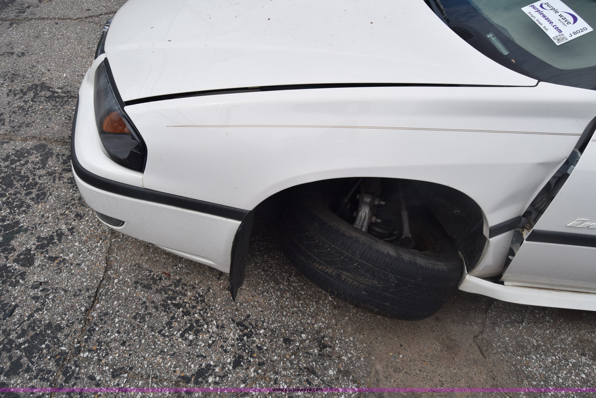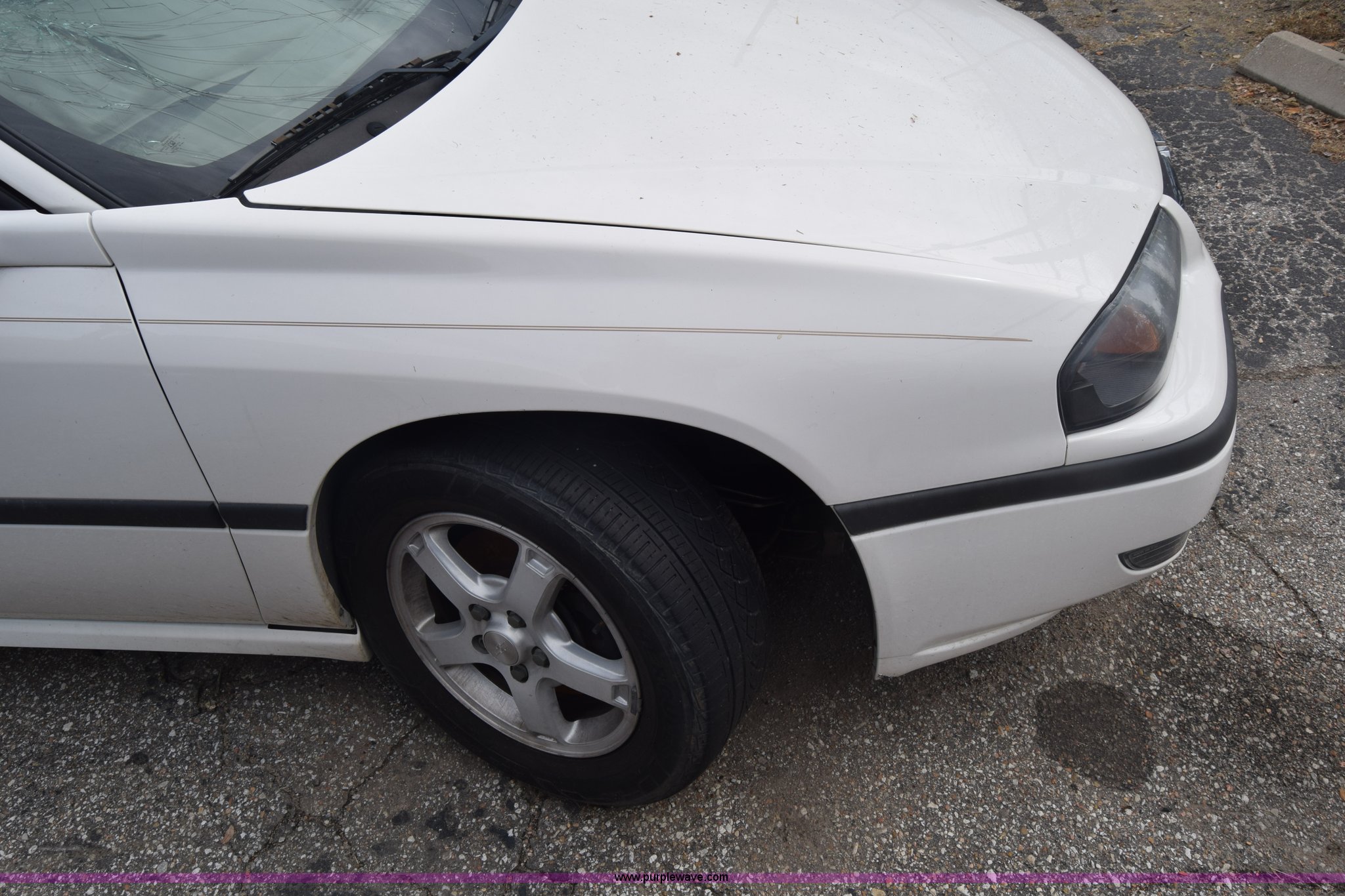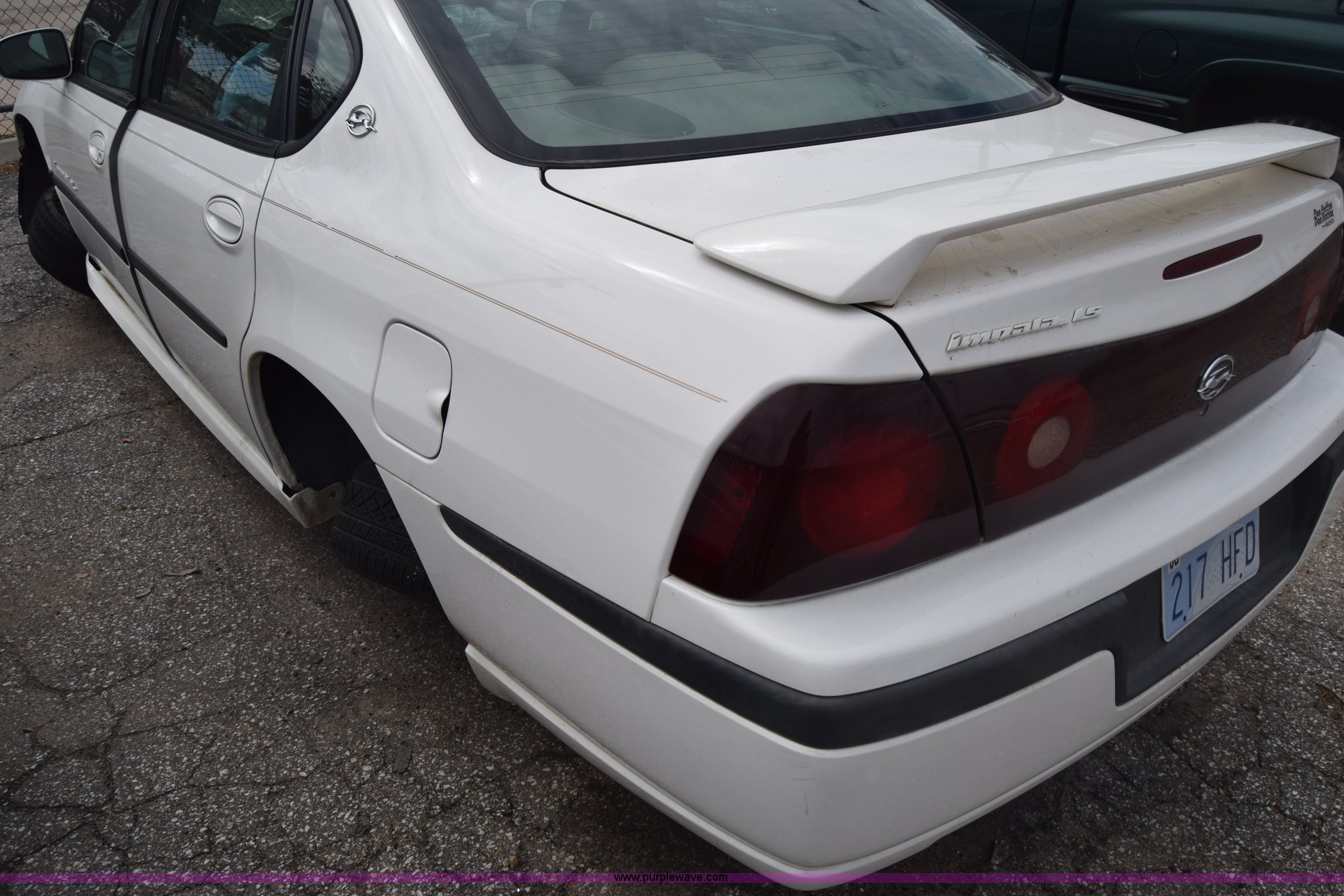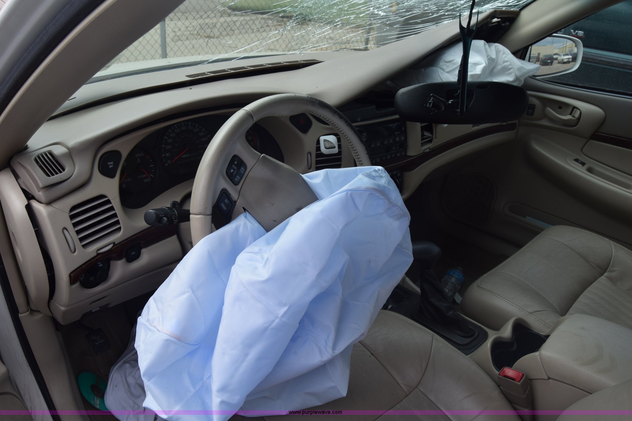 Purple Wave is selling a used Passenger Vehicle in Kansas. This item is a 2003 Chevrolet Impala LS with the following: Unknown miles on odometer, 3.8L V6 OHV 12V gas engine, Automatic transmission, AC and heat, Tilt, Cruise, AM/FM/CD/cassette, Power windows, locks, mirrors, and seats, Vinyl interior, Keys, 225/60R16 tires, Interior/exterior cosmetic damage, Dents and scratches, Battery dead, Windshield broken, Air bags deployed, Driver's side wheel damaged, Case# 15C045887