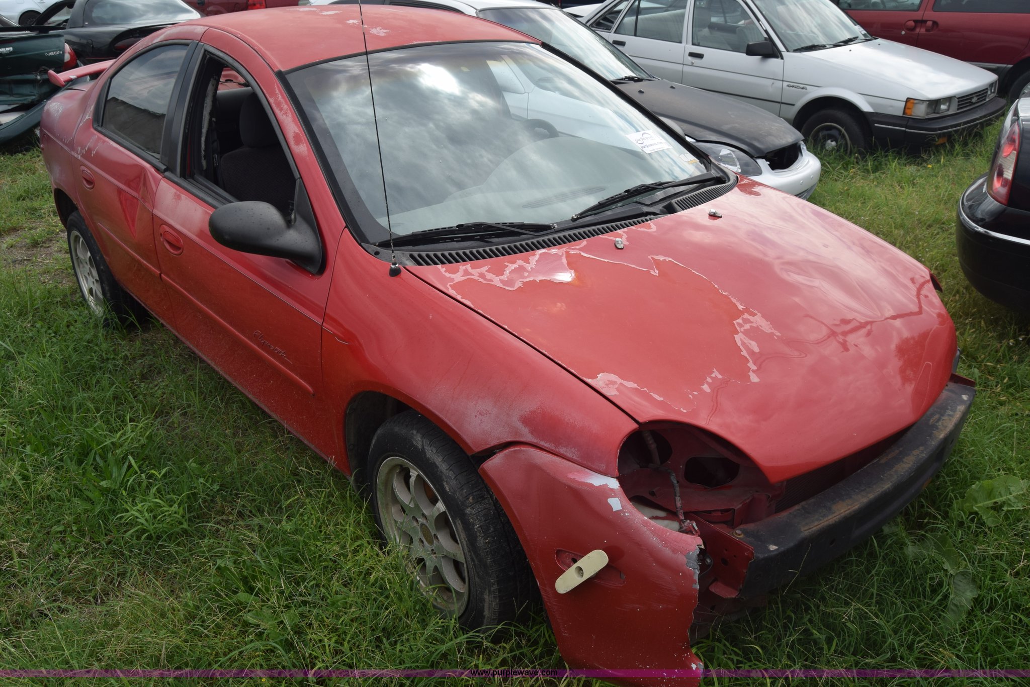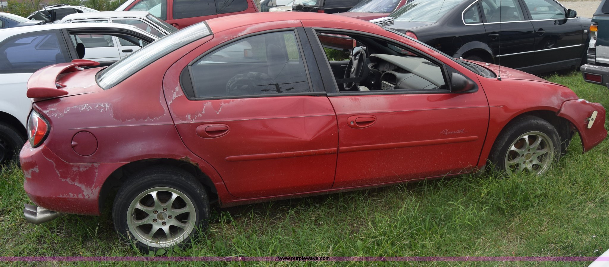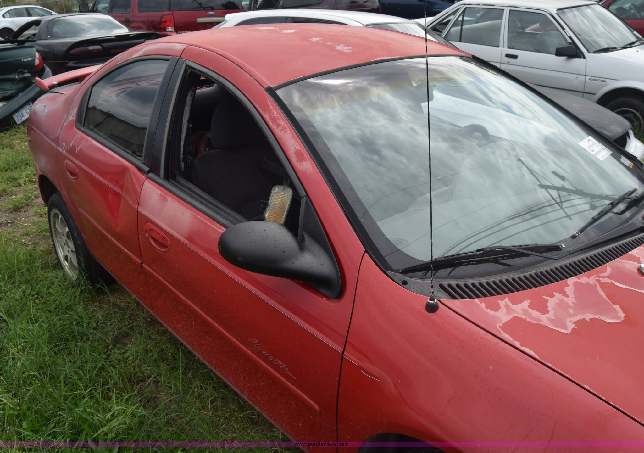 Purple Wave is selling a used Passenger Vehicle in Kansas. This item is a 2000 Plymouth Neon with the following: Unknown miles on odometer, 2.0L L4 SOHC 16V gas engine, Automatic transmission, Manual windows and locks, Cloth interior, 185/60R15 tires, Interior/exterior cosmetic damage, Dents, Paint scratched and peeling, Front end damaged, No radio, AC and heat controls missing, Case# 15C41159
