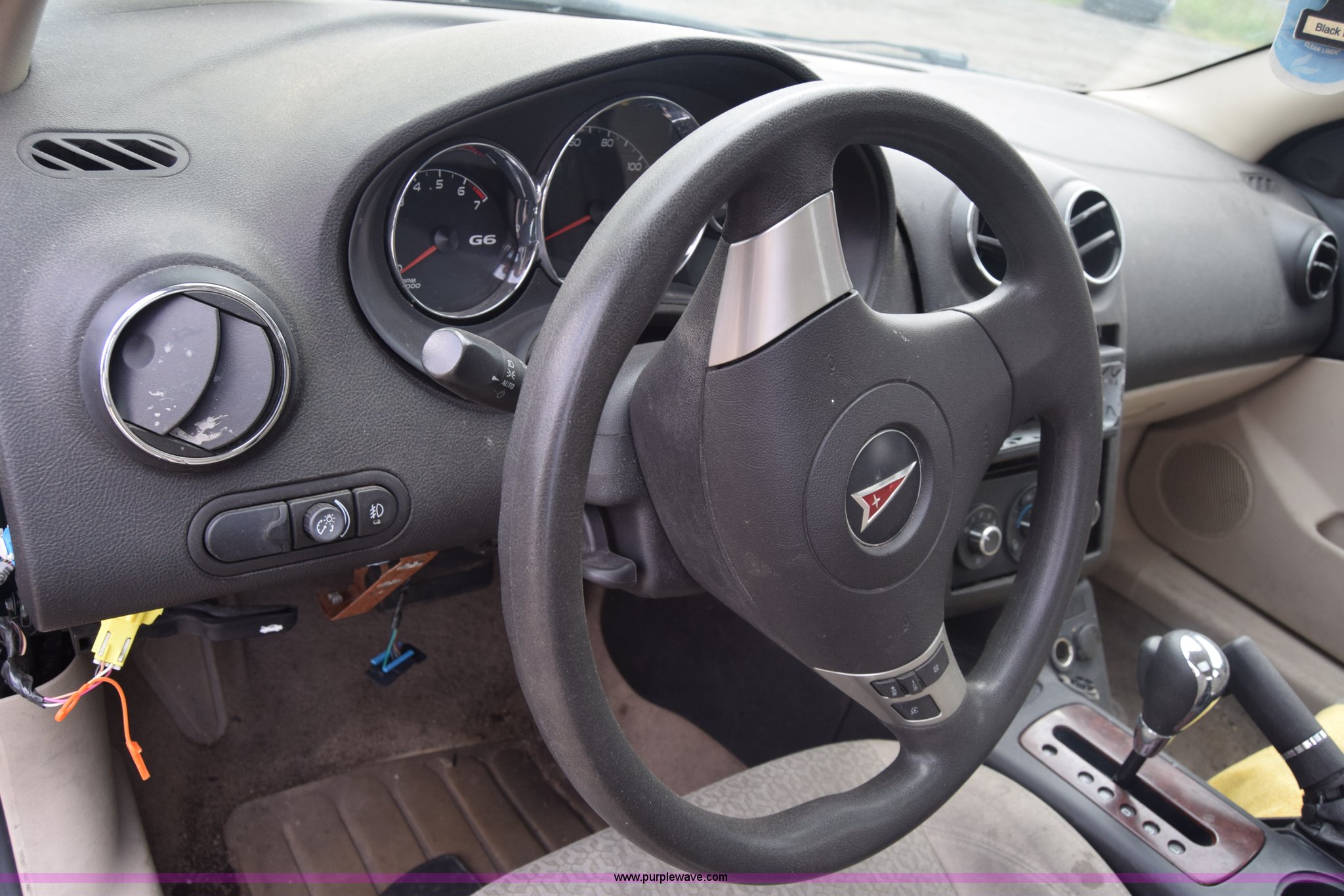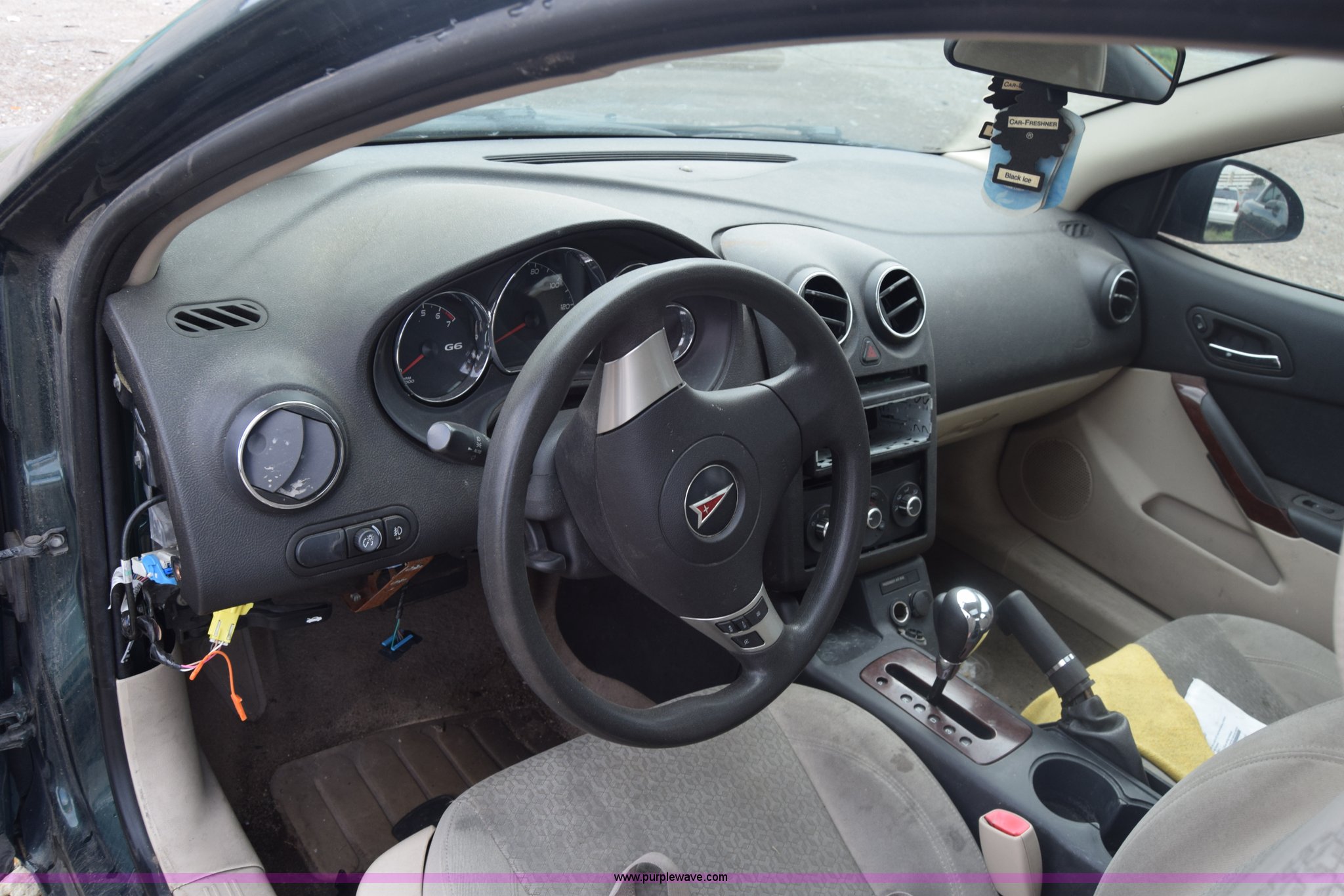Purple Wave is selling a used Passenger Vehicle in Kansas. This item is a 2007 Pontiac G6 with the following: Unknown miles on odometer, 3.5L V6 OHV 12V gas engine, Automatic transmission, AC and heat, Tilt, Power windows and locks, Cloth interior, 225/50R17 tires, Interior/exterior cosmetic damage, Dents, Paint scratched, No radio, Hail damage, Rear seat damage, Paint peeling, Mounted spare tire, Case# 15C39103