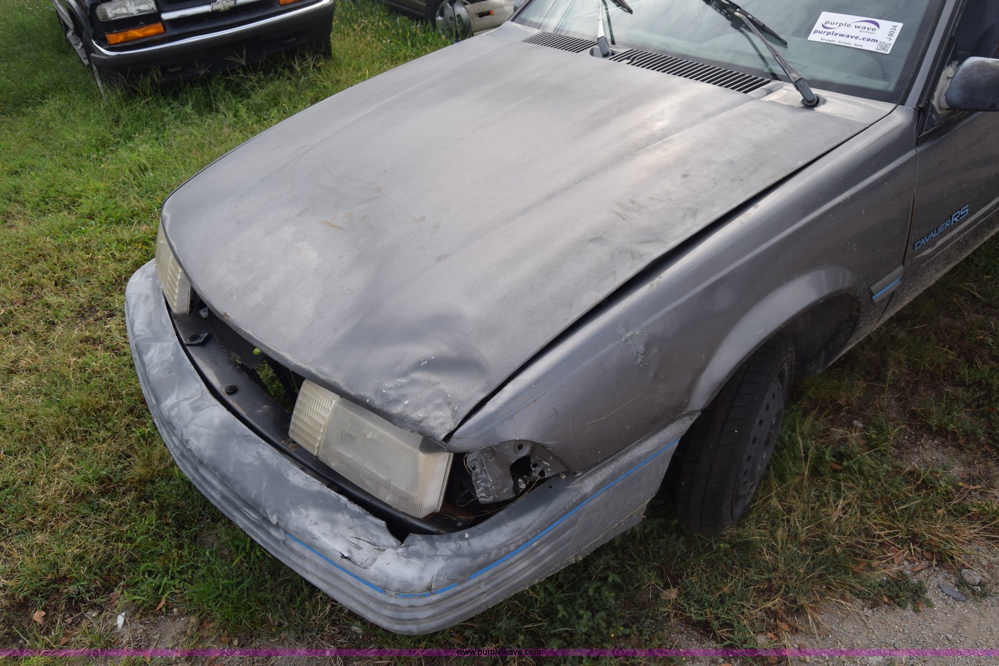 Purple Wave is selling a used Passenger Vehicle in Kansas. This item is a 1991 Chevrolet Cavalier with the following: 255,993 miles on odometer, 2.2L L4 OHV 8V gas engine, Automatic transmission, AC and heat, Tilt, Cruise, AM/FM/cassette, Manual windows and locks, Cloth interior, Keys, 185/75R14 tires, Interior/exterior cosmetic damage, Dents, Paint faded and scratched, Hood will not open, Trim missing, Hood release broken, Grill damaged, Seat torn, Rust, Case# 15C509927