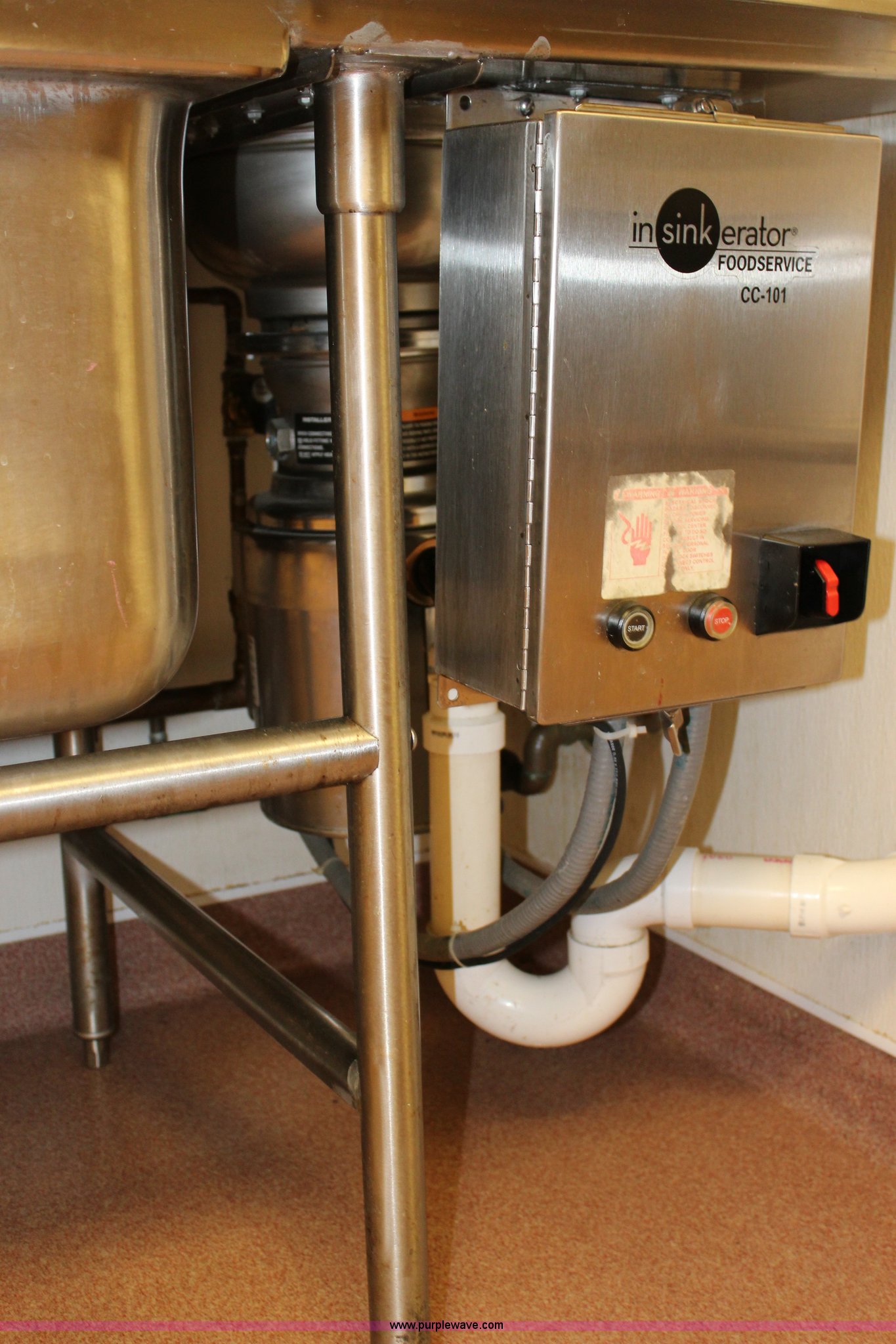 Purple Wave is selling a used Other Industrial or Business in Kansas. This item is a Stainless steel sink with the following: Three compartment, Garbage disposal, 114"L x 35"D x 44.5"H