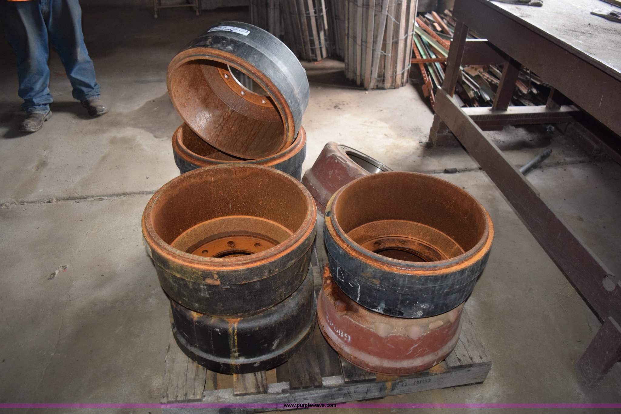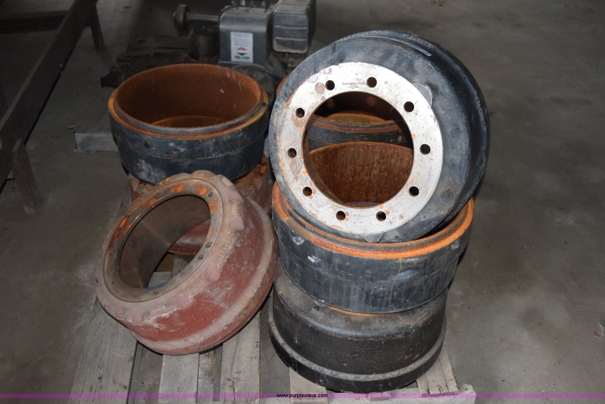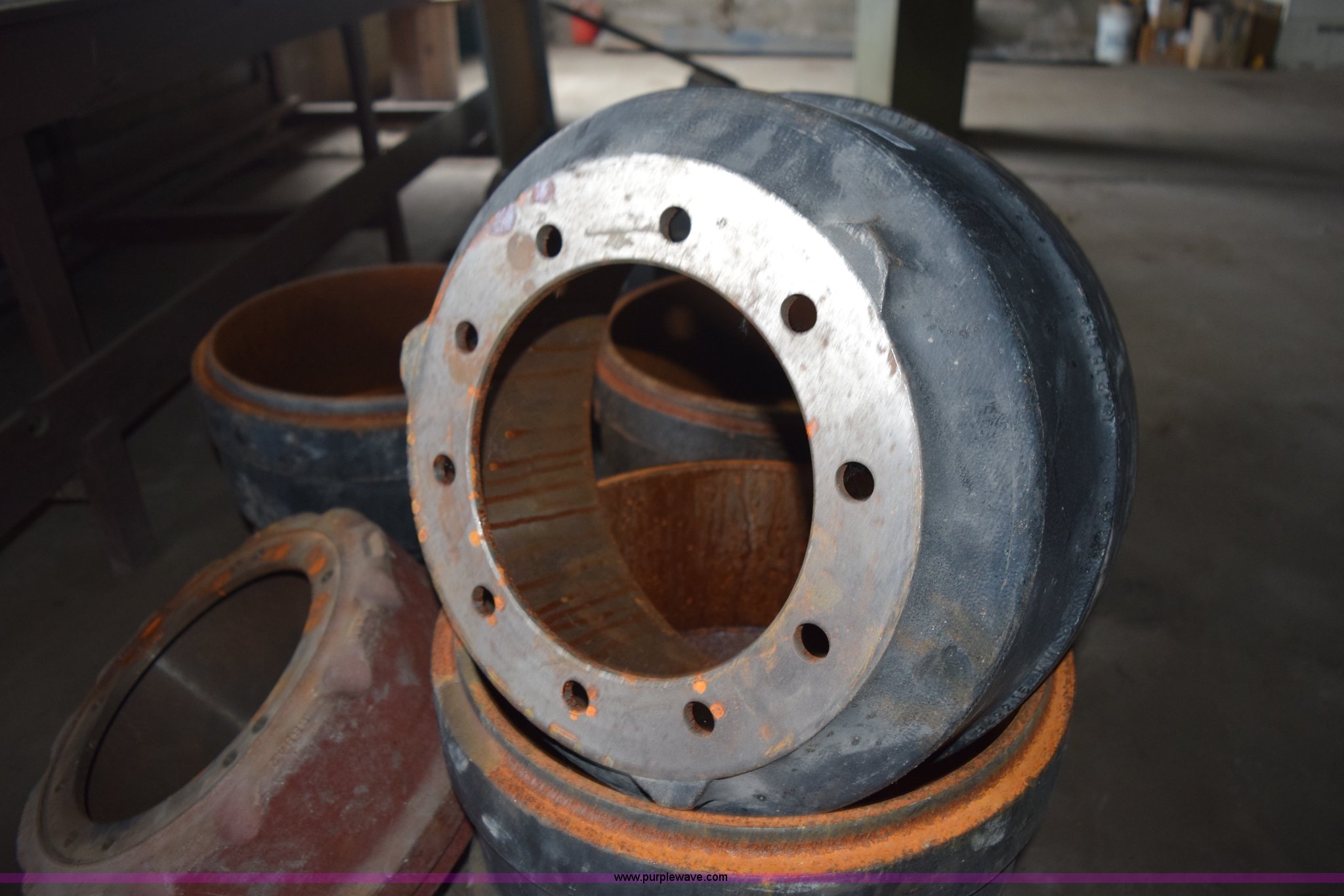 Purple Wave is selling a used Automotive Parts or Acces. in Kansas. This item is a Assorted truck parts with the following: (8) assorted brake drums, (4) spring packs