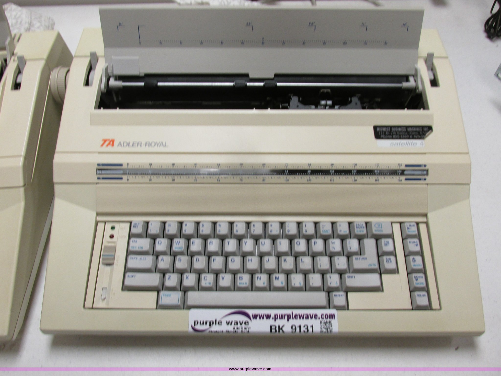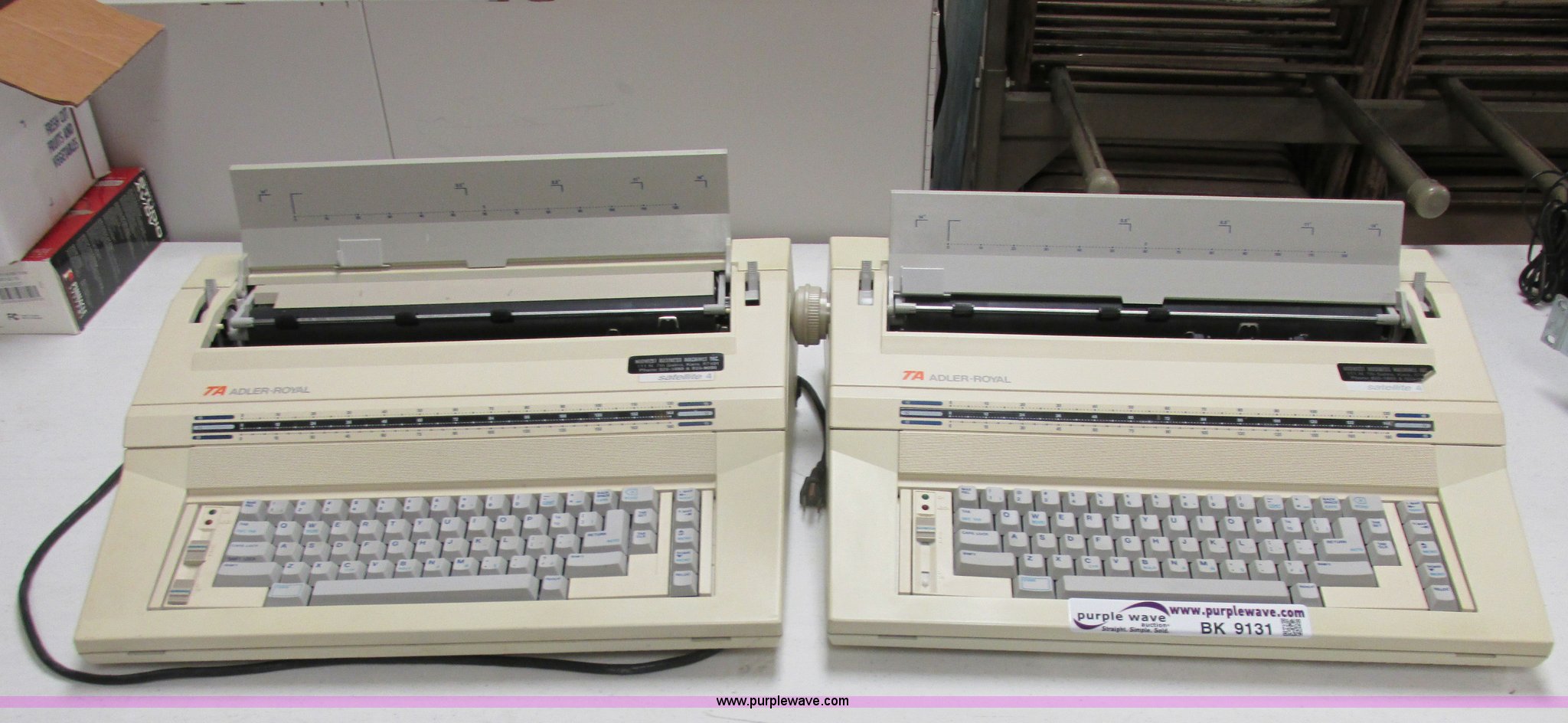 Purple Wave is selling a used Electronics in Kansas. This item is a (2) Adler-Royard electric typewriters with the following: Model Satellite 4, Dust covers, Unknown operating conditions