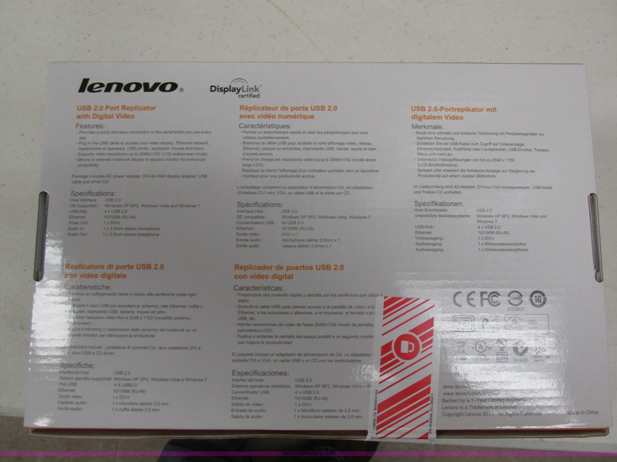 (30) Lenovo USB 2.0 port replicators has sold in Soloman, Kansas for $132. Item BK9139 sold on November 3rd, 2015.