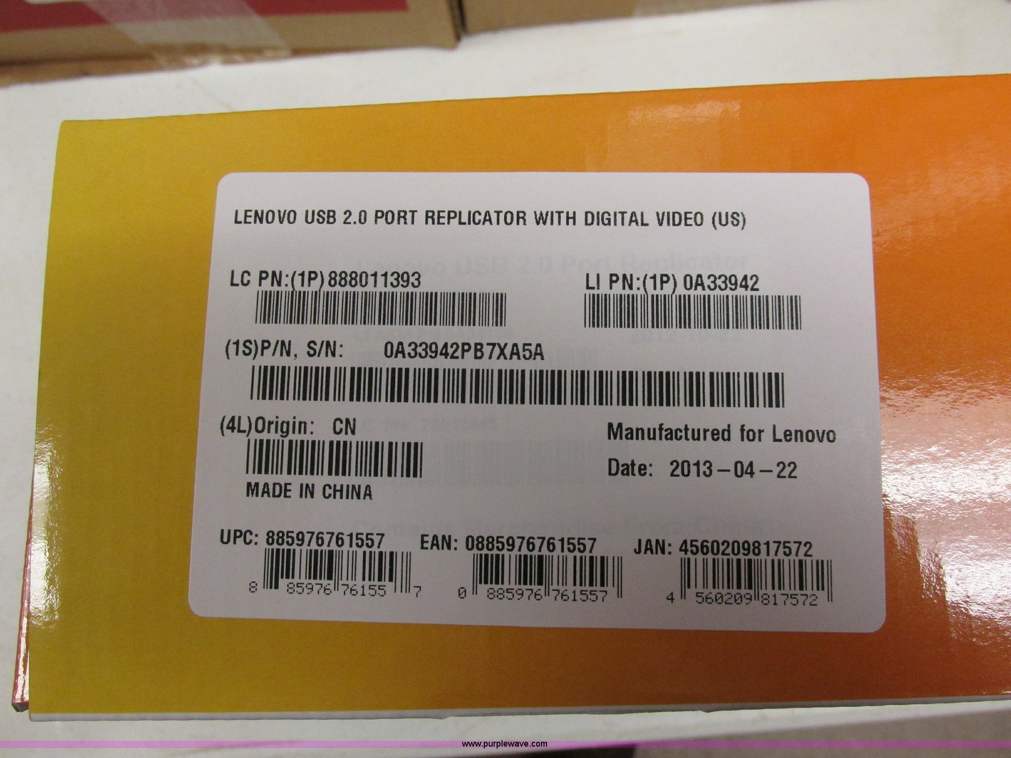 Purple Wave is selling a used Electronics in Kansas. This item is a (30) Lenovo USB 2.0 port replicators with the following: Model VDK8736, Digital video, Unused
