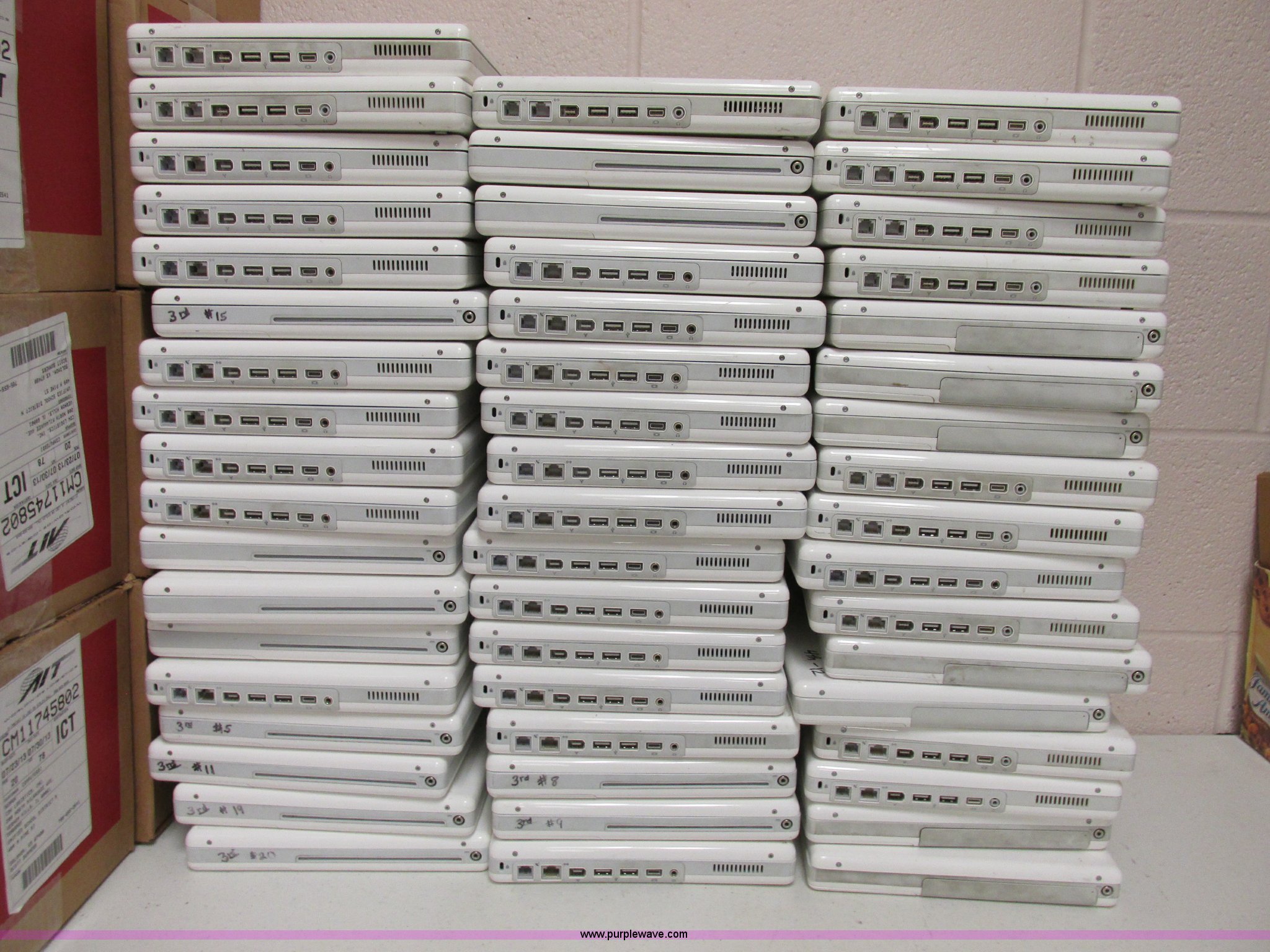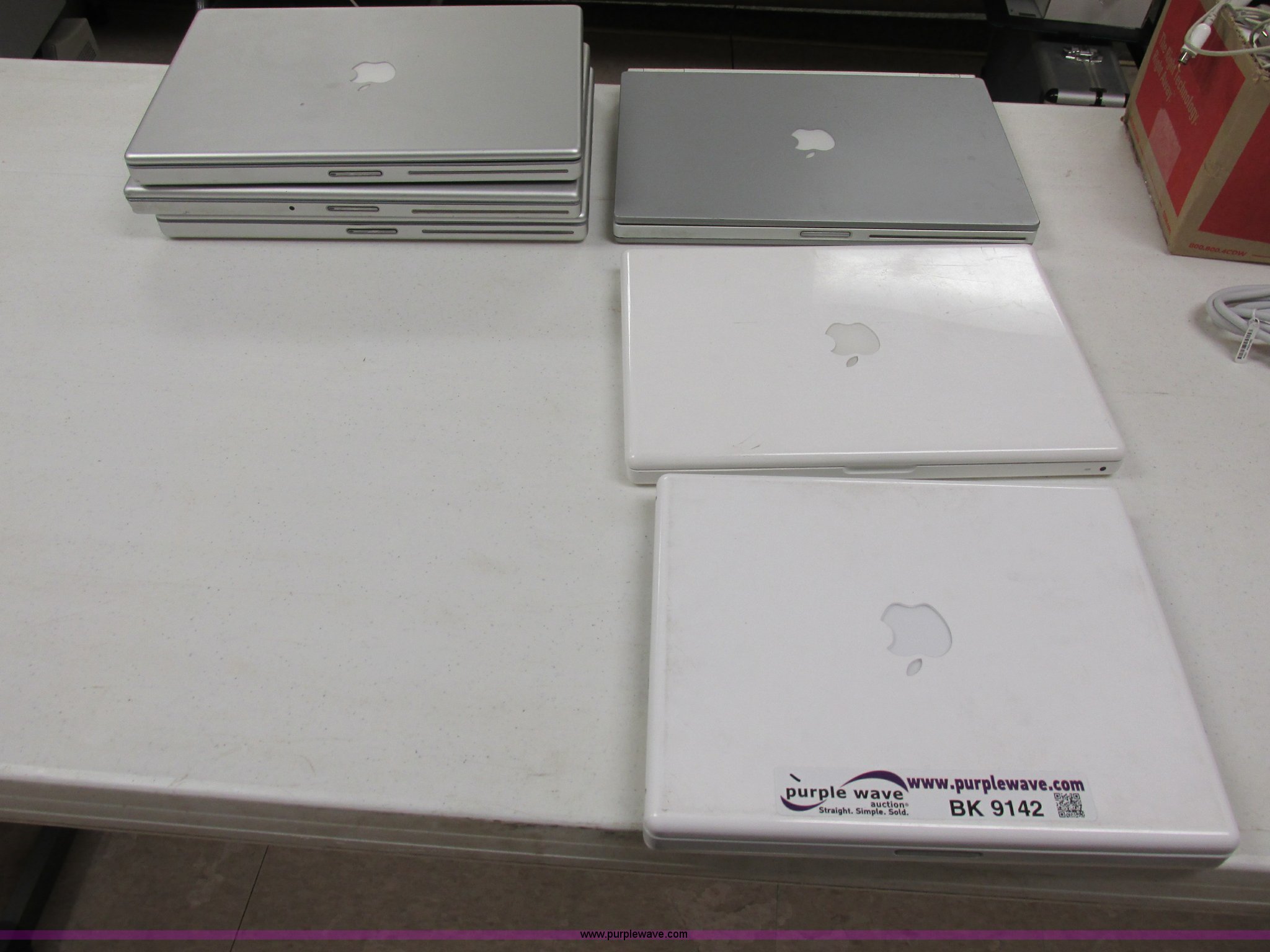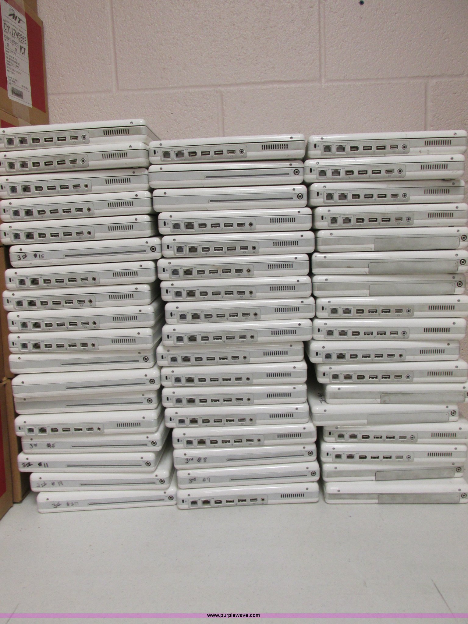 Purple Wave is selling a used Computers in Kansas. This item is a Assorted Apple laptops and accessories with the following: (53) Apple A1005 iBooks, Apple A1025 Powerbook G4, Macbook A1181, (3) Apple A1094 Powerbook G4, Guides, Power cords, Webcams, Units will be wiped prior to auction date, Unknown operating conditions