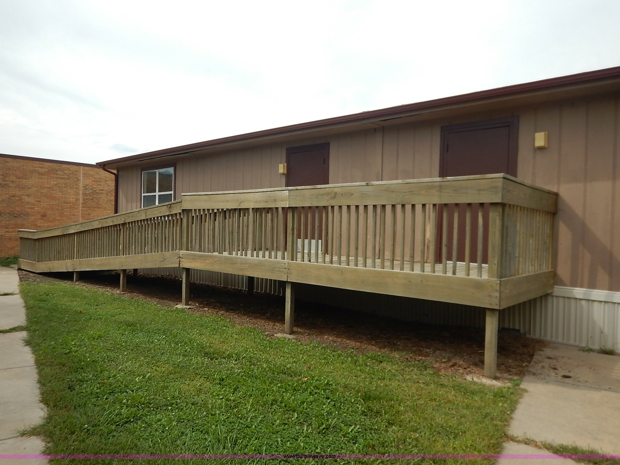 Mobile classrooms. 65'L x 28'W, (2) rooms, (2) AC units, (2) steps, Handicap ramp, Doors on both sides, (3) bathrooms, Shelves, Cabinets, Electric and plumbing will be unhooked prior to auction. Buyer is responsible for all aspects of removal. Tonganoxie Elementary School. 304 Shawnee. Tonganoxie, KS 66086