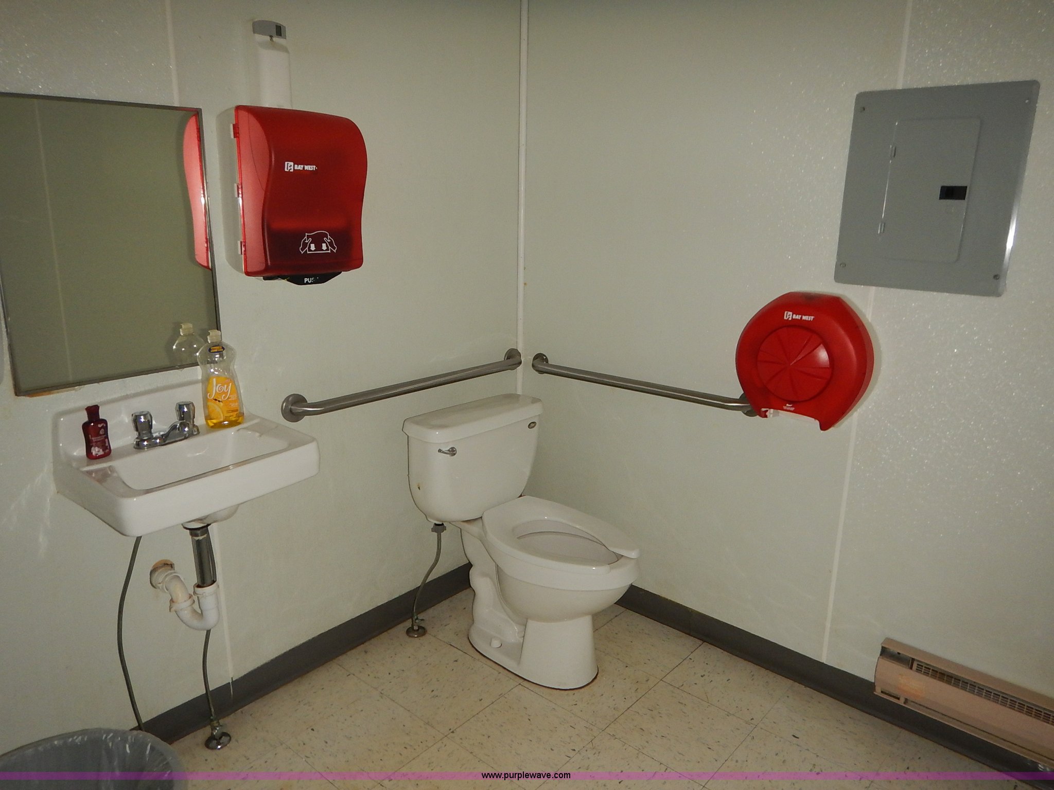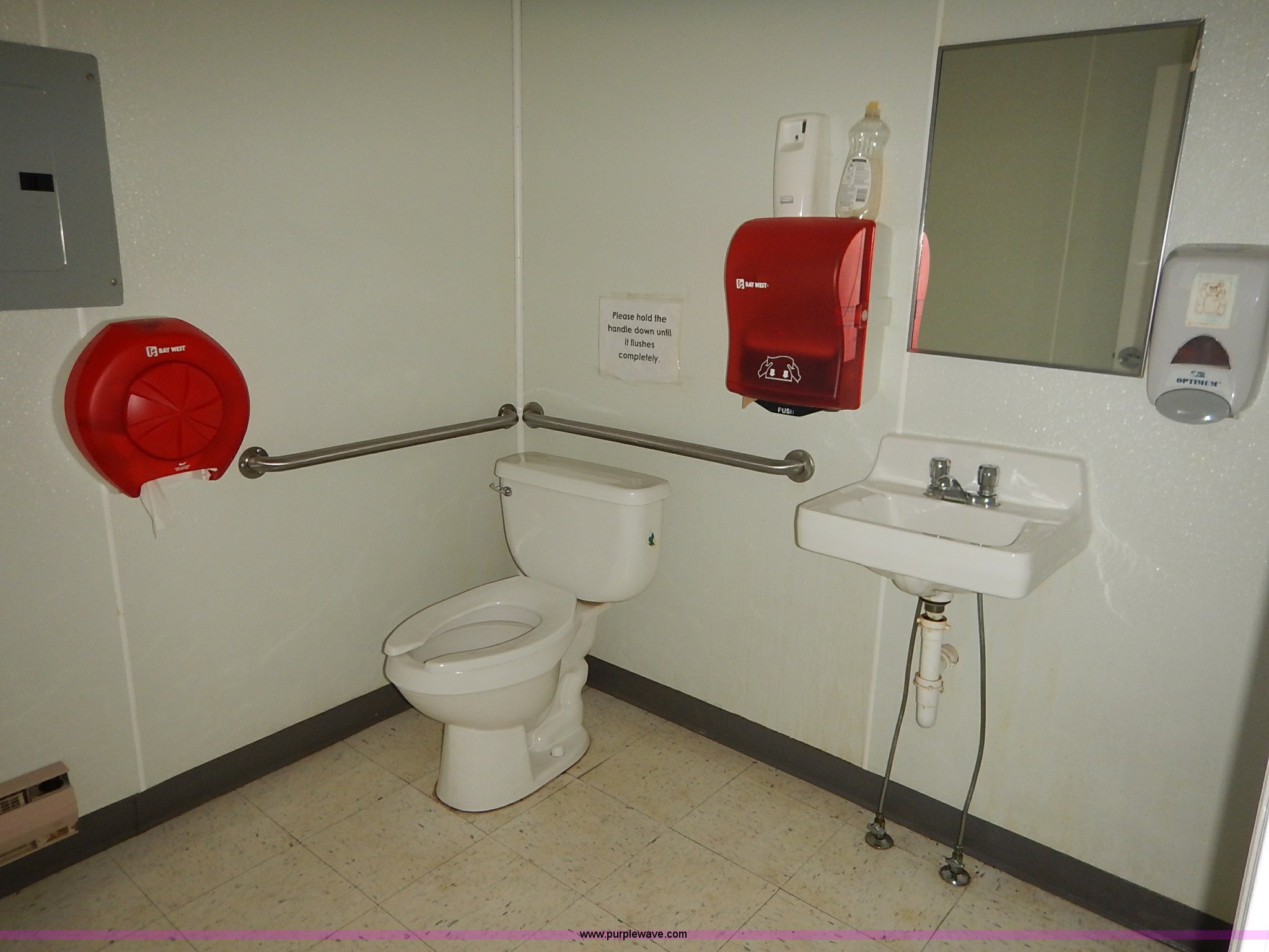 Purple Wave is selling a used Manufactured Home or Office in Kansas. This item is a Mobile classrooms with the following: 65'L x 28'W, (2) rooms, (2) AC units, (2) steps, Handicap ramp, Doors on both sides, (3) bathrooms, Shelves, Cabinets, Electric and plumbing will be unhooked prior to auction