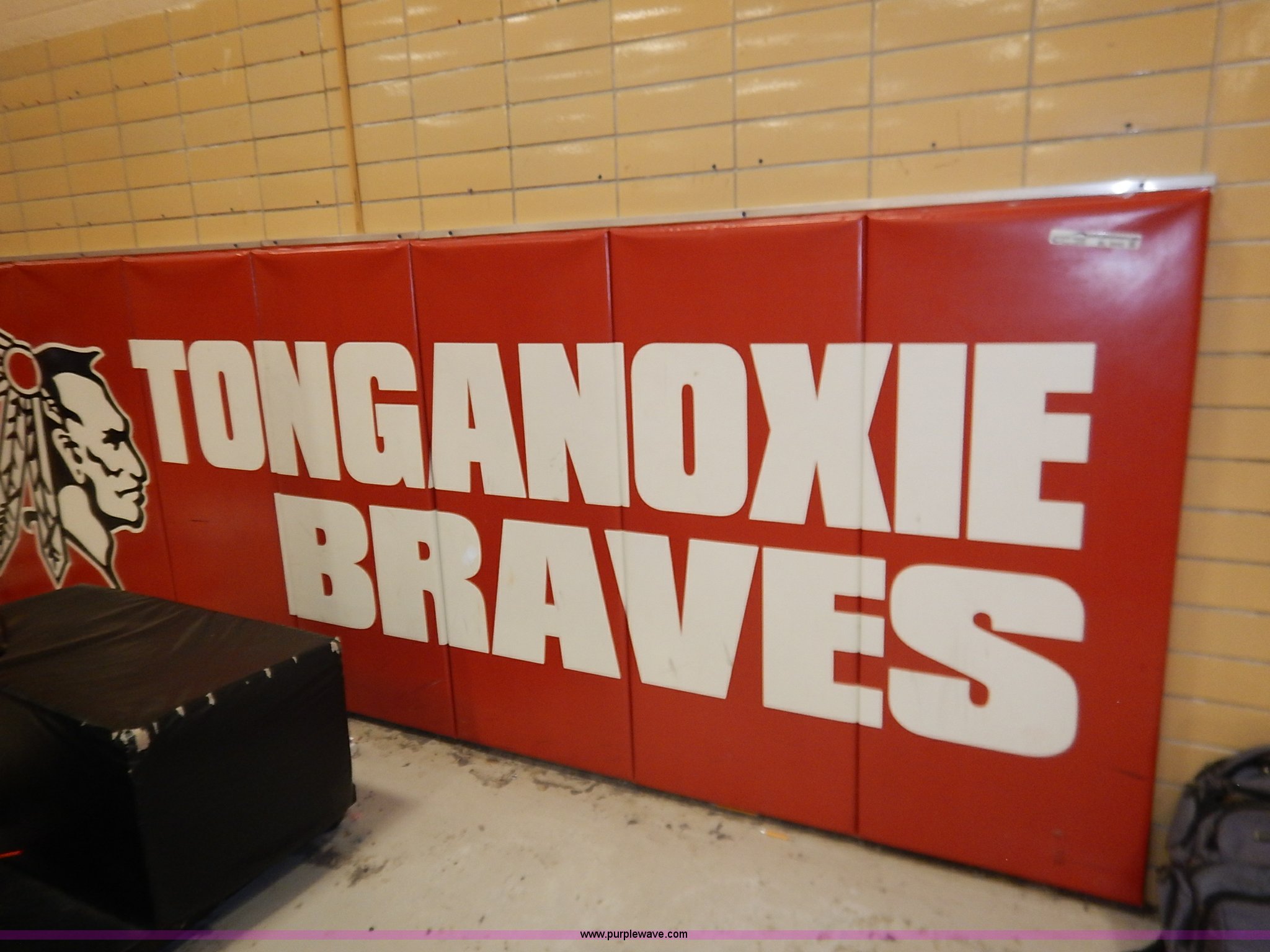 Purple Wave is selling a used Sporting Goods in Kansas. This item is a (2) Tonganoxie Braves wall mats with the following: 14'L x 5'H