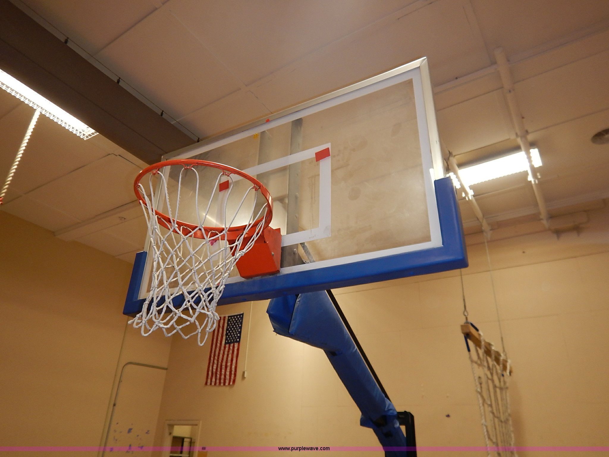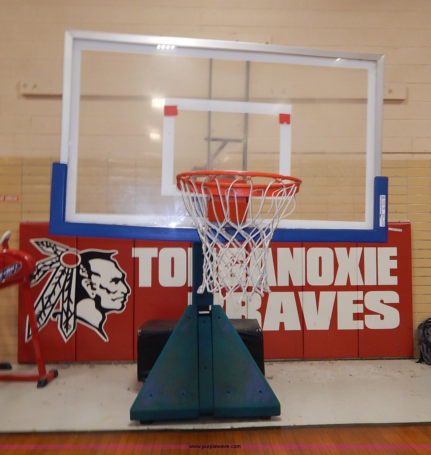 Purple Wave is selling a used Sporting Goods in Kansas. This item is a (3) basketball goals with the following: (2) glass backboards, adjustable, (1) portable basketball goal