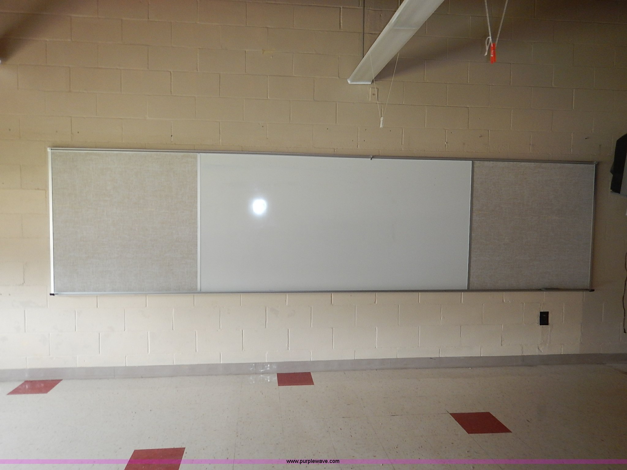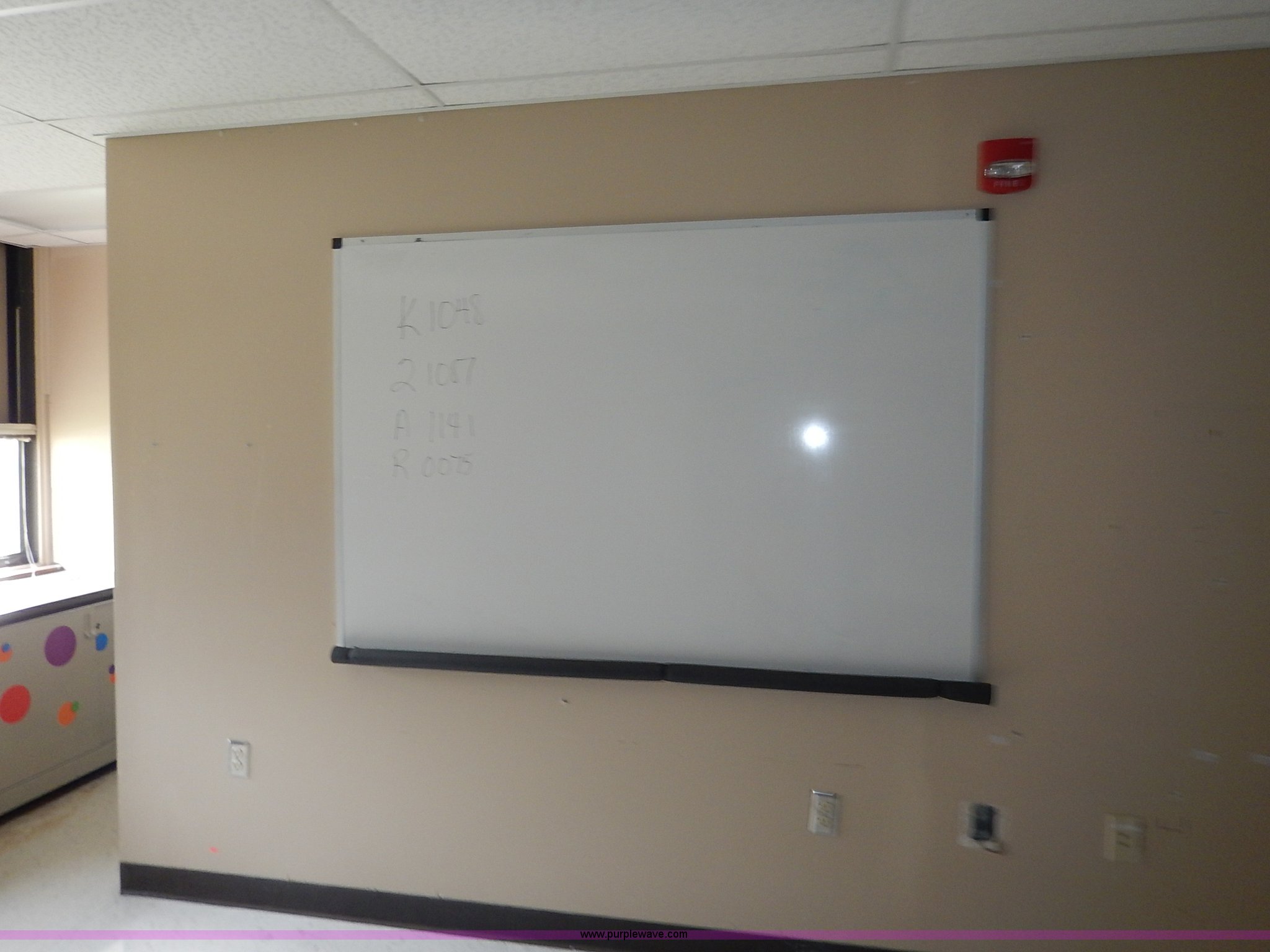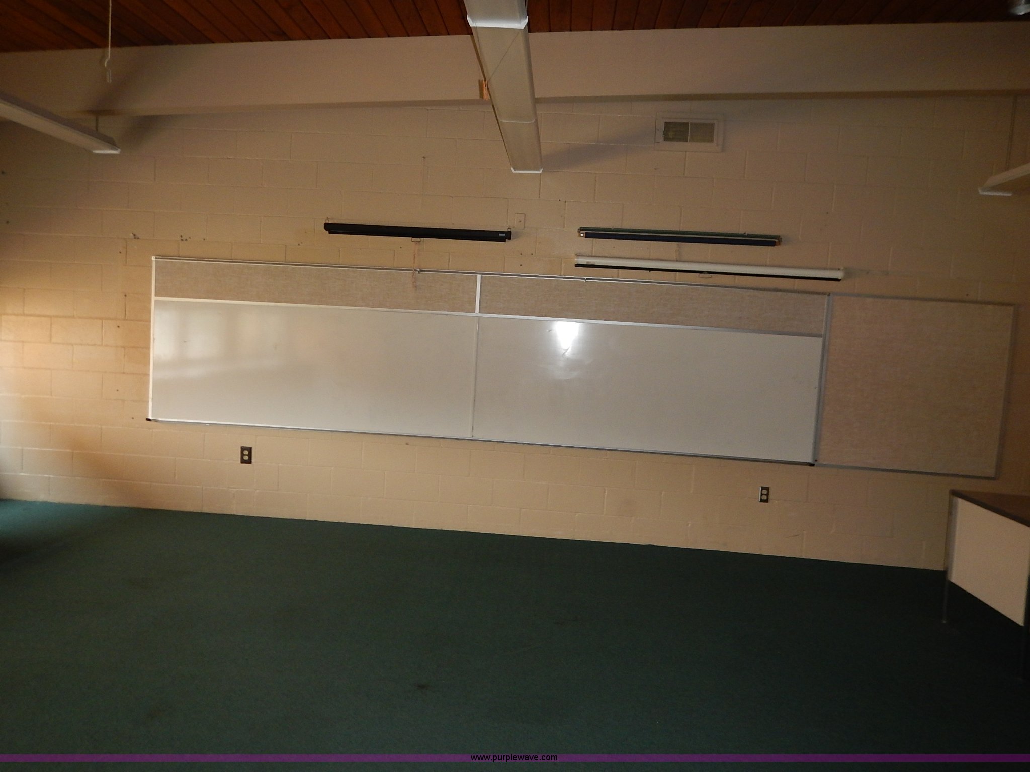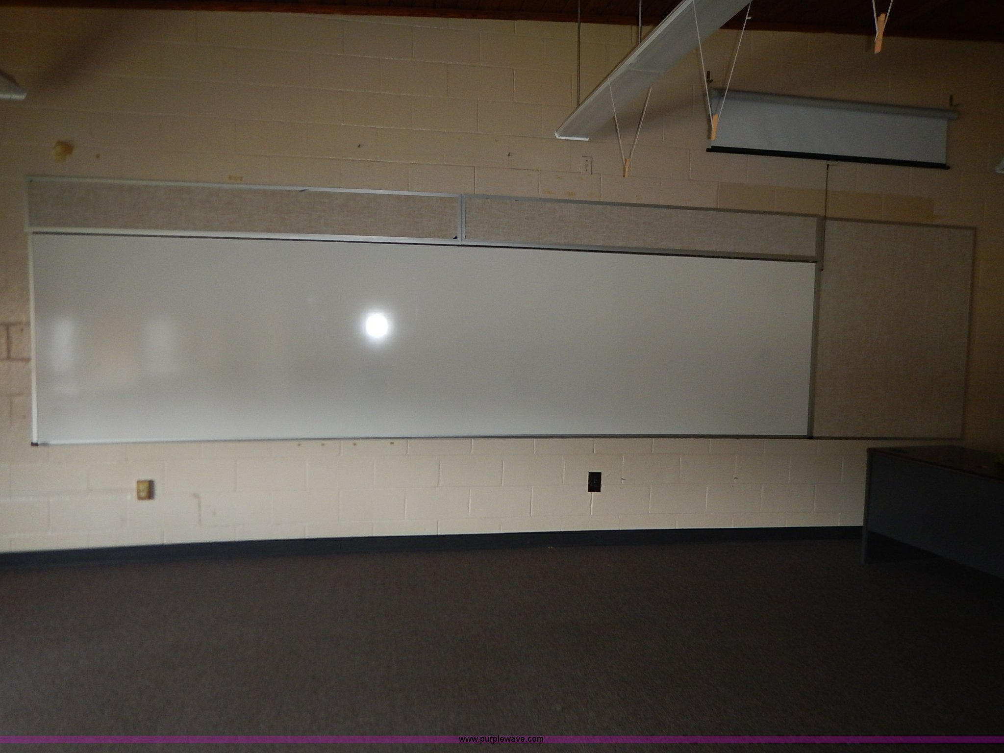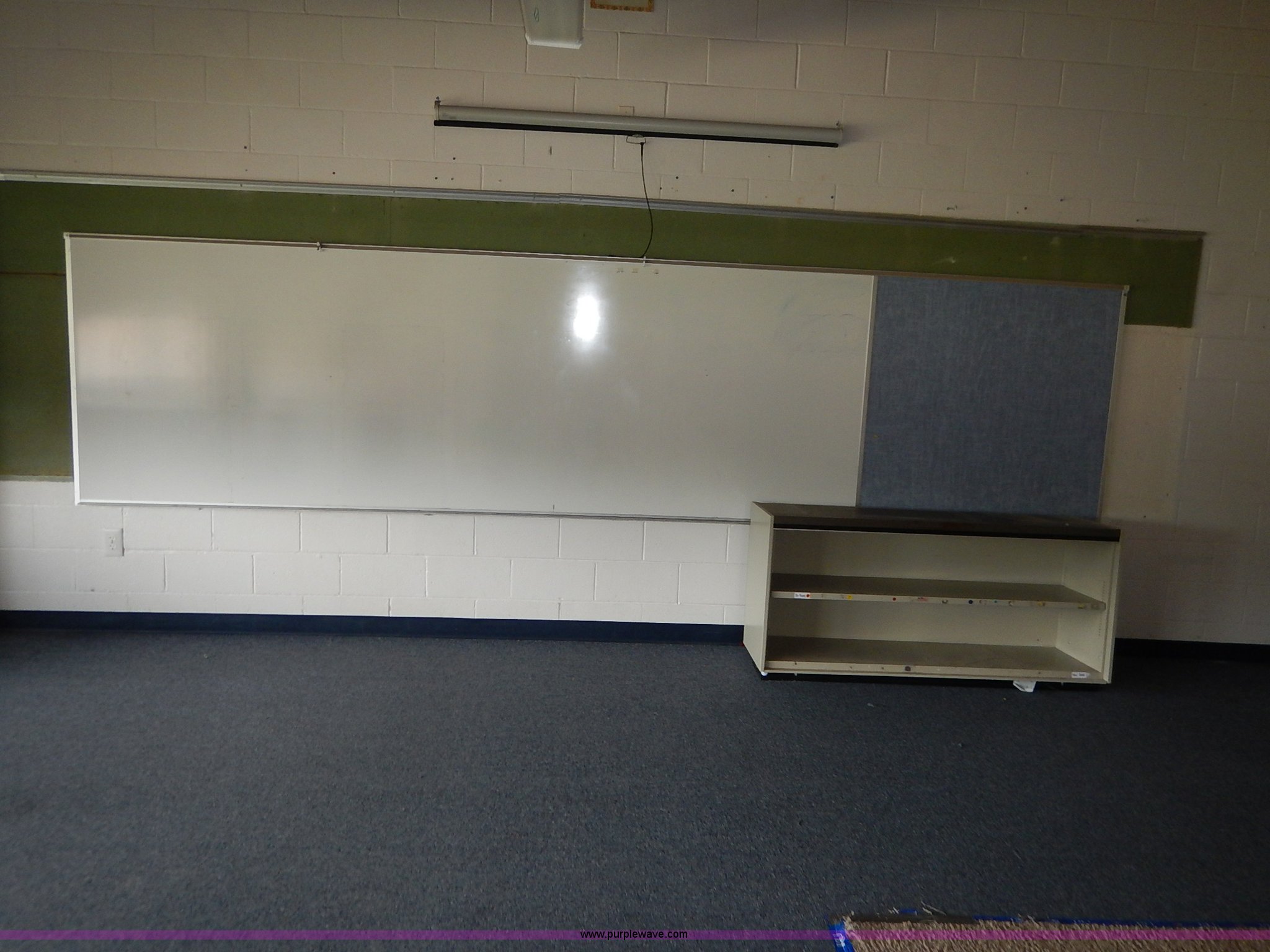 Purple Wave is selling a used Furniture in Kansas. This item is a Assorted classroom furniture with the following: White boards, Cork boards, Desks, Desk chairs, (4) televisions, (3) projector screens, Shelves, (21) student desks, Tables