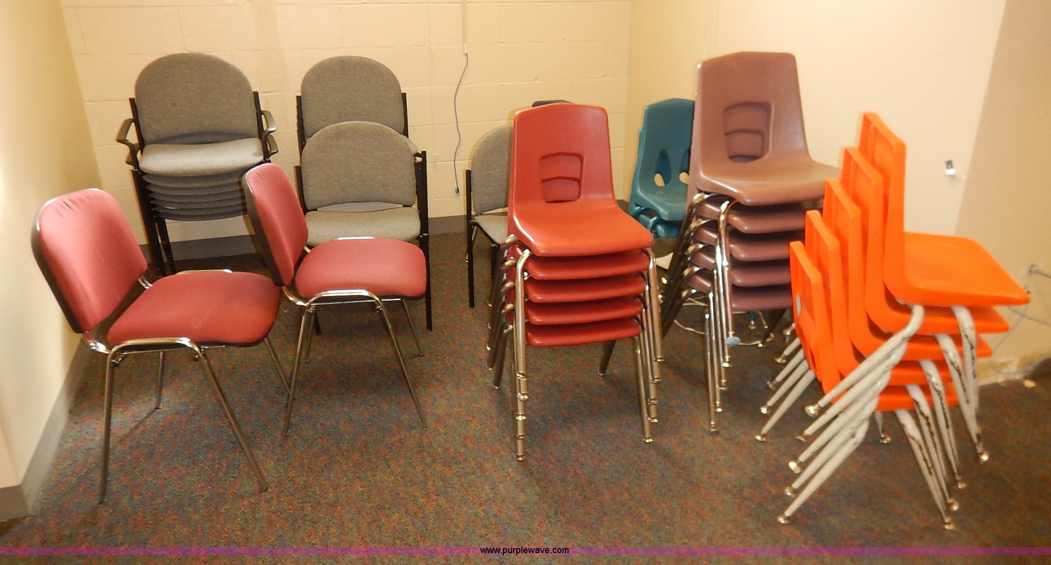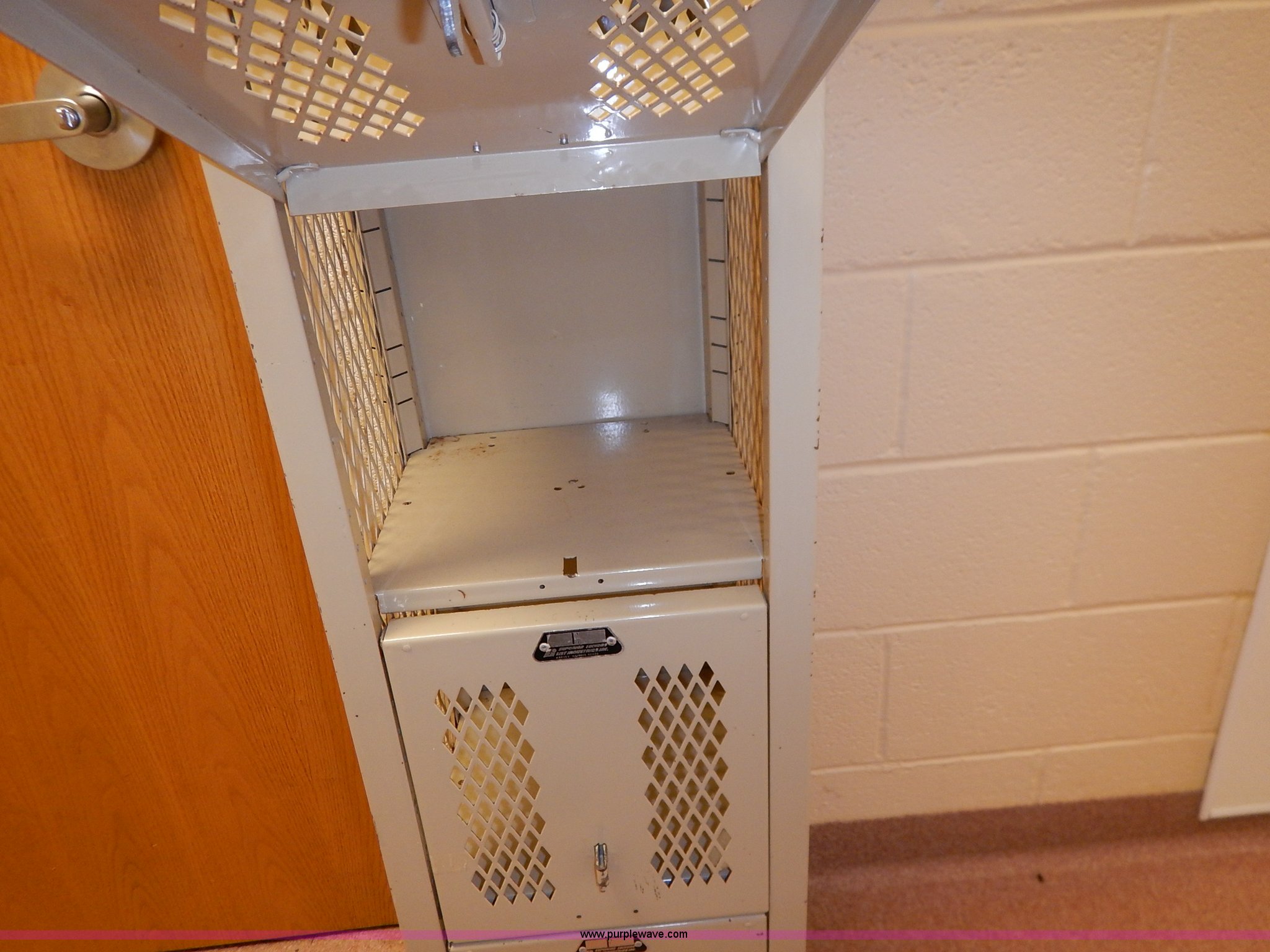 Purple Wave is selling a used Office Supplies and Equip. in Kansas. This item is a Assorted office equipment with the following: Six compartment locker, 13" x 12" x 75", Desk, (38) assorted chairs