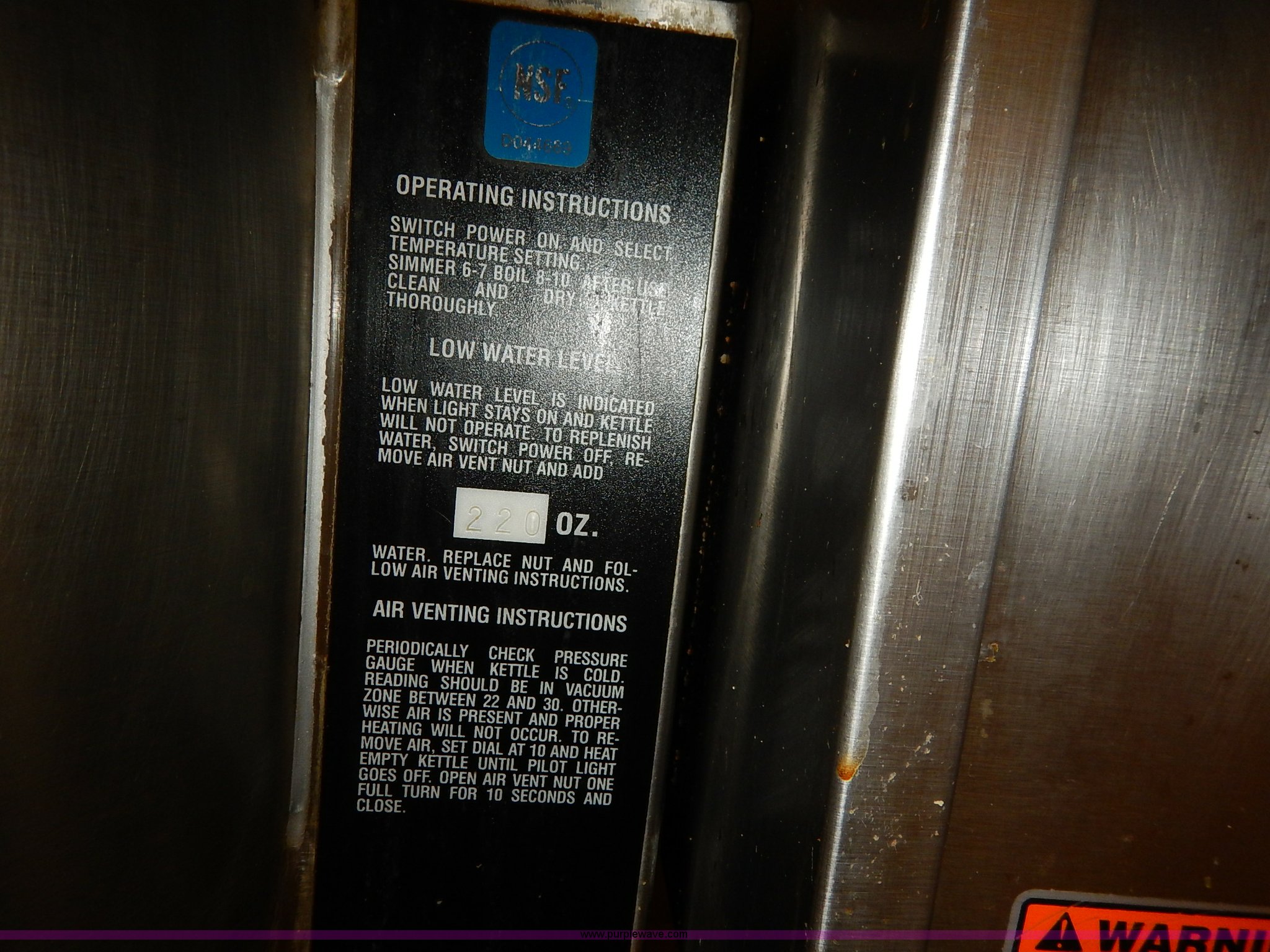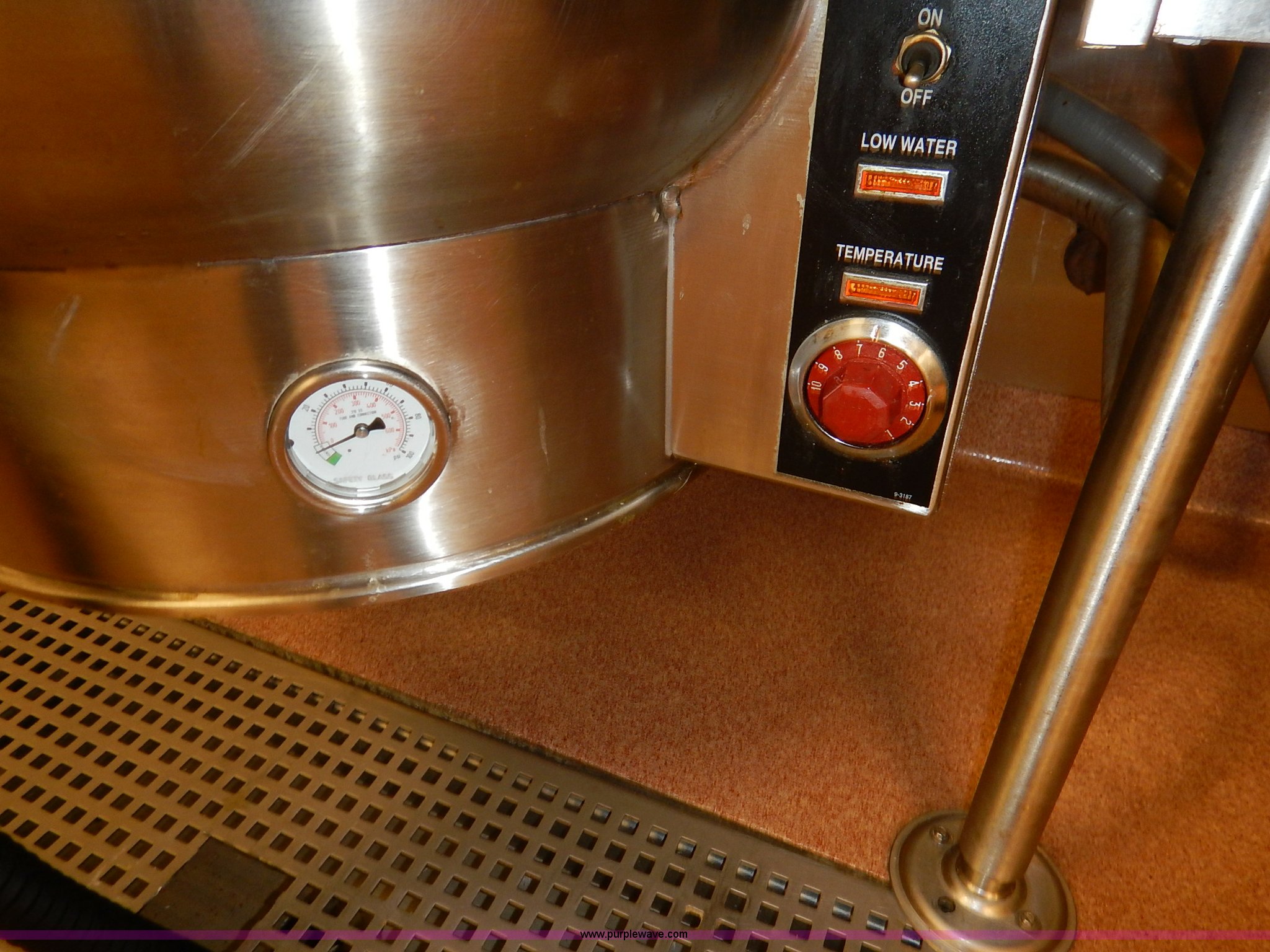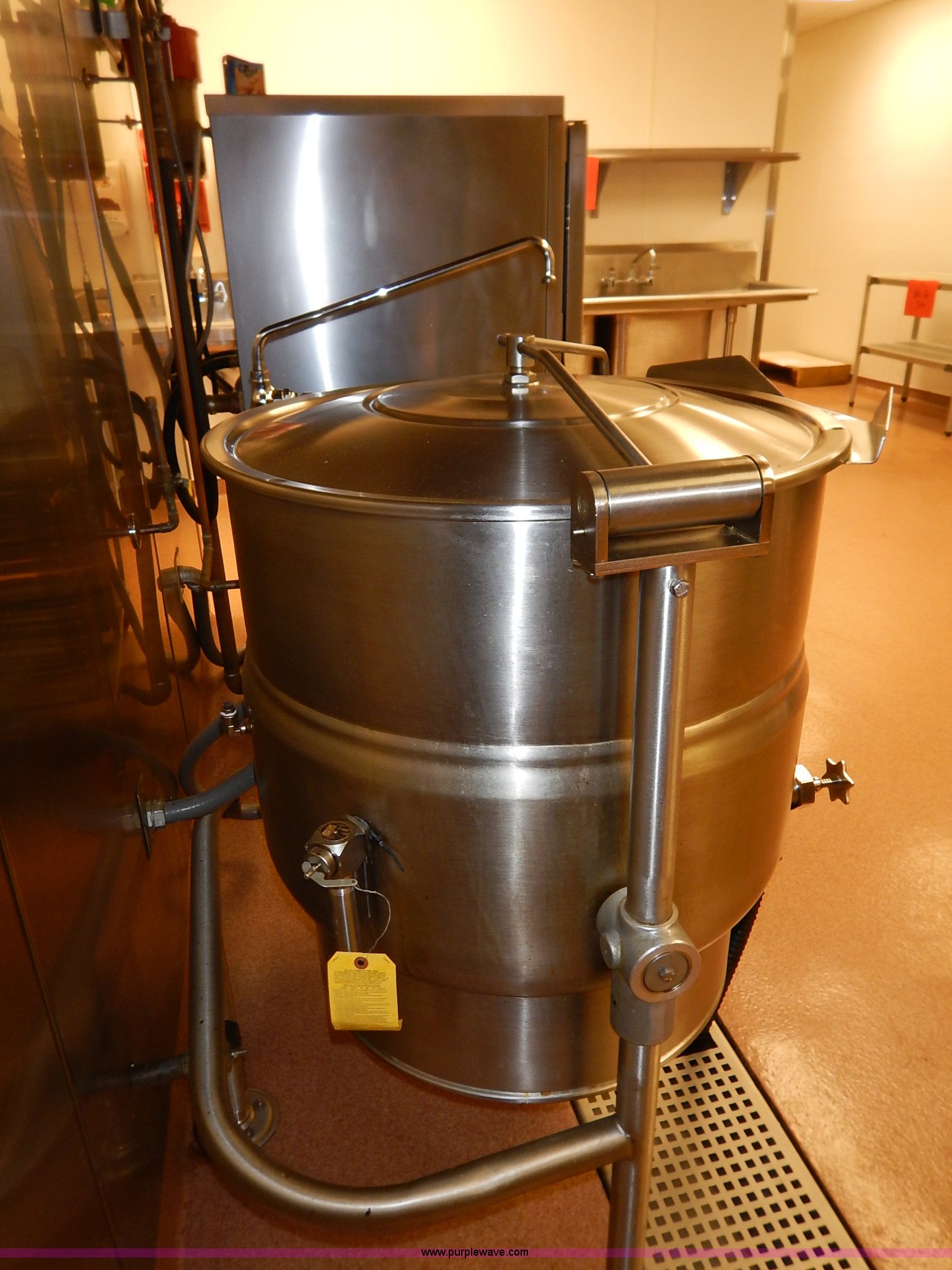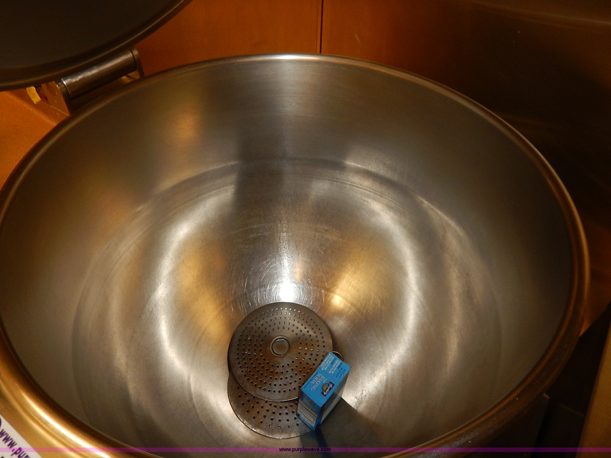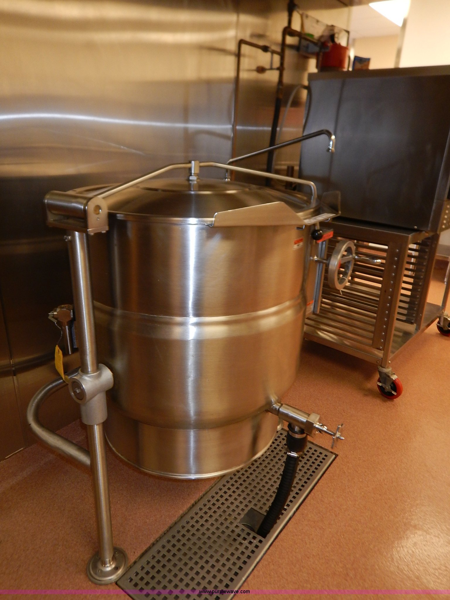 Market Forge soup kettle. Model FT40LE, 22"D x 26" diameter, 208V, Three phase, Serial 7311310BB5275. Tonganoxie Elementary School. 304 Shawnee. Tonganoxie, KS 66086