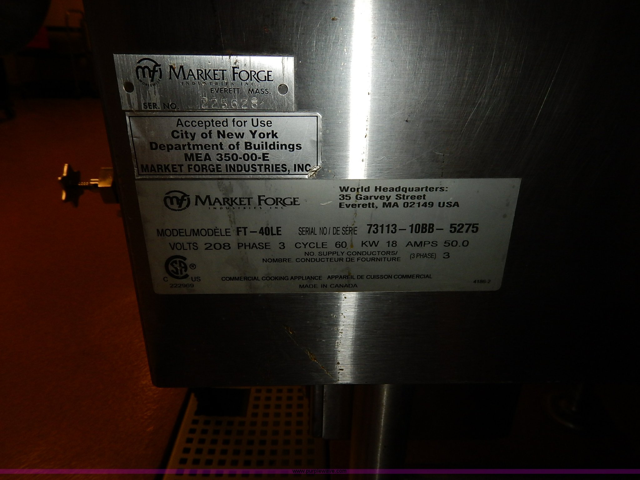 Purple Wave is selling a used Restaurant Equip. in Kansas. This item is a Market Forge soup kettle with the following: Model FT40LE, 22"D x 26" diameter, 208V, Three phase, Serial 7311310BB5275
