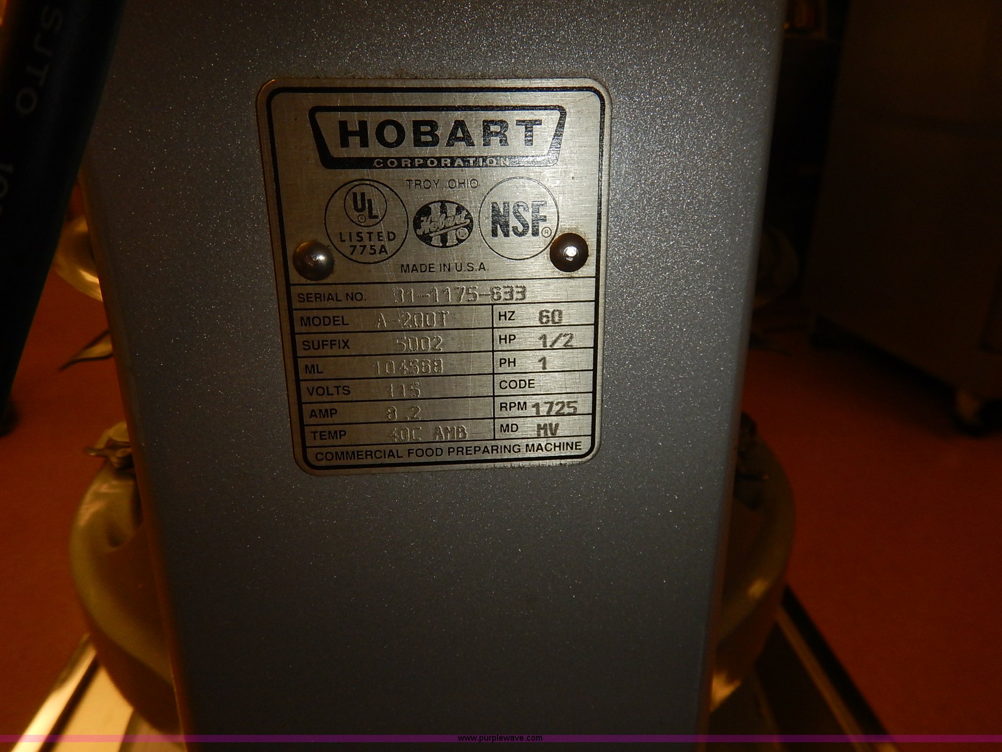 Hobart A200T mixer has sold in Tonganoxie, Kansas for $2145. Item BL9456 sold on November 3rd, 2015.