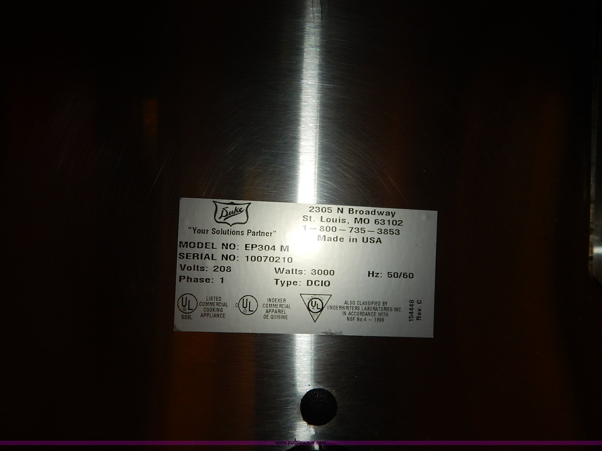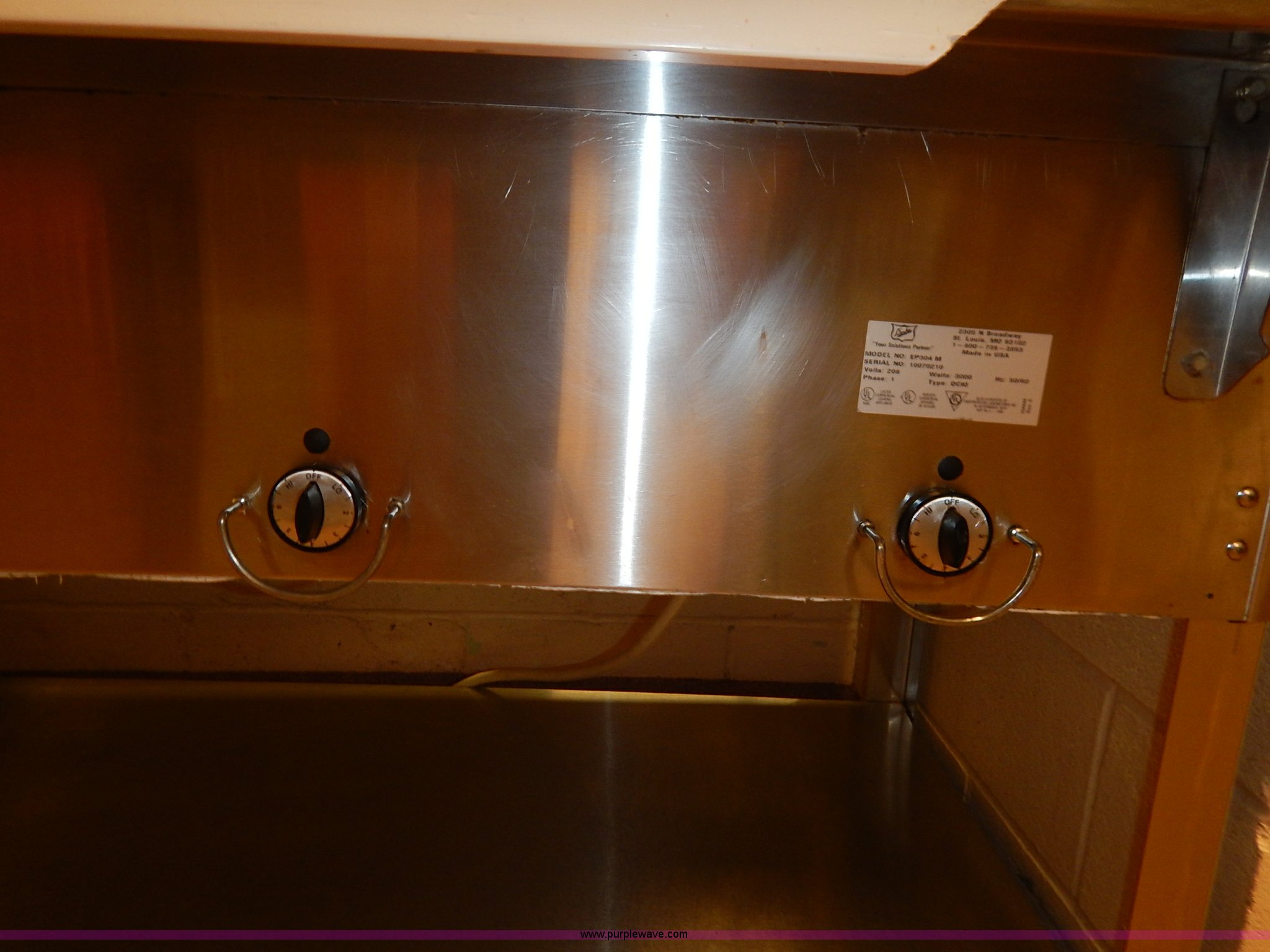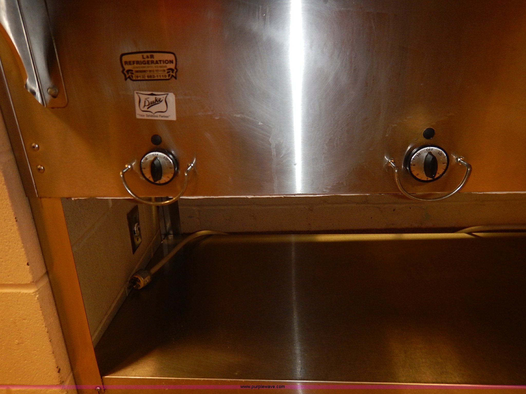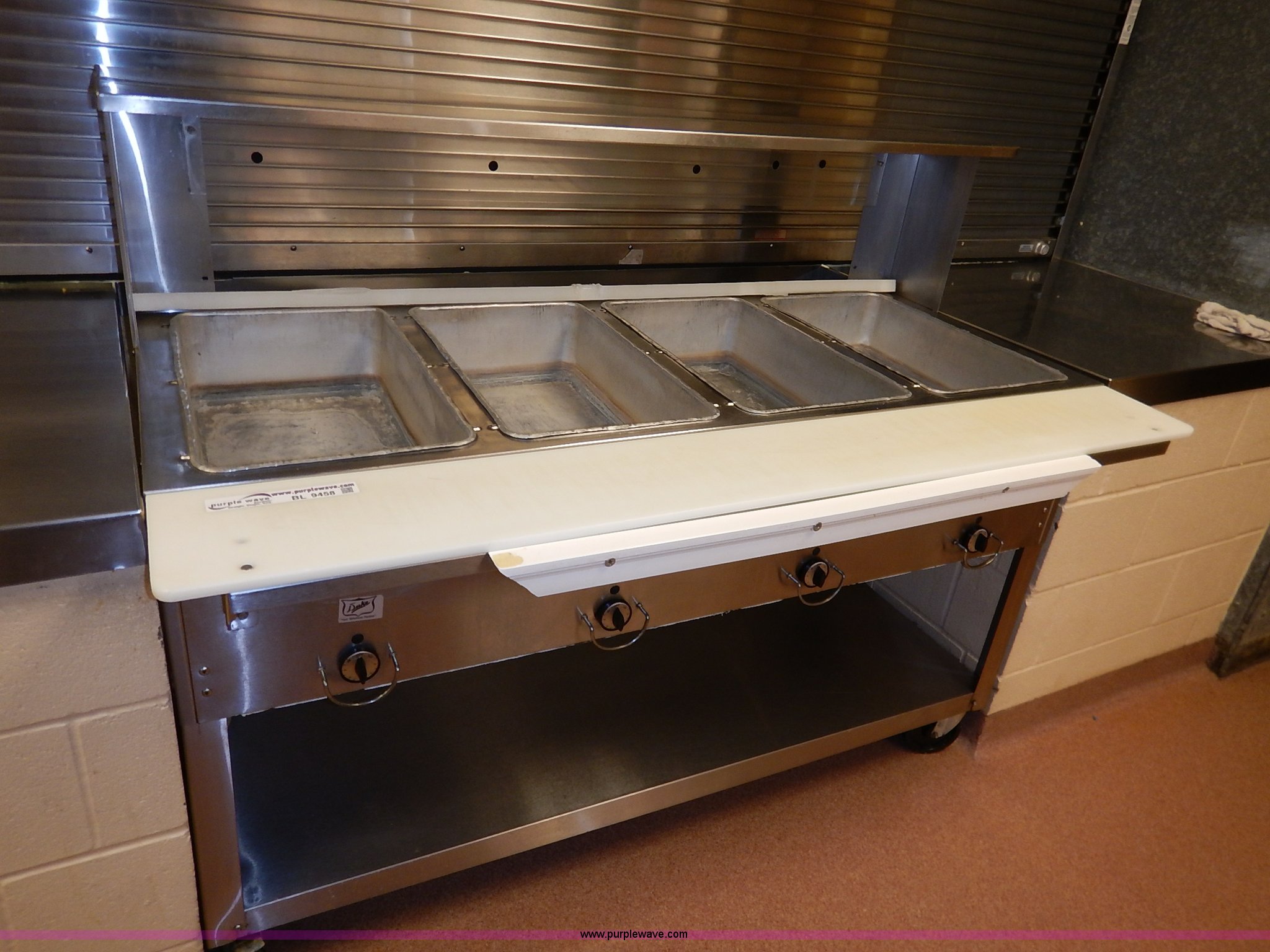 Purple Wave is selling a used Restaurant Equip. in Kansas. This item is a Duke four compartment serving table with the following: Model EP304M, 58.5"W x 29.5"D x 47.5"H, 208V, Serial 10070210