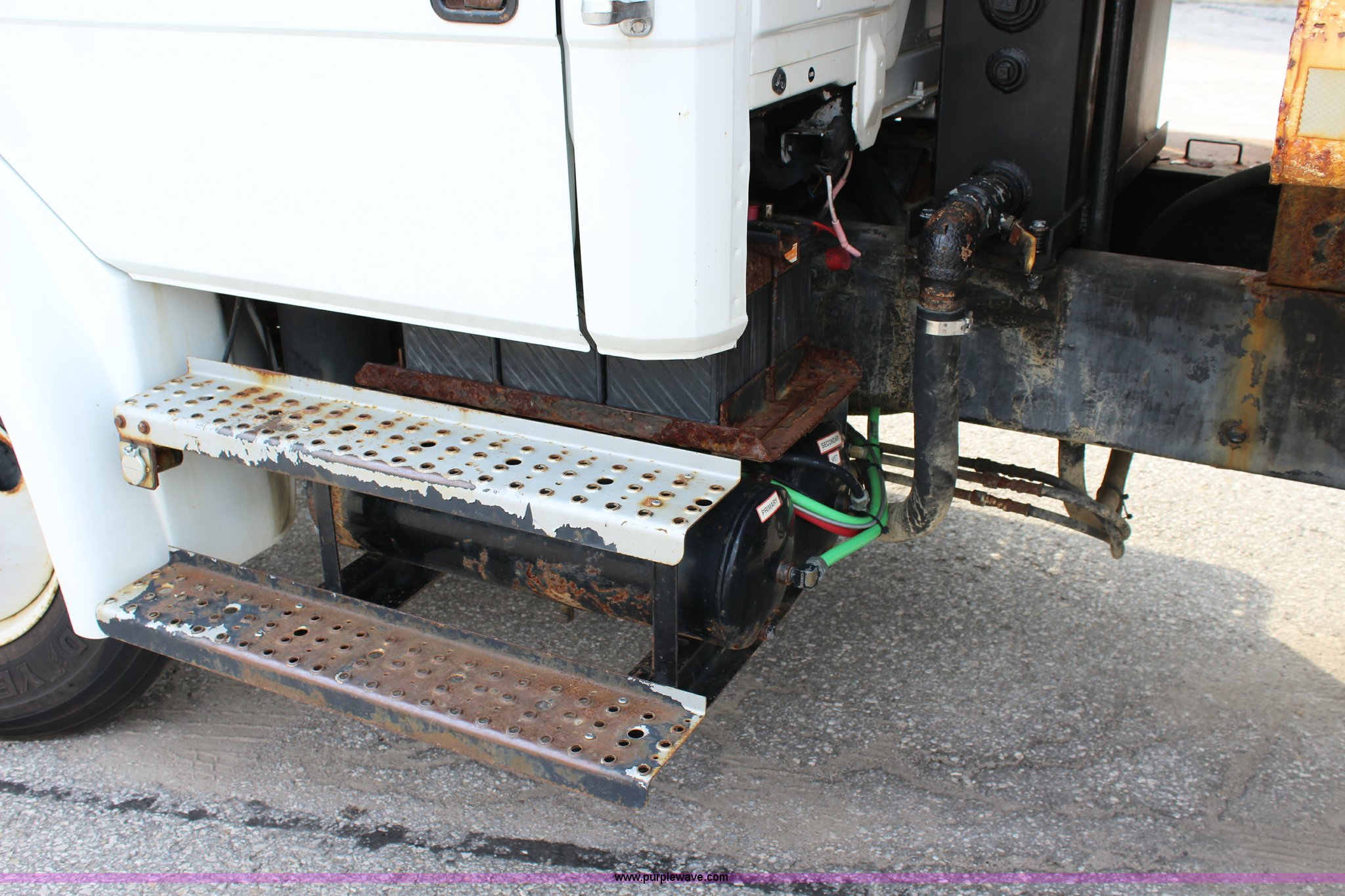Purple Wave is selling a used Construction Dump Truck in Kansas. This item is a 2003 Freightliner FL80 dump truck with the following: 40,161 miles on odometer, 4,917 hours on meter, Caterpillar 3126 7.2L L6 diesel engine, 250 HP, Allison automatic transmission, Single axle, AC and heat, Tilt, Telescoping steering wheel, Cruise, AM/FM/cassette, Air suspension seat, Command All controller, Front mounted PTO, Heil steel dump bed, 10'L, 28"H, Rollover tarp, Air end gate, Tailgate included, Western 10' plow, Menroe 10' spreader, (2) 70 gallon magnesium tanks, Pintle hitch, Spring suspension, Air brakes, 168" wheelbase, 12R22.5 tires, GVWR 37,000 lbs, FAWR 14,000 lbs, RAWR 23,000 lbs