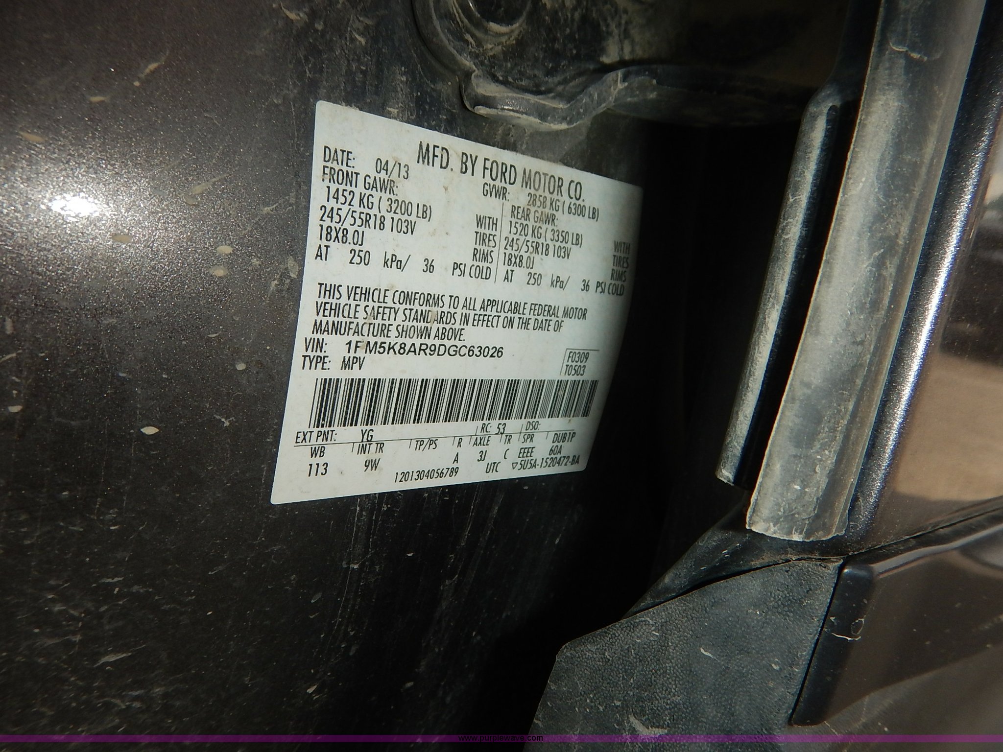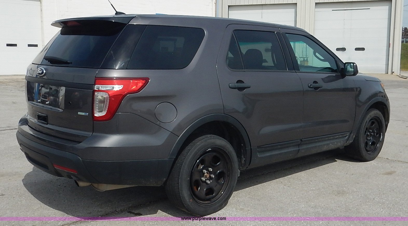 Purple Wave is selling a used Passenger Vehicle in Kansas. This item is a 2013 Ford Explorer Police SUV with the following: 97,494 miles on odometer, 3.7L V6 DOHC 24V gas engine, Automatic transmission, Four wheel drive, AC and heat, Tilt, Cruise, AM/FM/CD, Power windows, locks, mirrors, and seat, Cloth interior, 245/55R18 tires, Unattached rear seats included, Interior cosmetic damage, Check engine light on