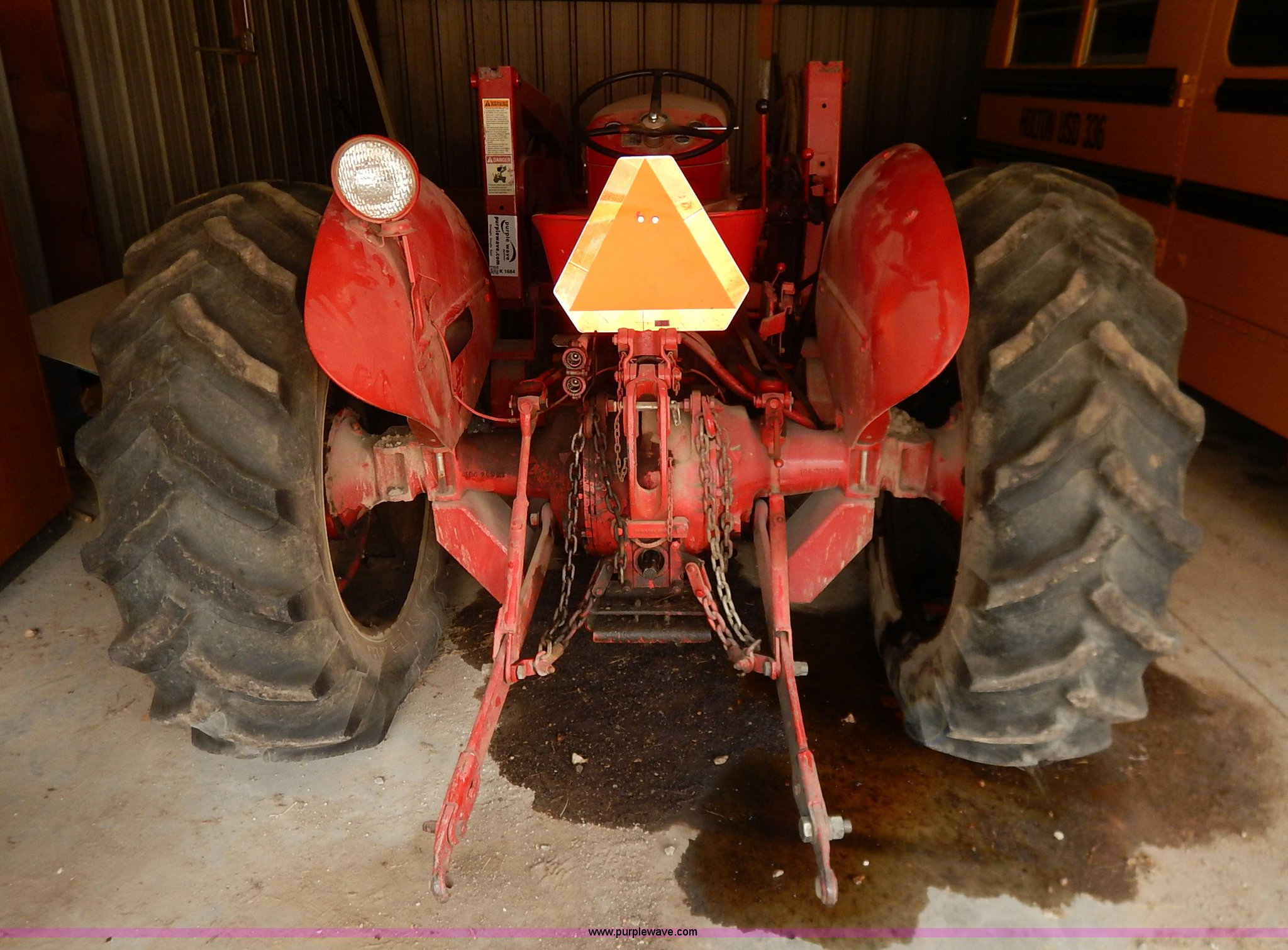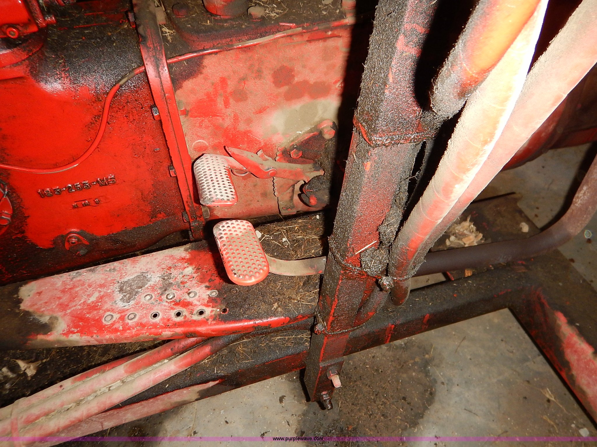 Purple Wave is selling a used Tractor in Kansas. This item is a Massey-Ferguson 65 tractor with the following: 3,710 hours on meter, Four cylinder gas engine, Manual transmission, 3F-1R gears, Great Bend 330 loader, 5'W bucket, Two-lever controls, Three point, 540 PTO, Rear hydraulic remote set, Wheel weights, Goodyear 5.50-16 front tires, Goodyear 14.9-28 rear tires, Flat tires, Rear wheel needs to be replaced, Muffler needs to be replaced, Non-operational brakes, Engine gone through in 2005, Approx. 300 hours since rebuild, Serial SGM678706