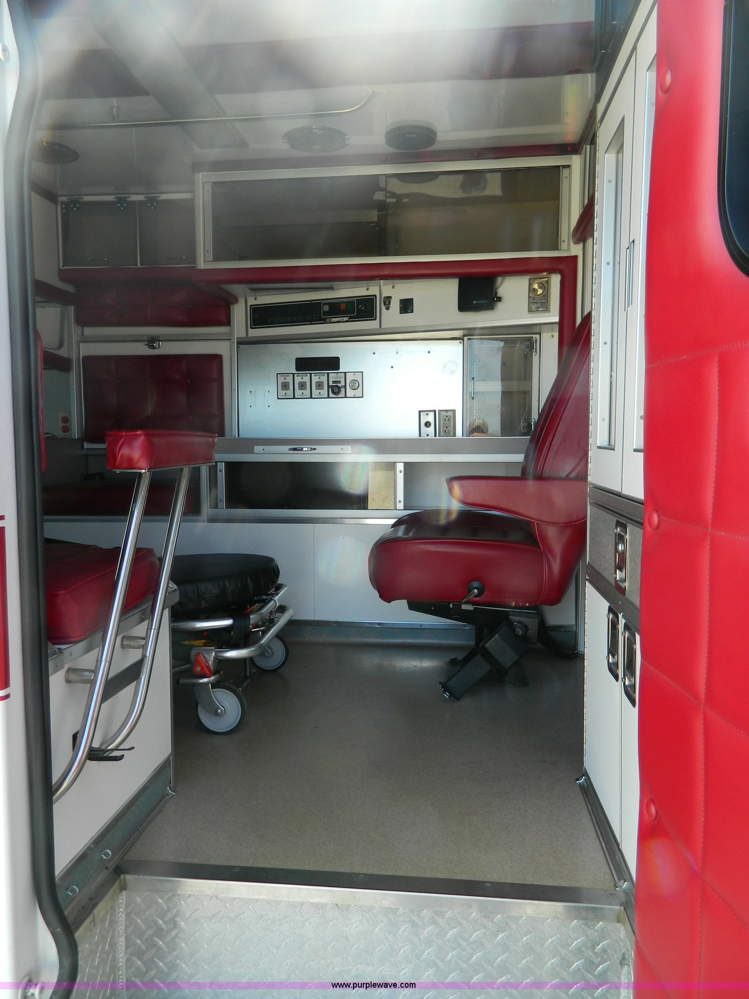 Purple Wave is selling a used Fire Truck or Emergency Vehicle in Kansas. This item is a 1993 Ford Econoline E350 ambulance with the following: 145,794 miles on odometer, 7.3L V8 OHV 16V diesel engine, Automatic transmission, AC and heat, Tilt, Cruise, AM/FM, Power windows and locks, Cloth interior, Light bar, Siren, PA system, Medtec body, LT215/85R16 tires, Contents not included